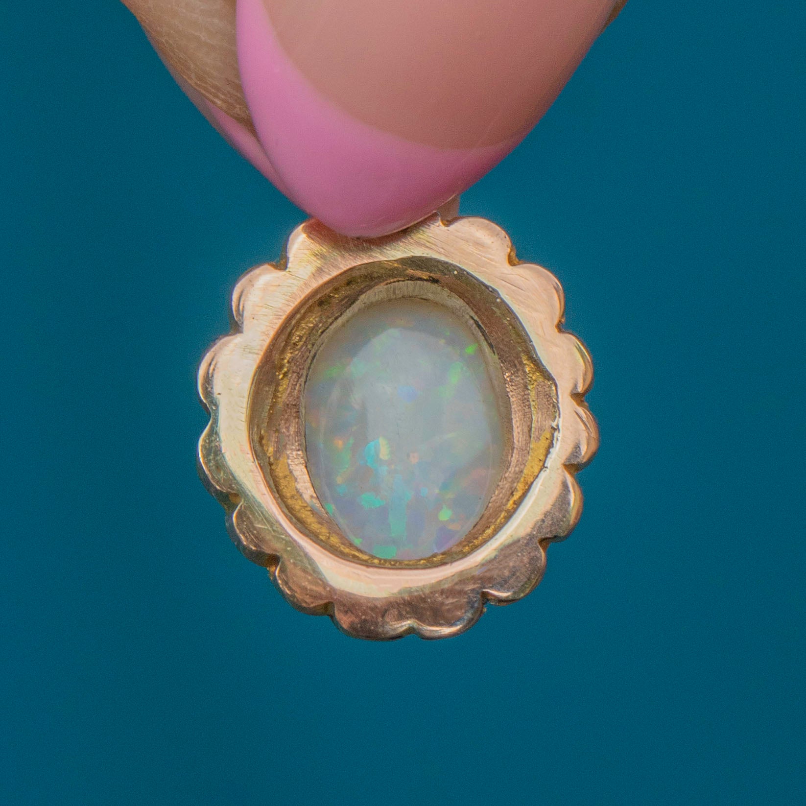 We adore opulent Opals, and this antique 9ct Gold Opal and Pearl charm is brimming with antique charm! Her neon speckled 0.75ct Opal sits front and centre, haloed by dainty Seed Pearls.