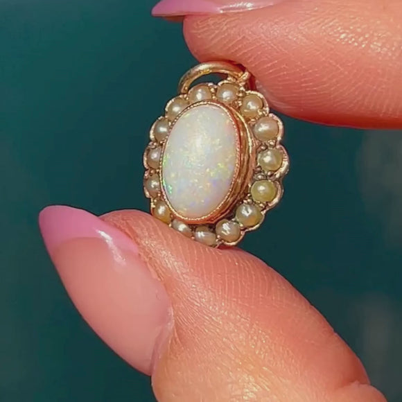Antique 9ct Gold Opal & Pearl Charm, 0.75ct