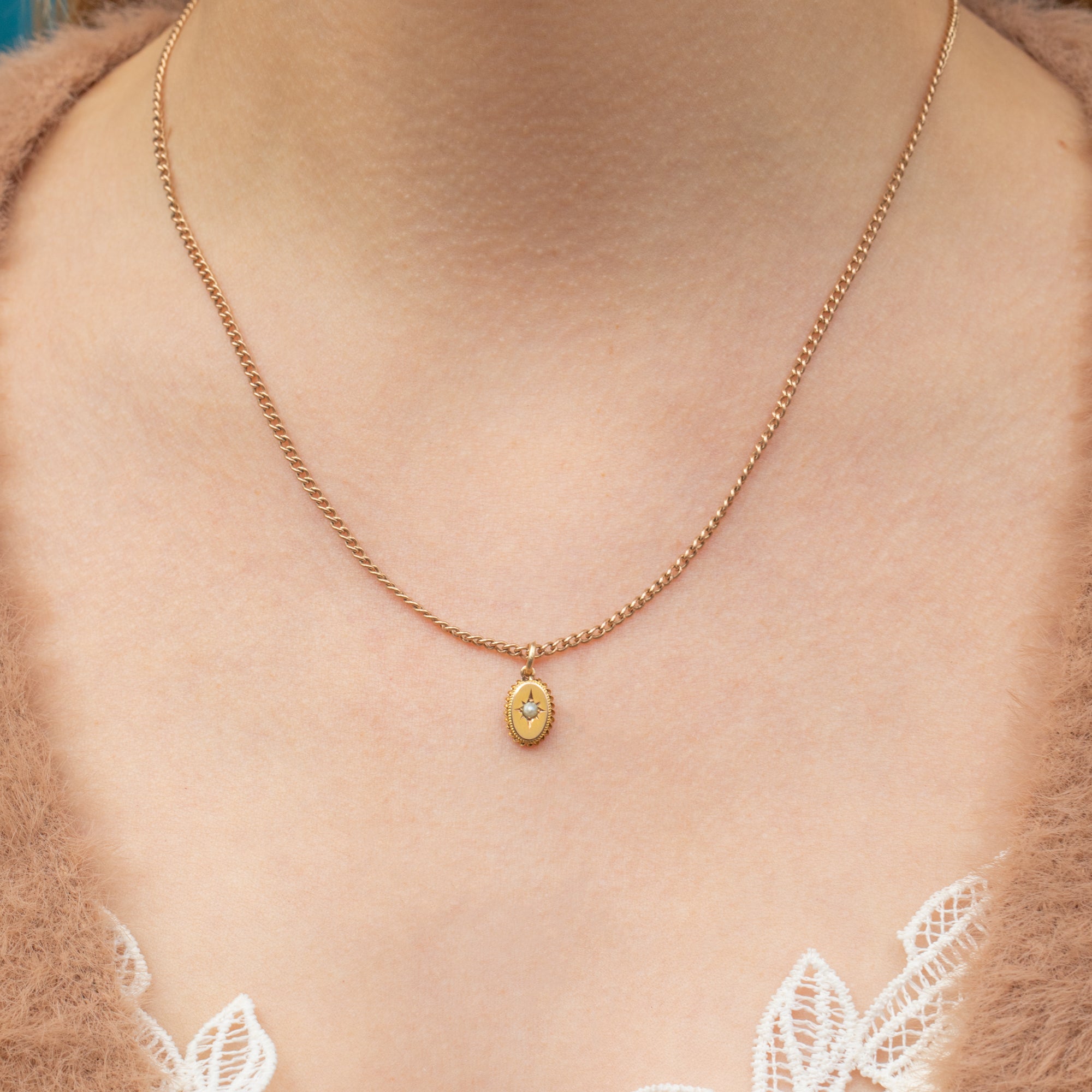We adore this antique 9ct Gold Pearl star set charm! Homing a dainty shimmering Pearl that's too good to resist, this Etruscan revival beauty will feel right at home in your jewellery box.