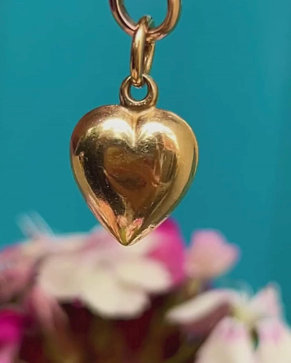 Whether added to a charm bracelet or to a fine Gold chain, this Victorian heart charm can be worn in multiple ways. The smooth and puffy front and back are a delight to hold and wear!