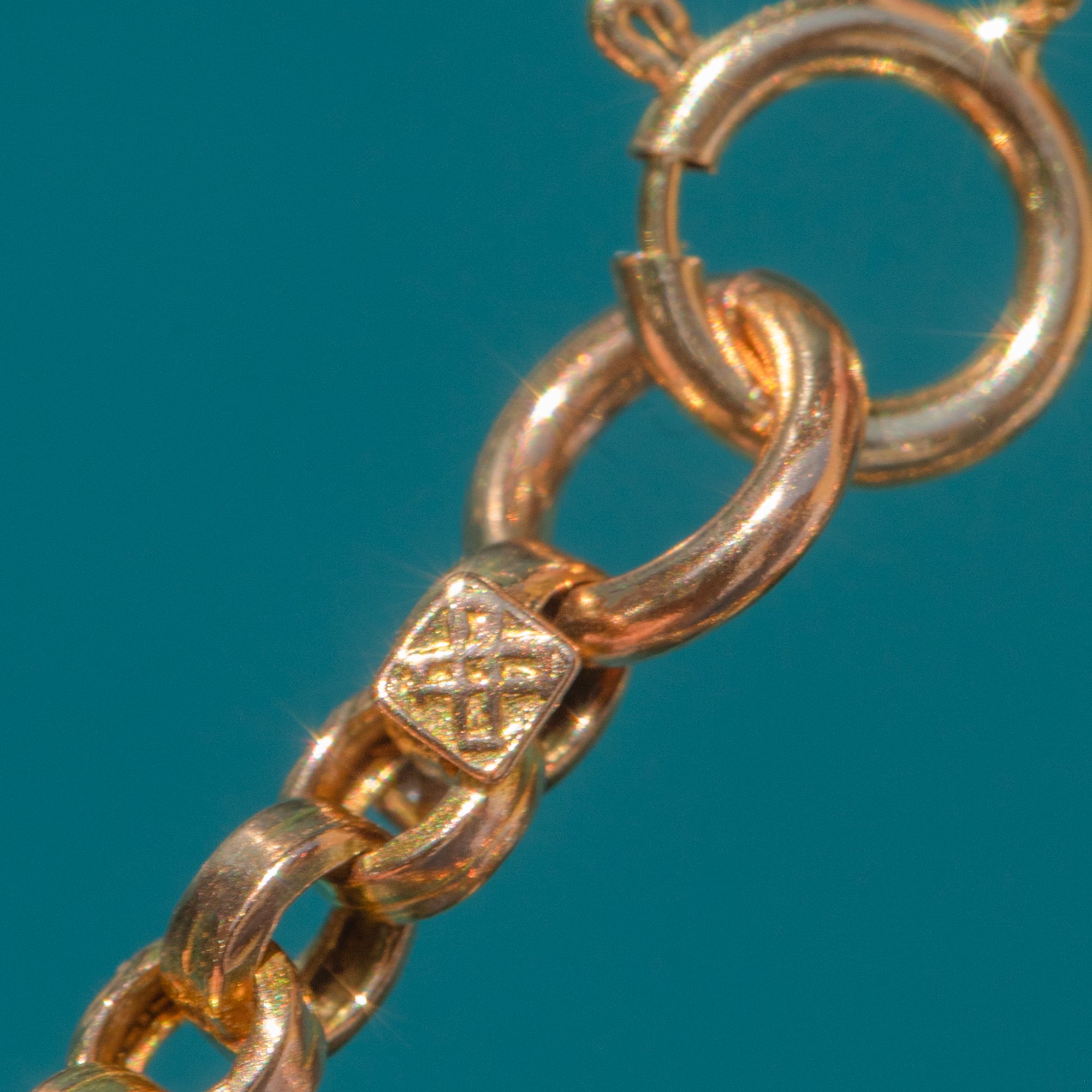 VERY GOOD: This antique 9ct Gold round belcher link bracelet is in very good condition. The links are all securely connected and they perfectly caress the shape of your wrist. There are one or two links with some mild wear, but this is only visible under very close inspection. The later added bolt ring is in perfect working condition so you can wear this Victorian Gold bracelet with absolute confidence!