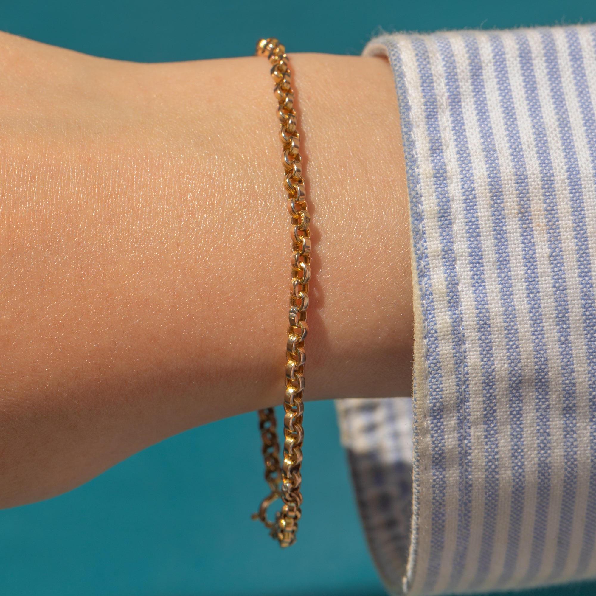 Add an eye-catching flash of Gold to your wrist stack with this antique 9ct Gold round belcher link bracelet!