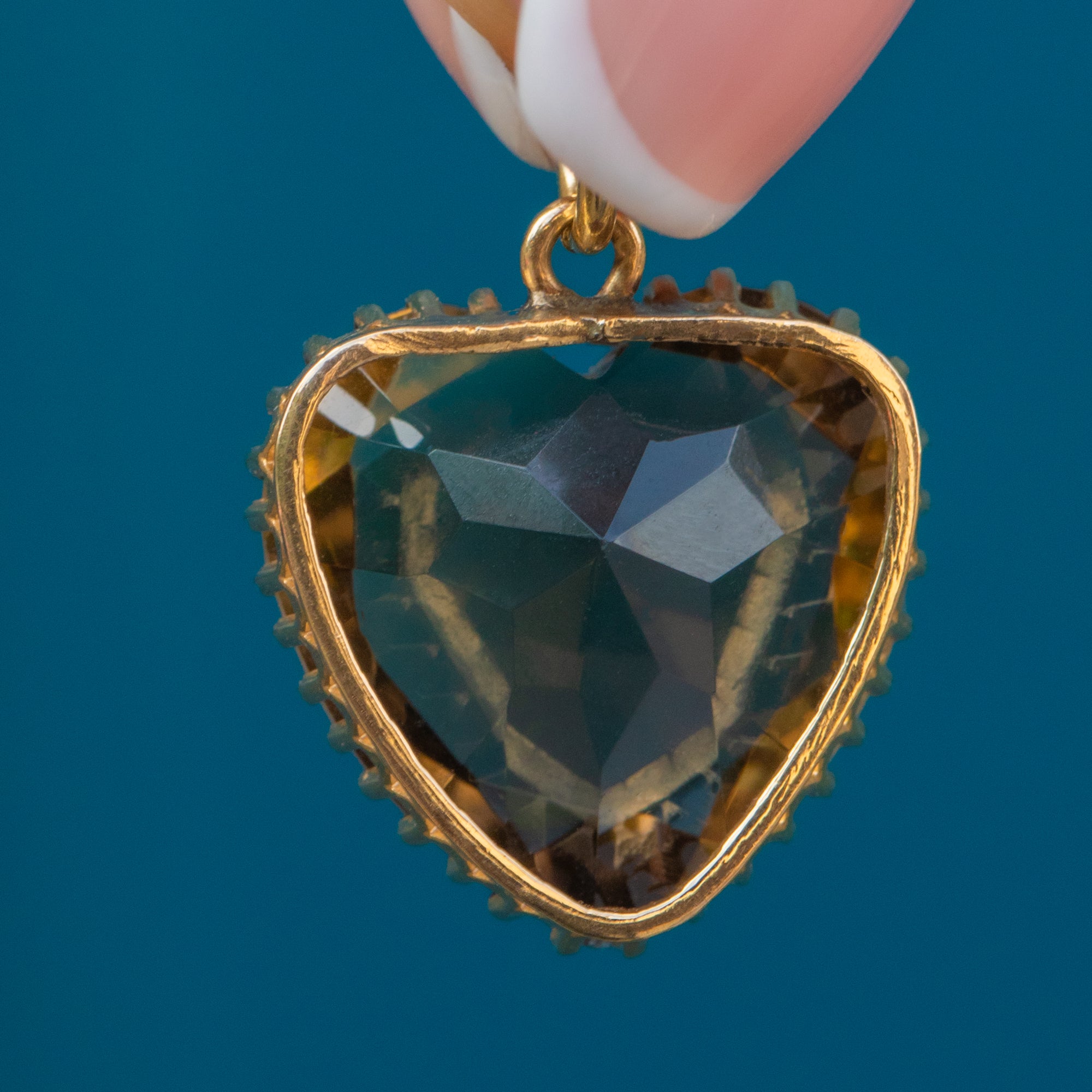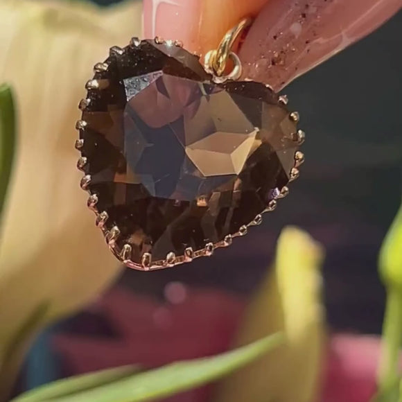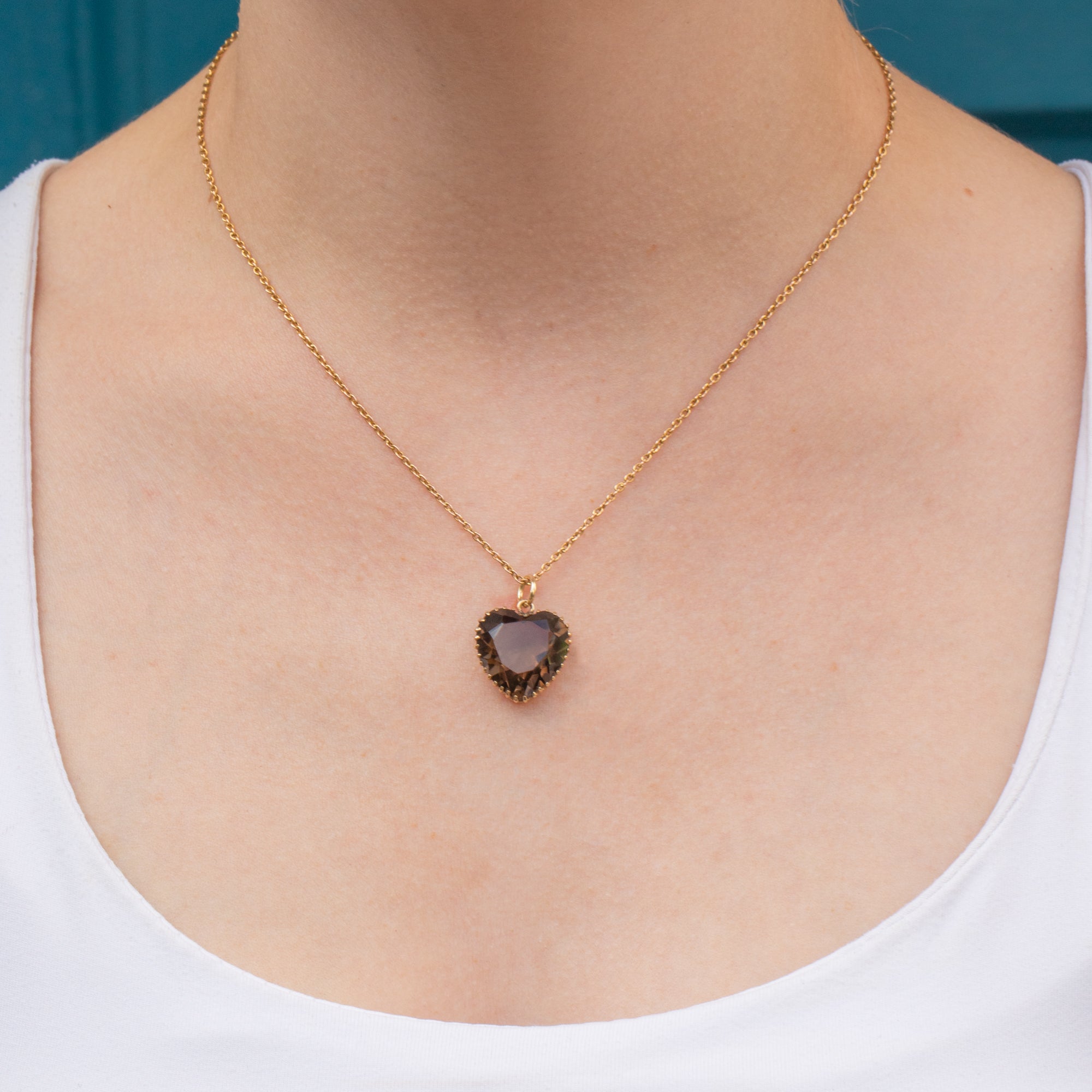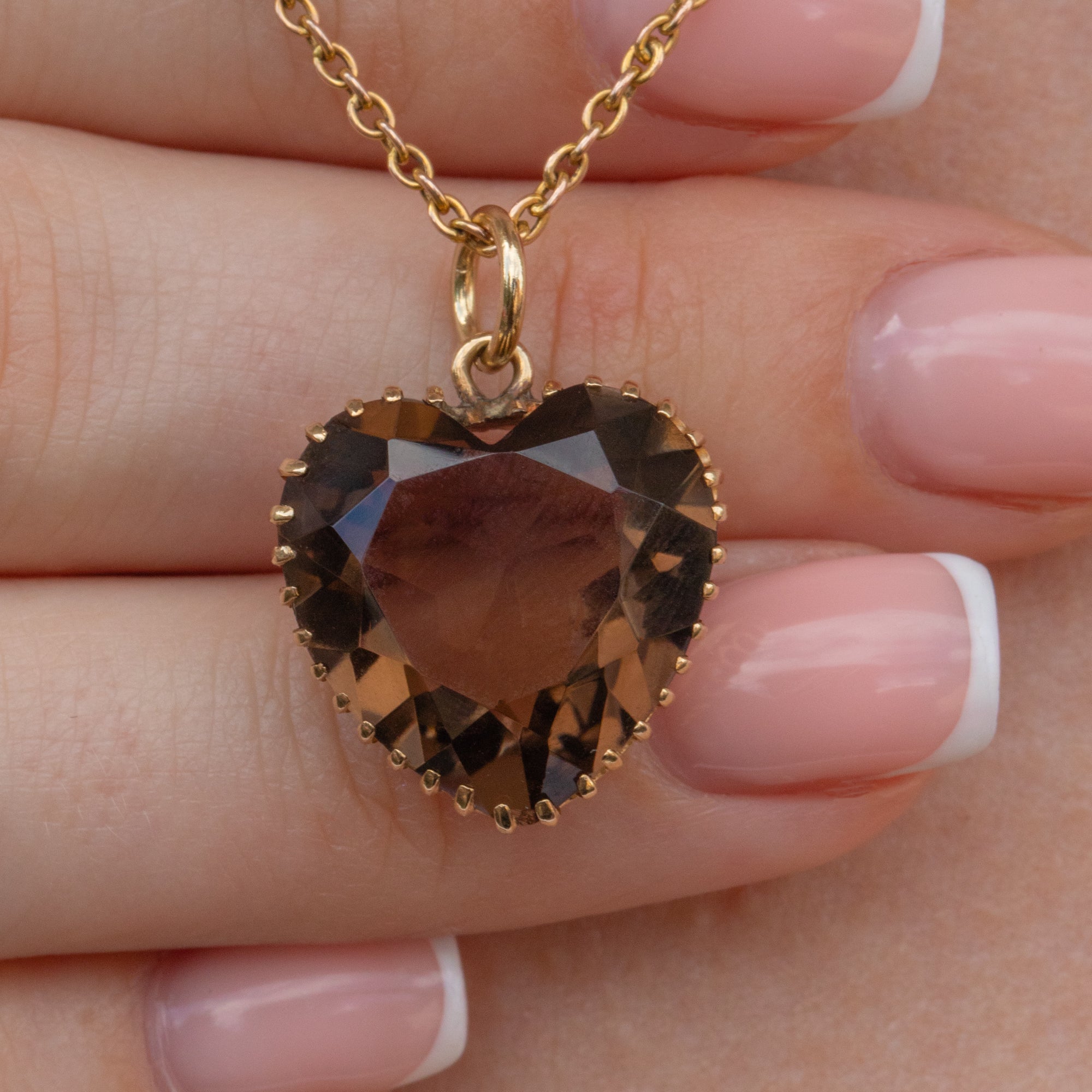 Antique 9ct Gold Smokey Quartz Heart Pendant, 8.75ct
