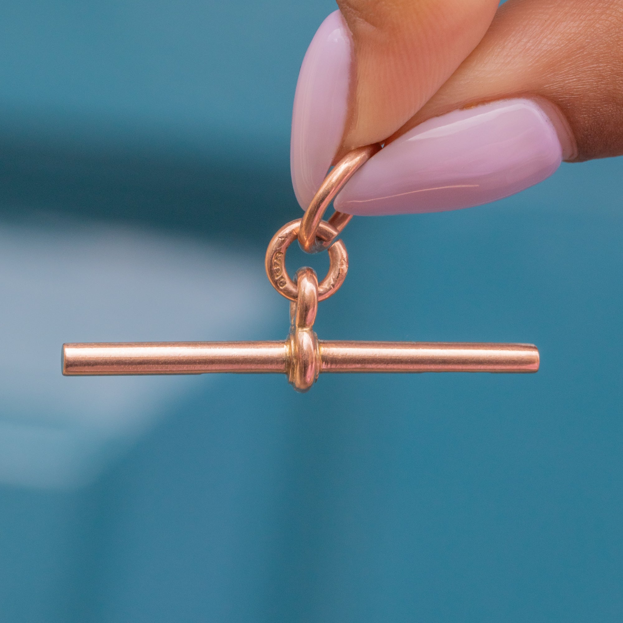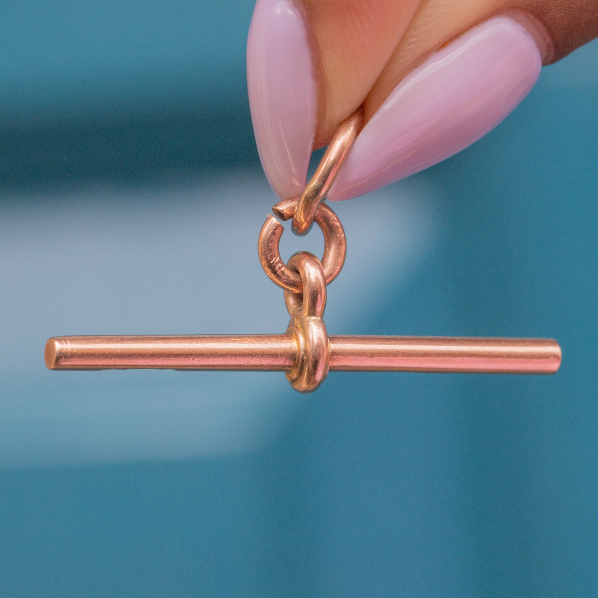 EXCELLENT. This antique 9ct Gold T-Bar pendant is in excellent condition! The 9ct Gold has a lovely sun-kissed hue throughout, perfectly matched by her two jump-rings. There are crisp hallmarks on either side of the bar, which have remained legible to the naked eye. With nothing else to report, this Victorian Gold pendant will make a divine addition to any jewellery collection.
