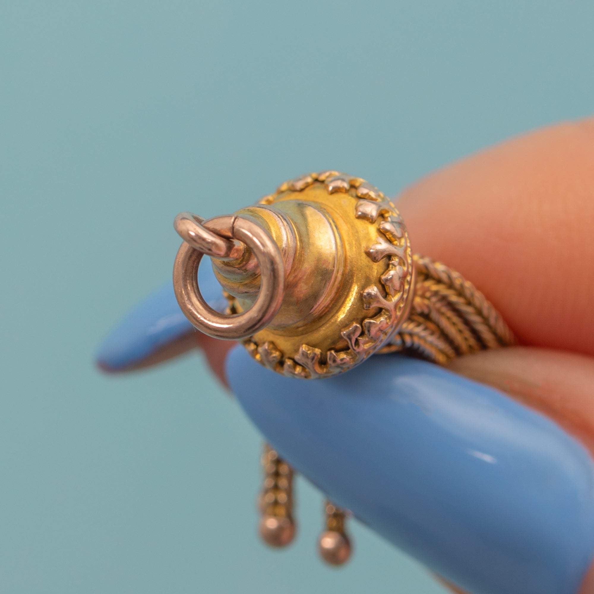 This Victorian 9ct Gold tassel drop pendant exudes antique charm! Crafted from solid 9ct Gold, this antique tassel pendant boasts ornate details spanning the smoothly formed top.