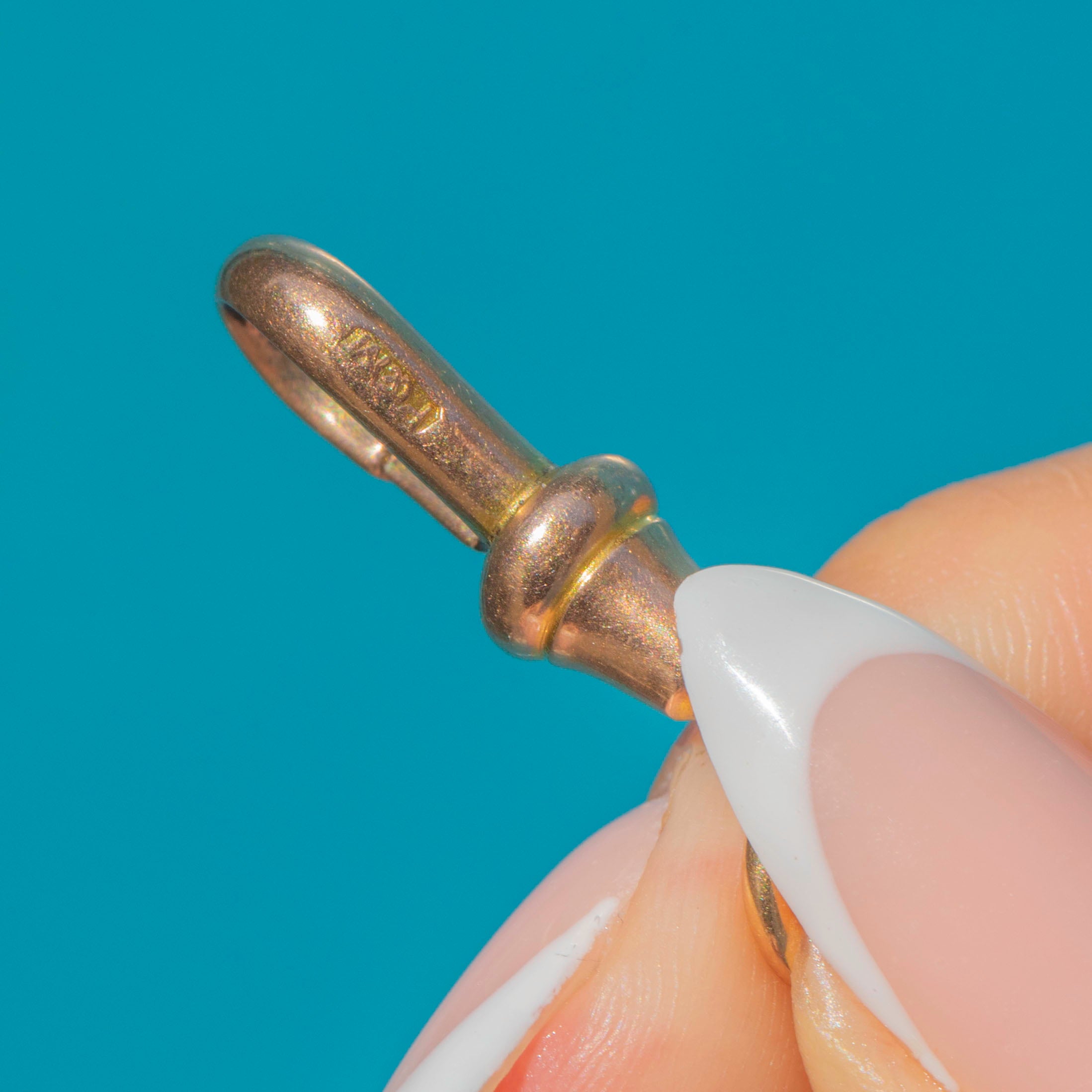 At 56" long, the chain can be worn doubled, tripled, or left to drape elegantly at its full length. Finished with a sturdy dog clip stamped “P&M, 9.375”, it is both practical and stylish, perfect for attaching pendants, lockets, or charms. A classic Victorian jewel, full of charm and wearability.