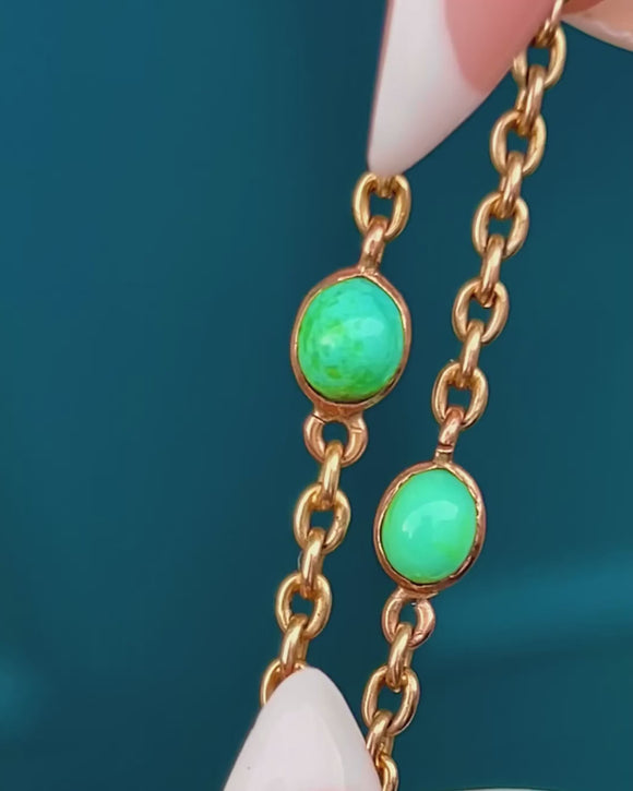 Antique 9ct Gold & Turquoise Longuard chain 56" long