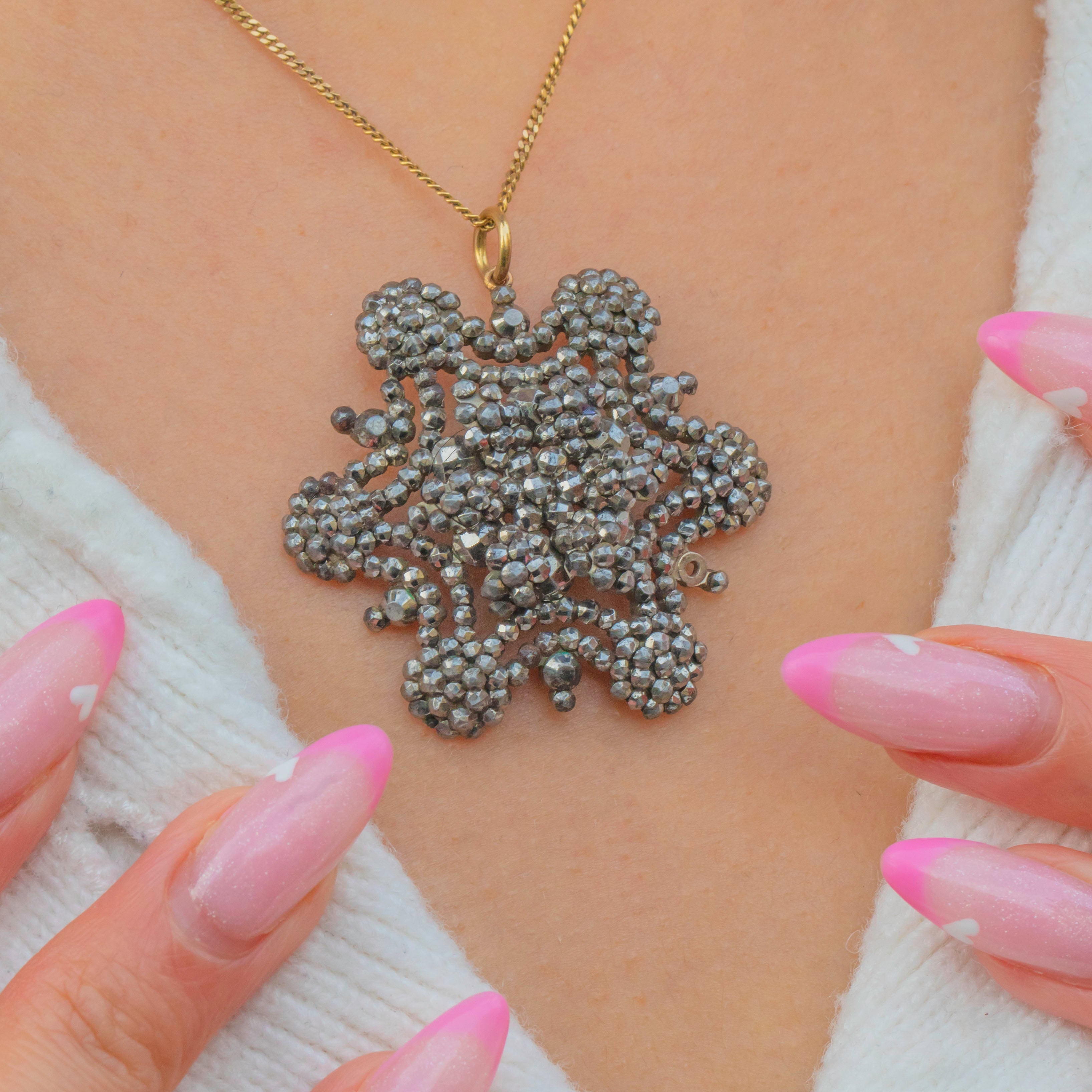 This antique Cut Steel starburst pendant is oh-so sparkly! Standing out from the crowd, this Victorian pendant is perfect for adding some instant glamour to any outfit.