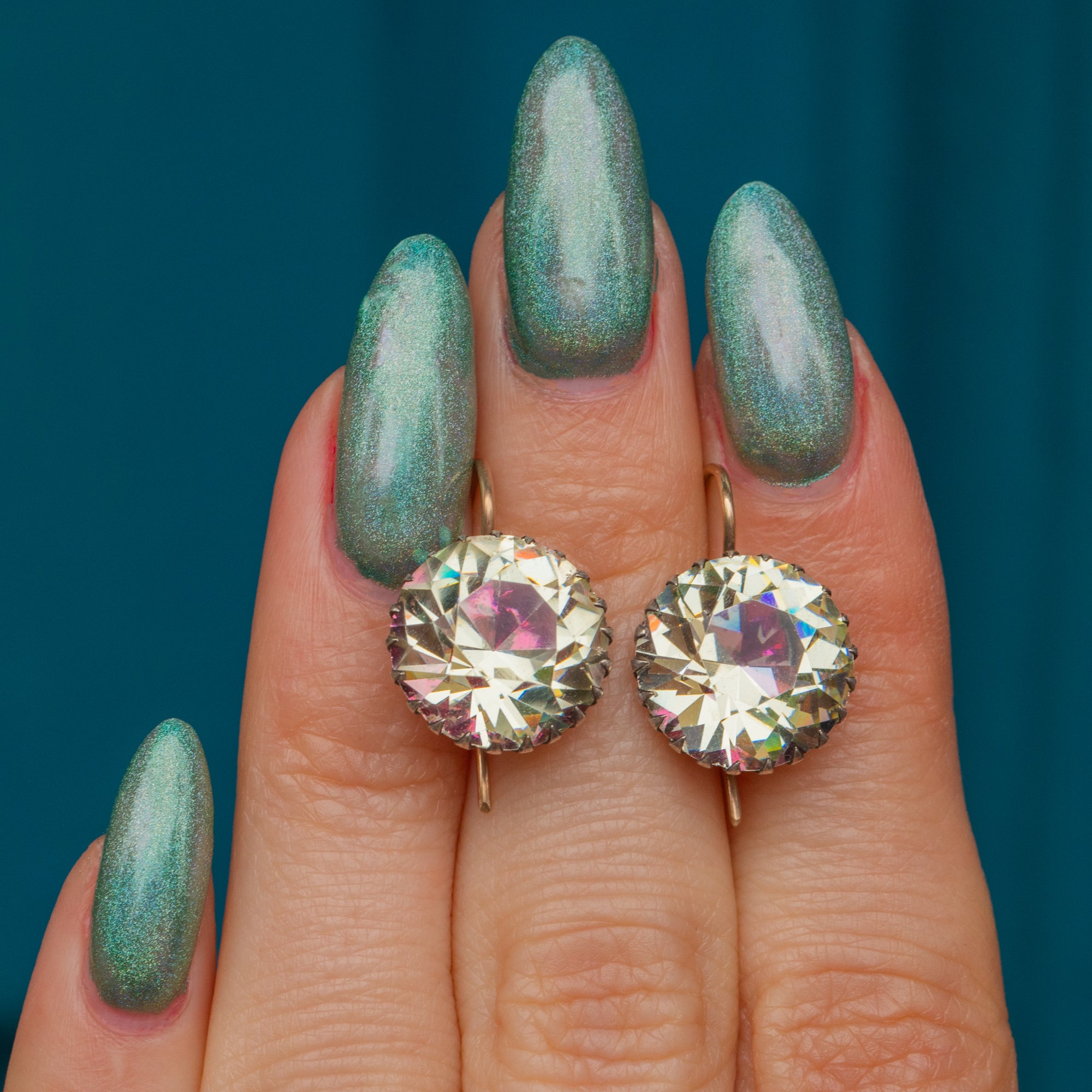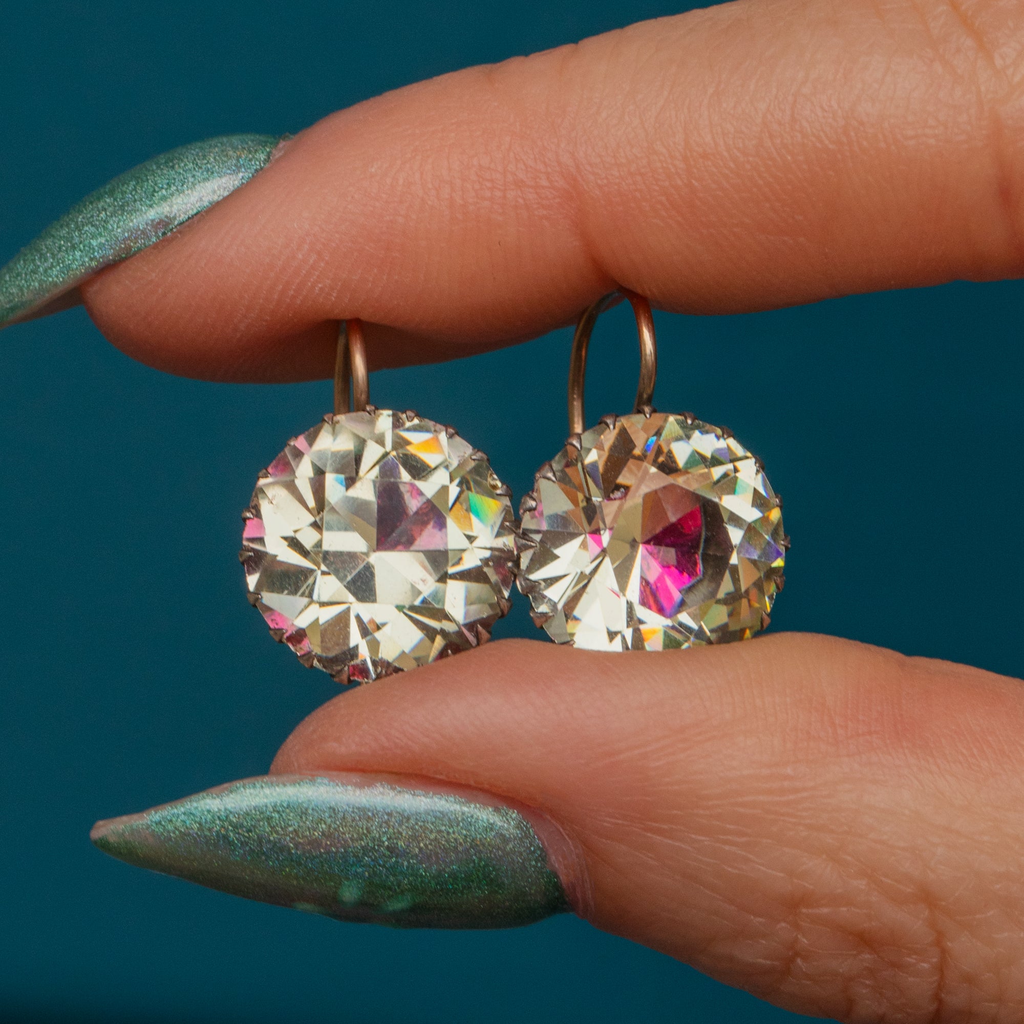 These Victorian earrings are impressive in size and their modest drop makes them the perfect pair to see you from day until night with ease. Antique foiled Paste in such fabulous and striking condition is a rare find, so don't wait around to make these delightful earrings yours!