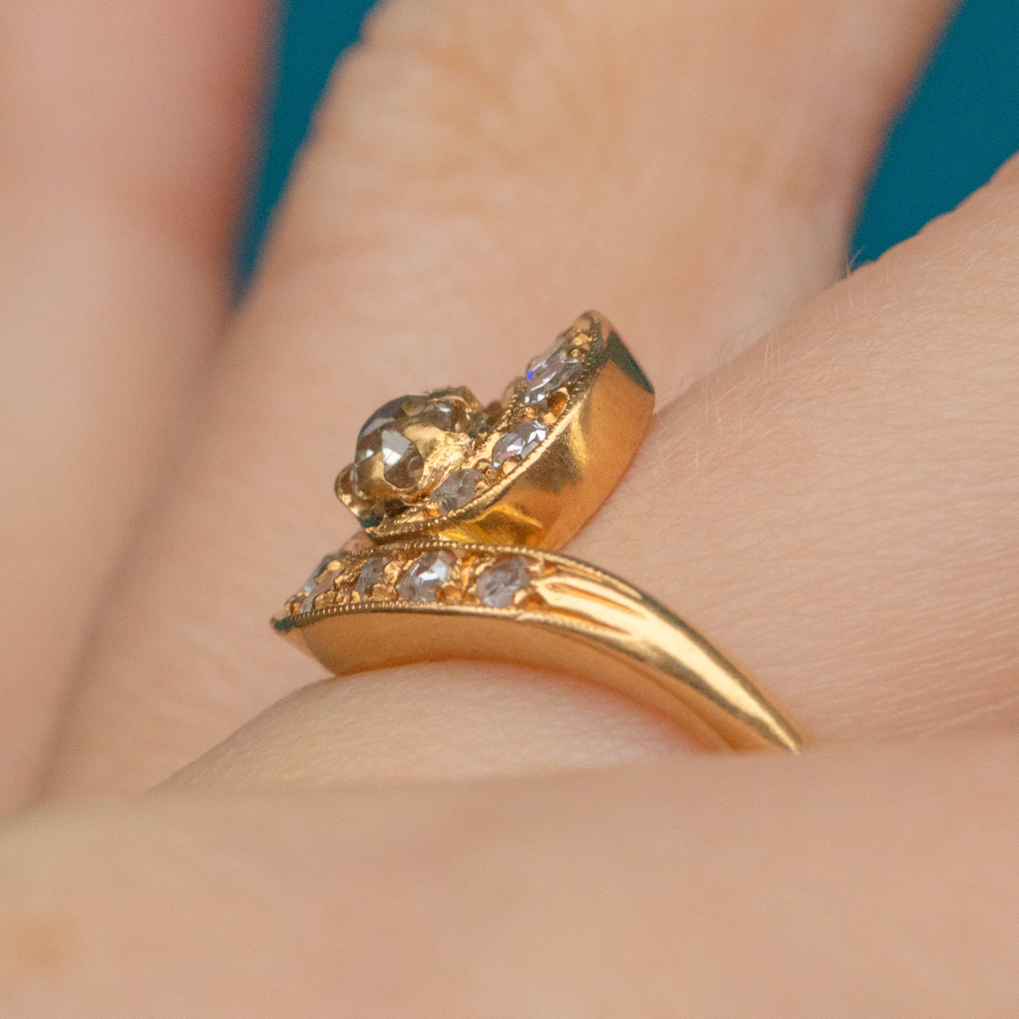Antique French 18ct Gold Diamond Tourbillon Ring, 0.50ct