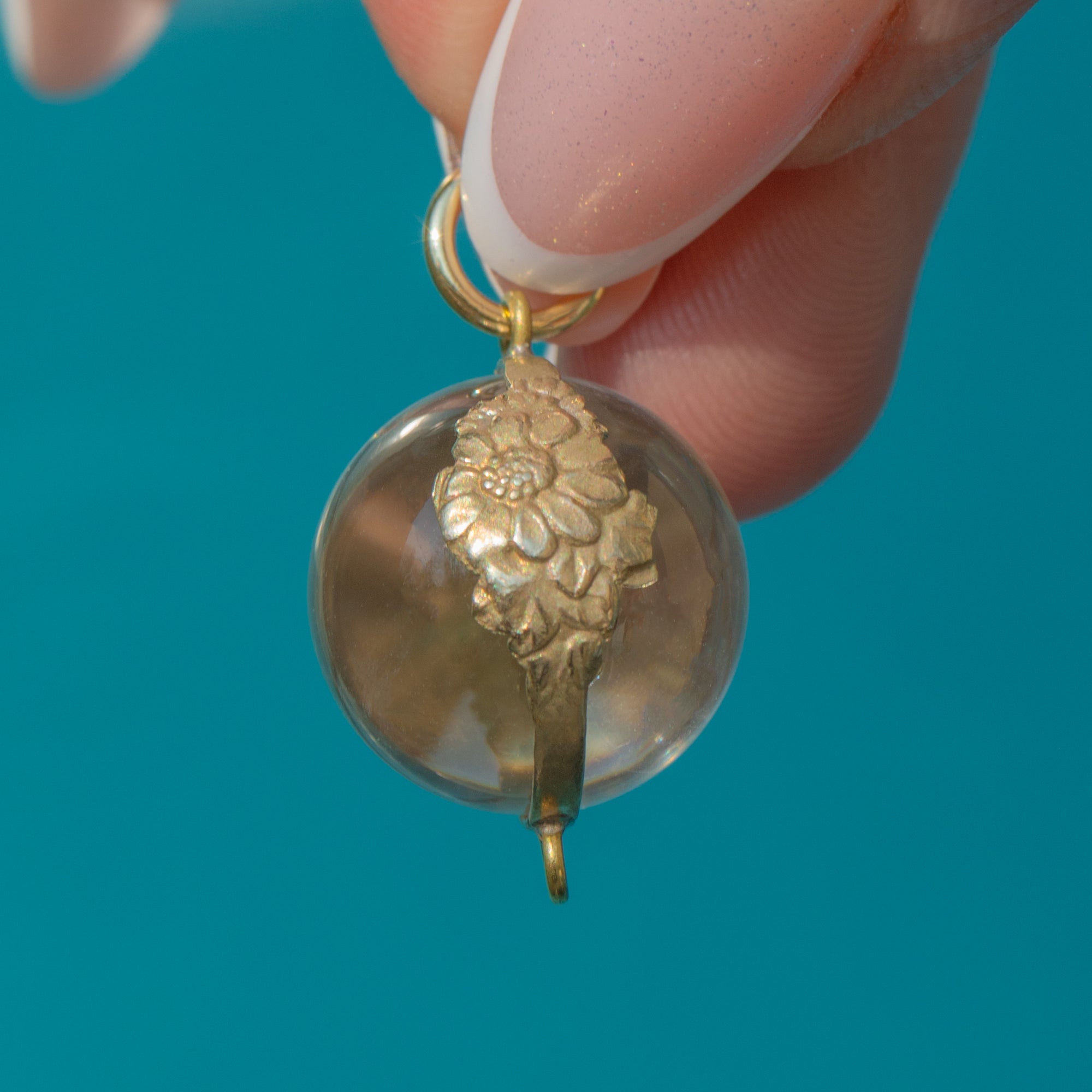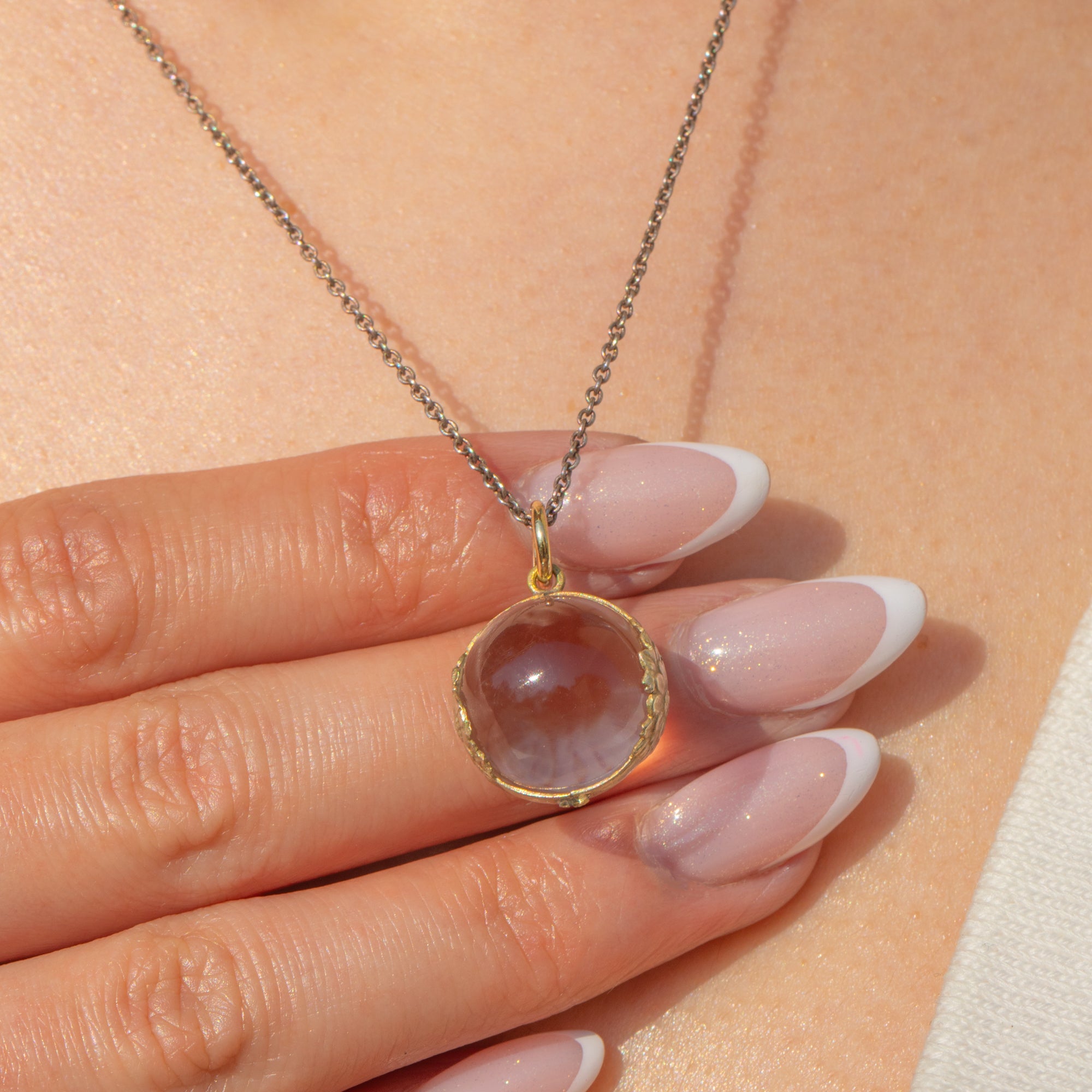 Complete with floral settings elegantly encasing the smooth Rock Crystal, this Victorian charm is full of antique splendour and is the perfect size for suspending from a fine chain or adding to a chunky bracelet - the options are endless!