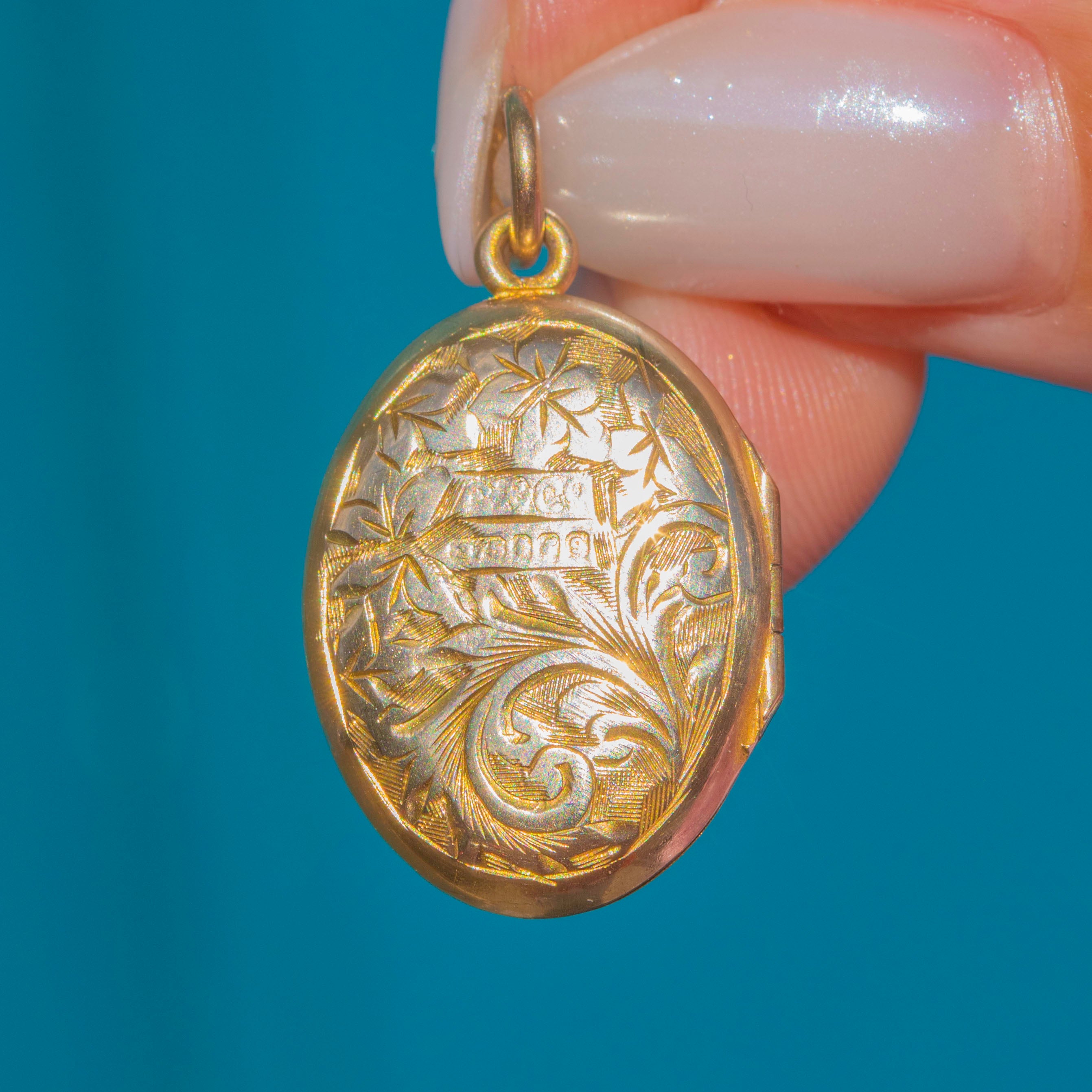 Antique Solid 9ct Gold Engraved Oval Locket Item added