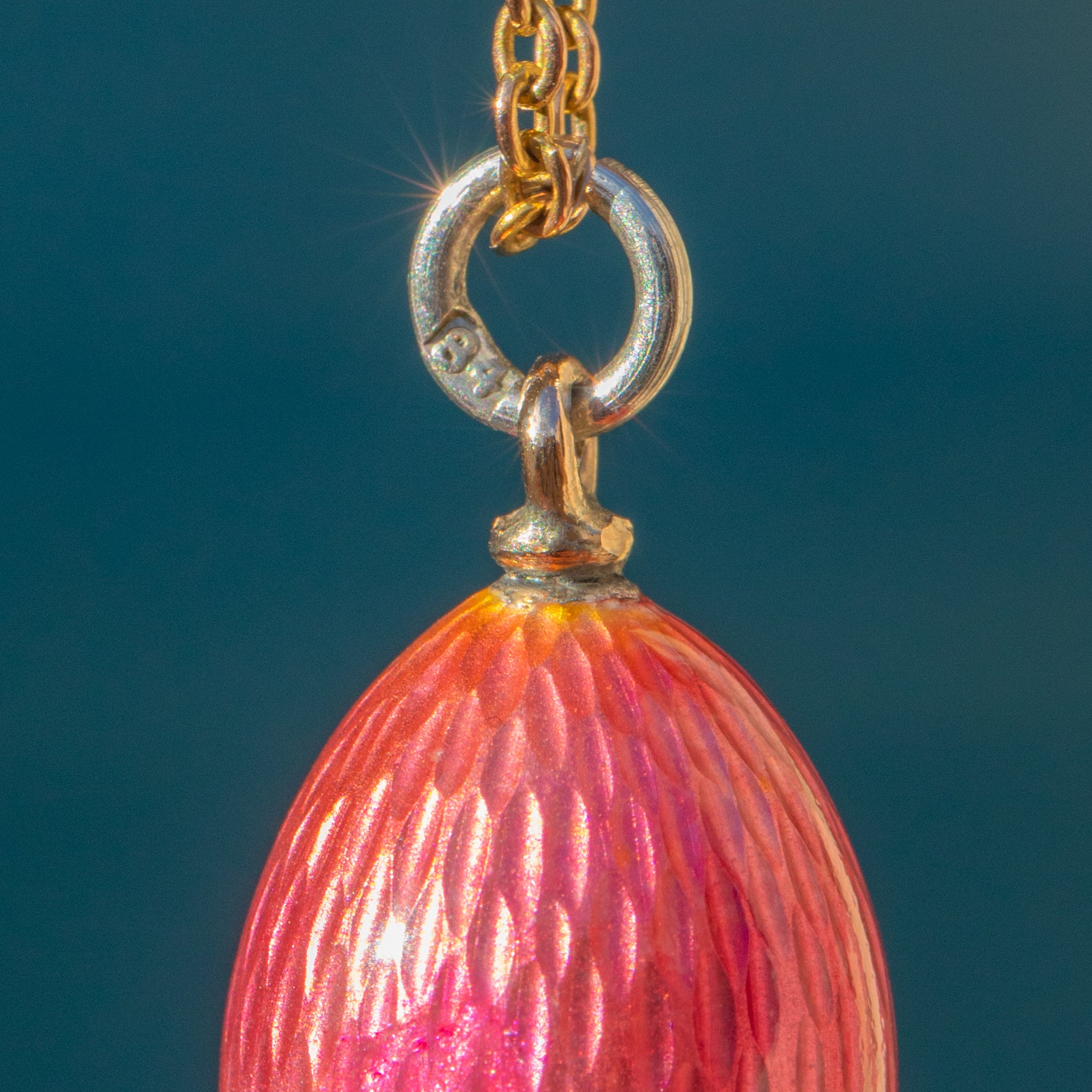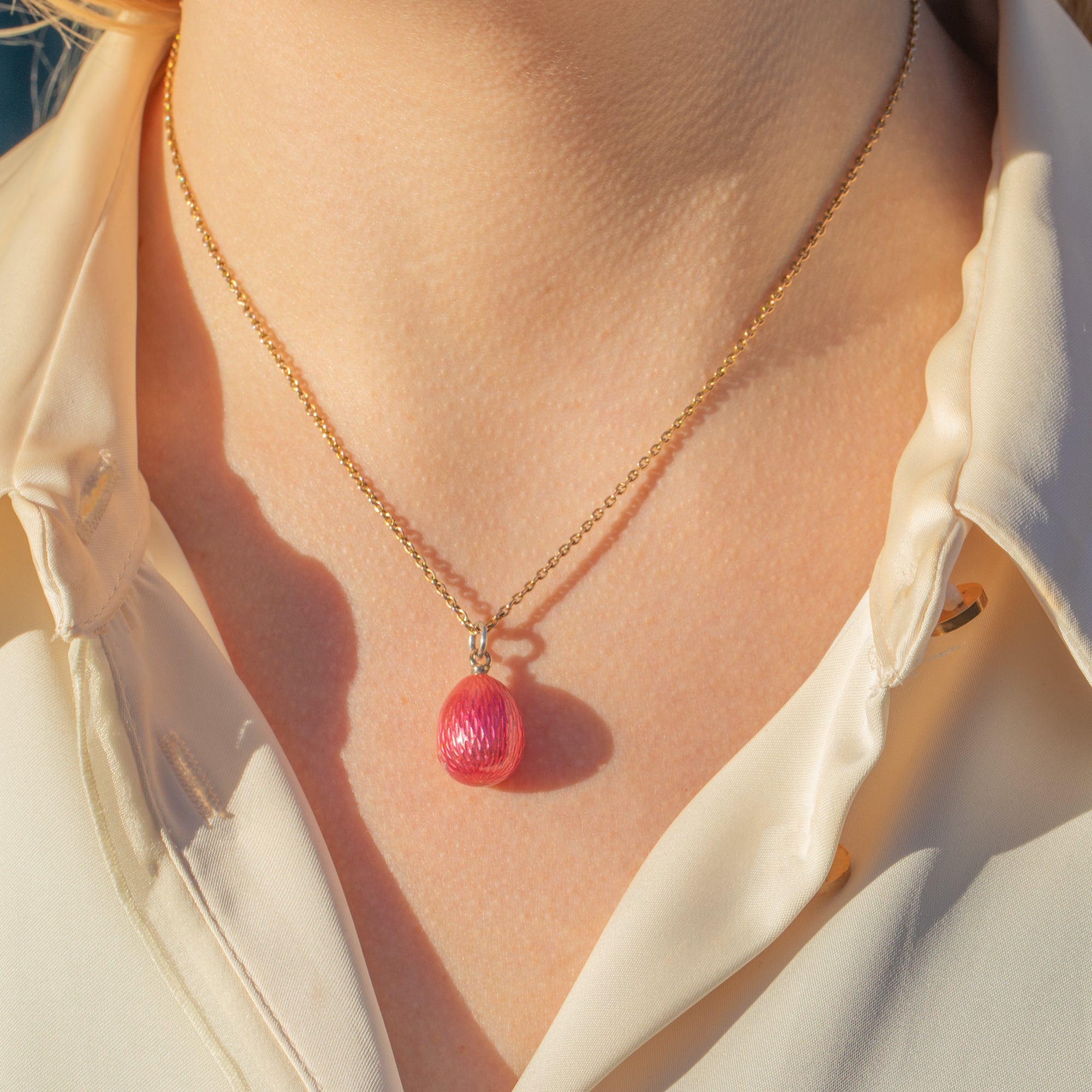 Crafted circa 1910, it was the Faberge egg pendants of the late 19th century that spurred a wave of intrigue around these little charming pieces, and this pink treasure is a fine example.