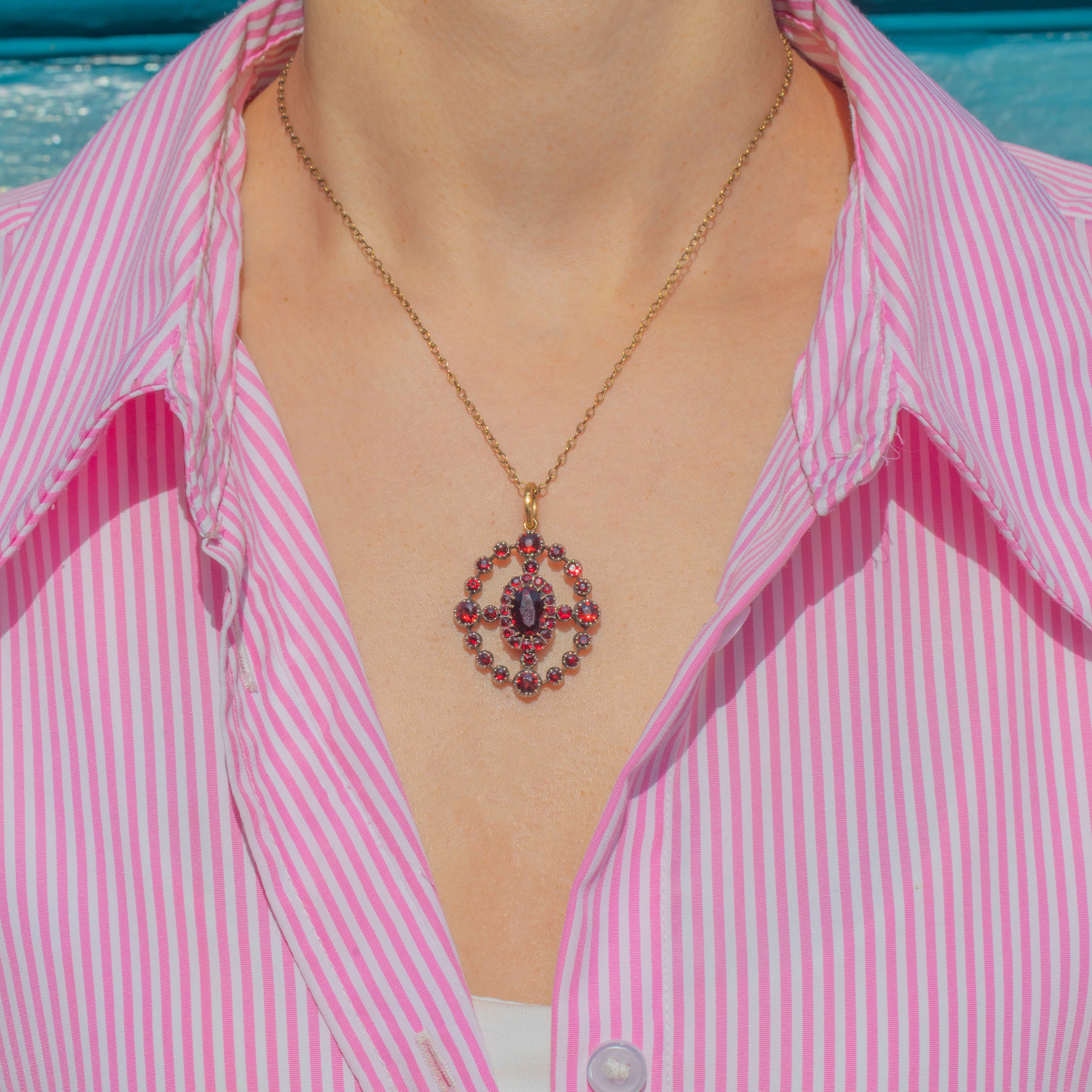 Antique Victorian Garnet Cluster Pendant 8.45ct