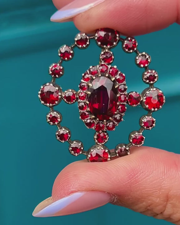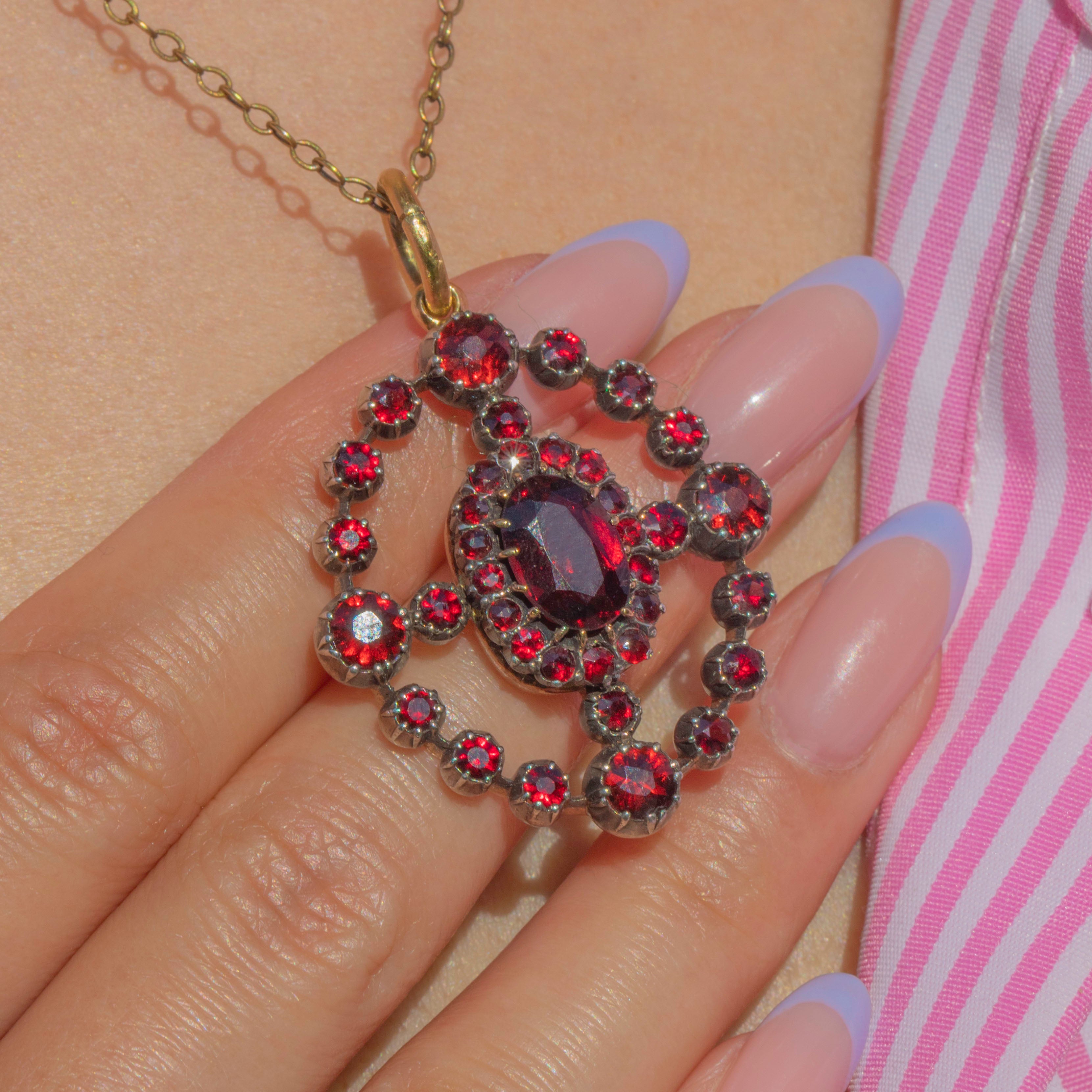 The pendant has been crafted from Sterling Silver and backed with 18ct Gold, as was common during the 19th century. Garnets were a favoured stone during the Victorian era, desired for their delectable berry red hue!