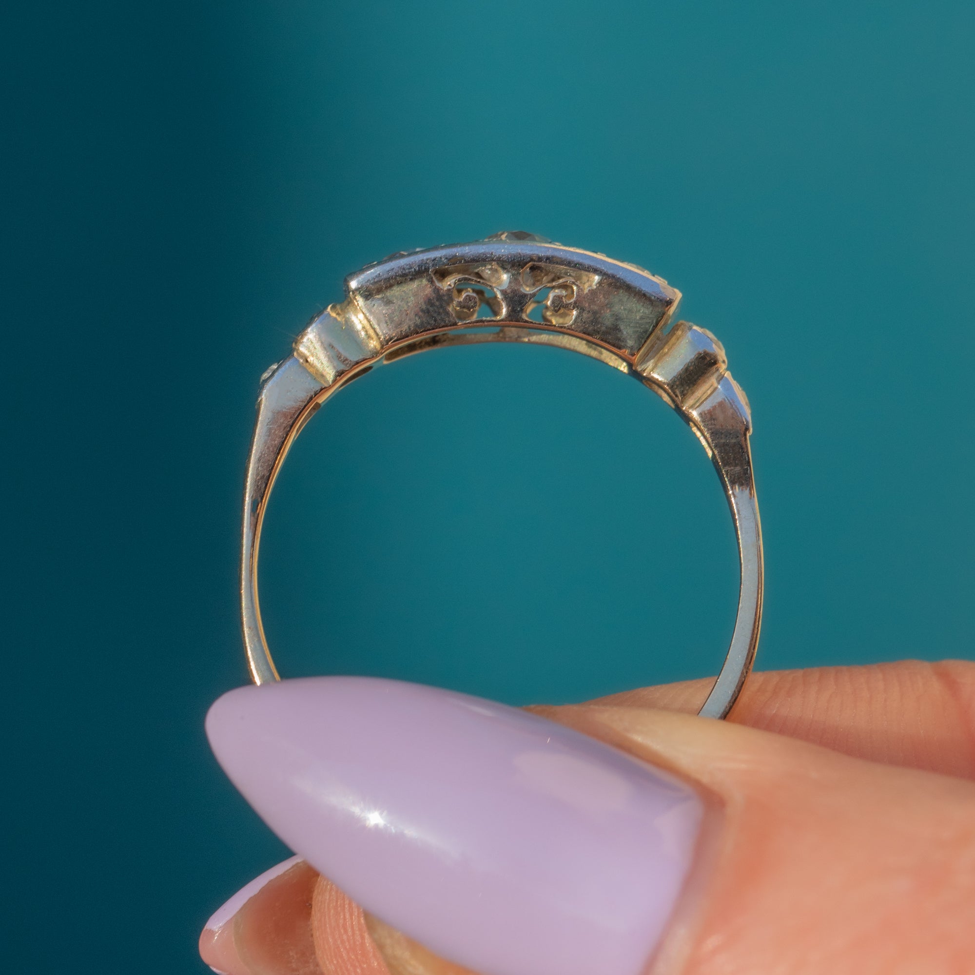 This Art Deco 18ct Gold Diamond trilogy ring is elegance embodied!