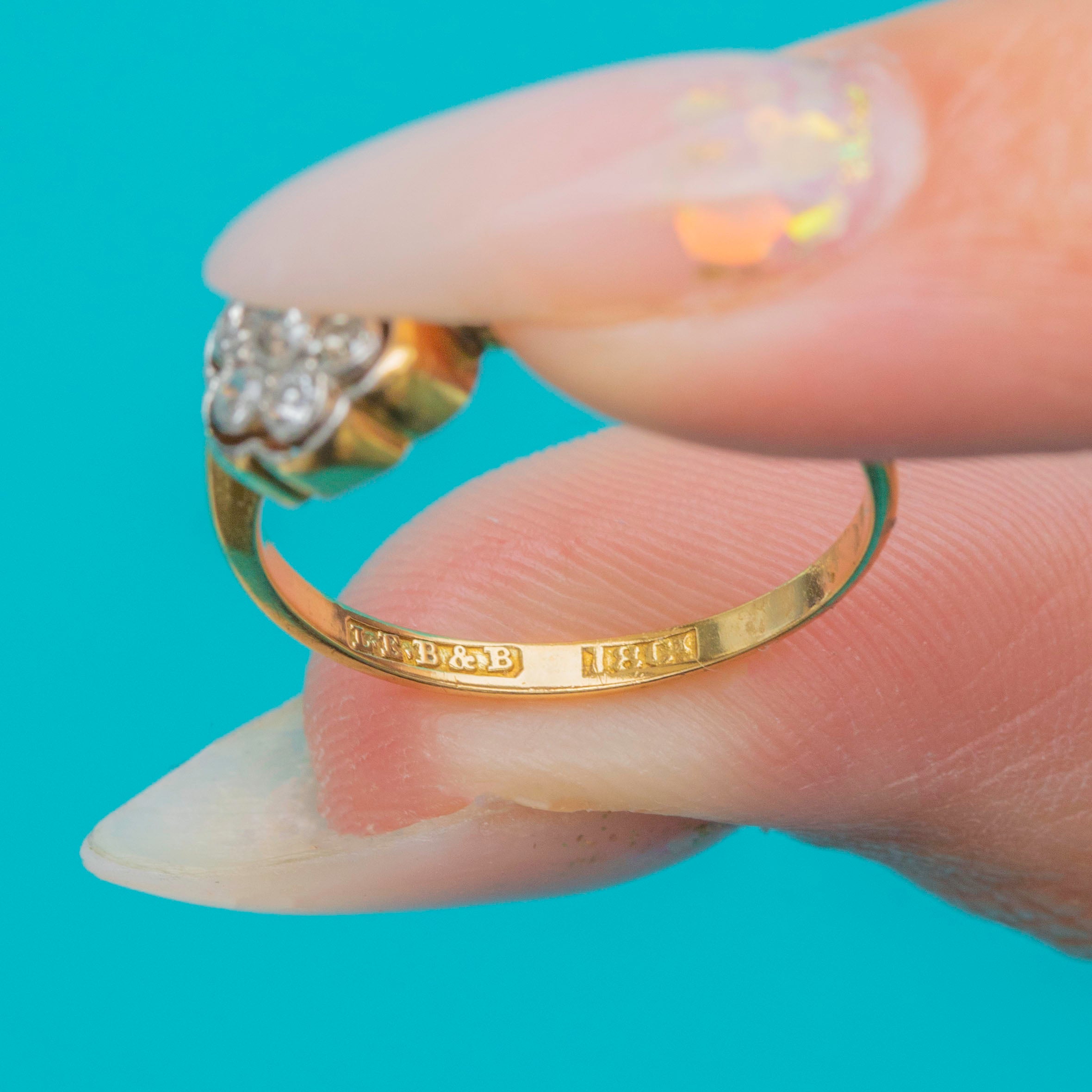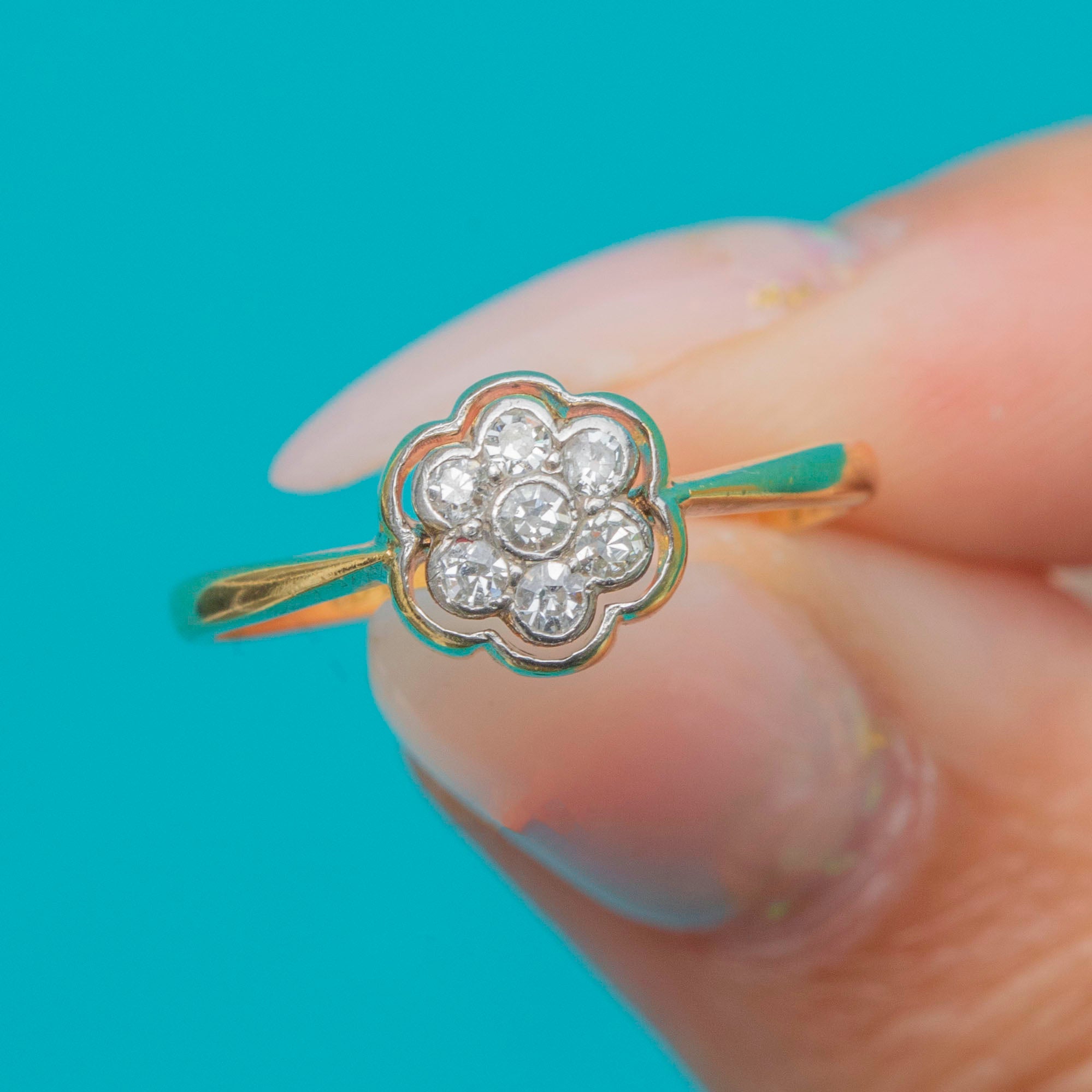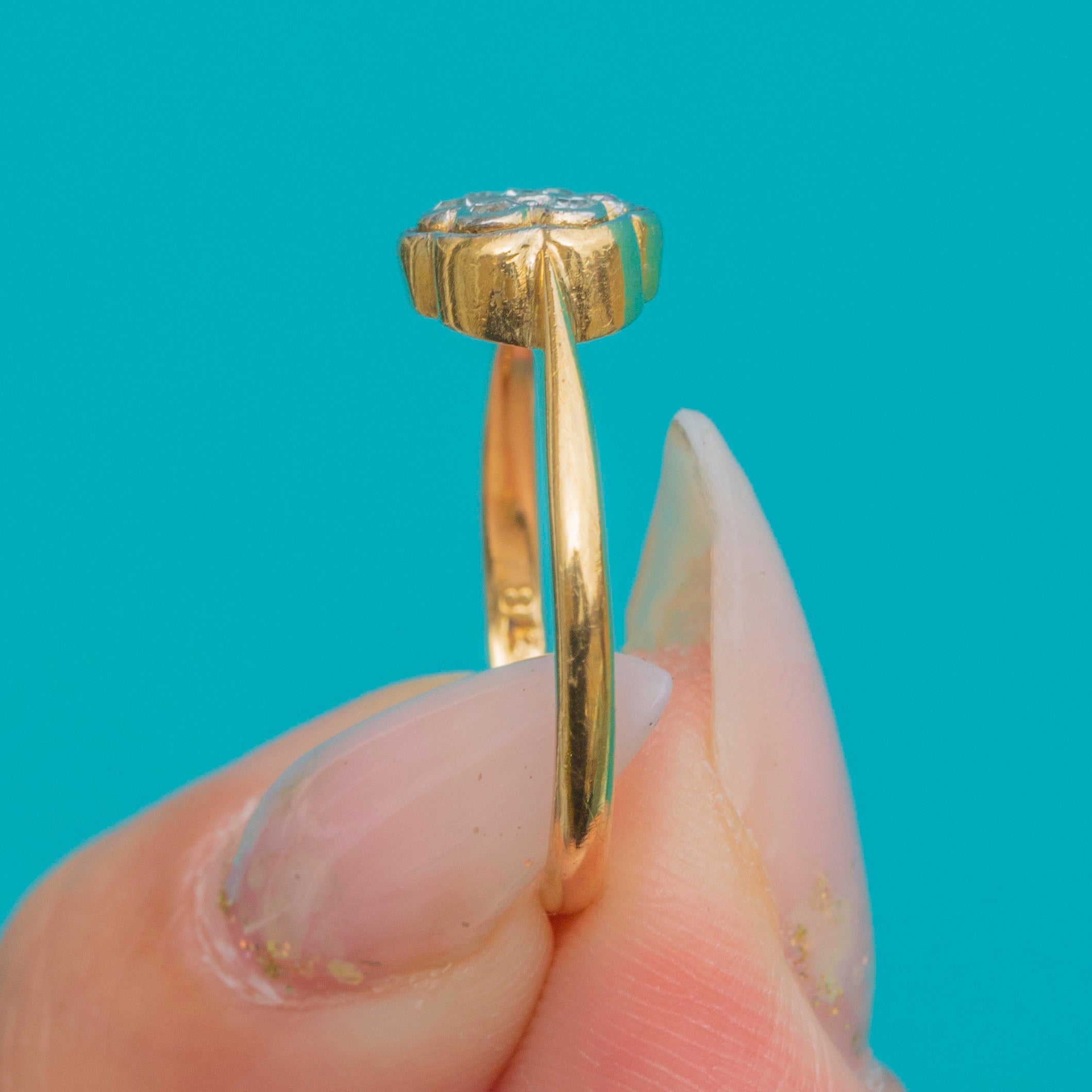 Art Deco 18ct Gold Old Mine Cut Diamond Flower Cluster Ring c.1920s Item added
