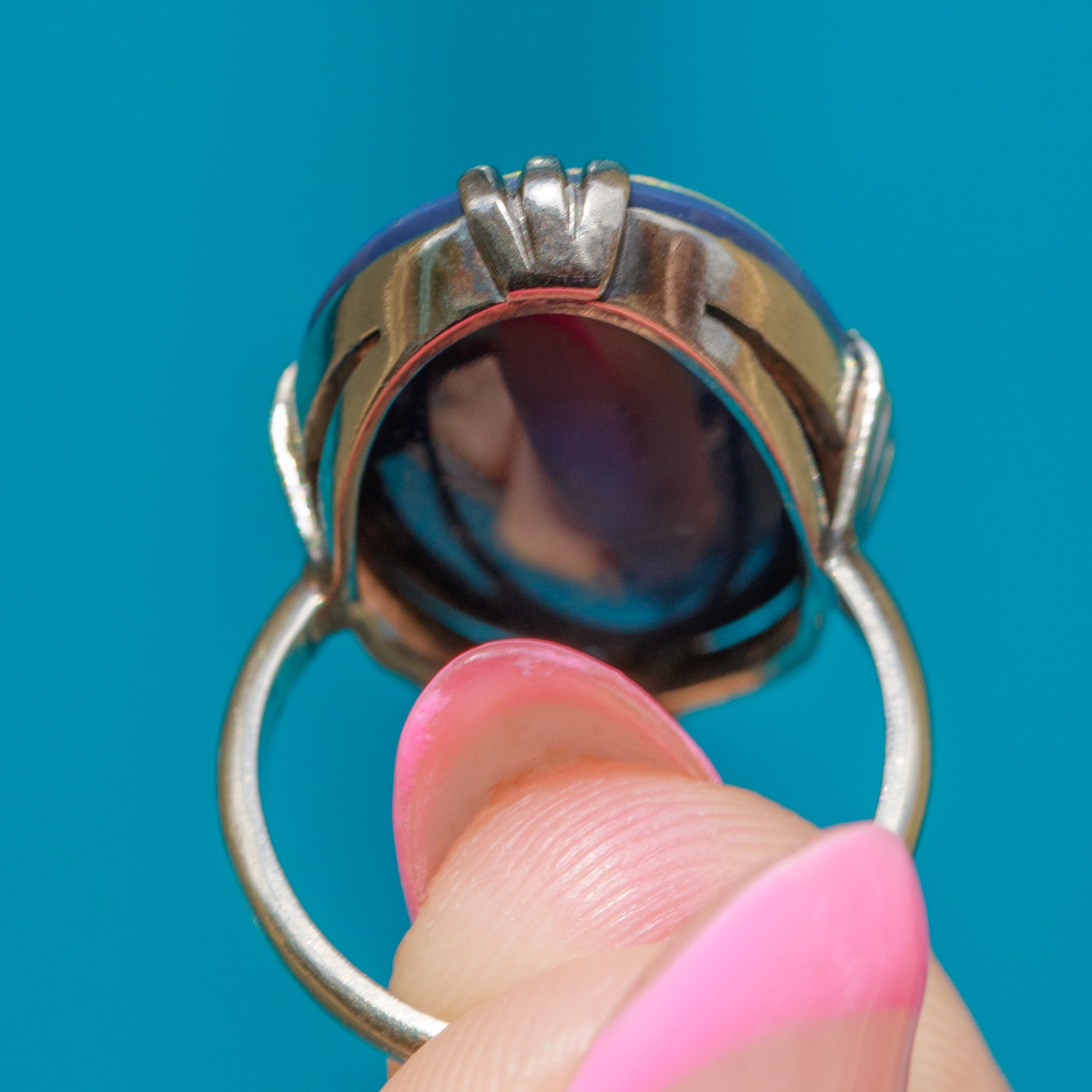 This unusual dress ring will make a standout addition to every outfit. This striking Art Deco ring is bound to bring endless enjoyment to the woman whose finger she adorns!