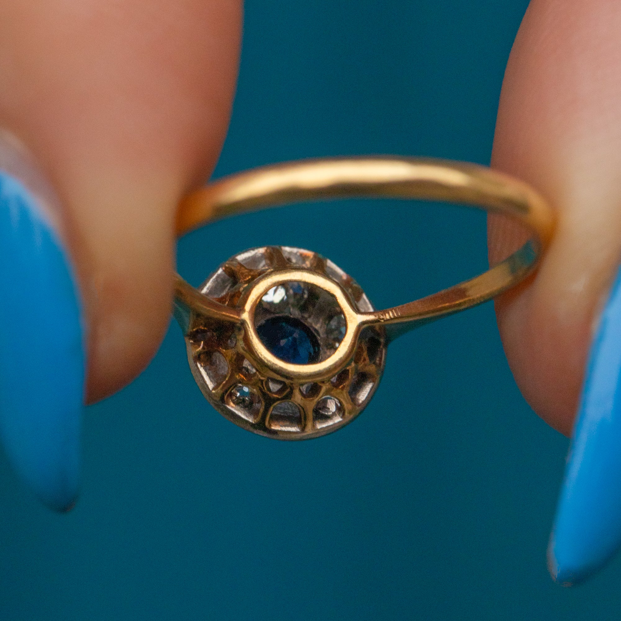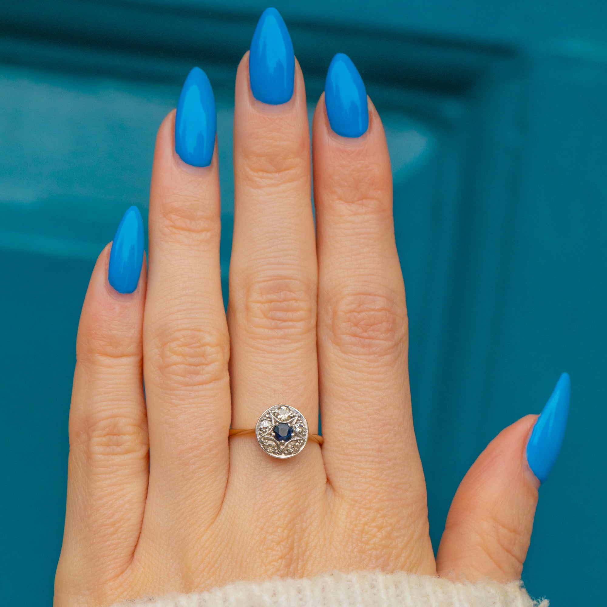 Fall in love with this Art Deco 18ct Gold Sapphire Diamond star cluster ring!