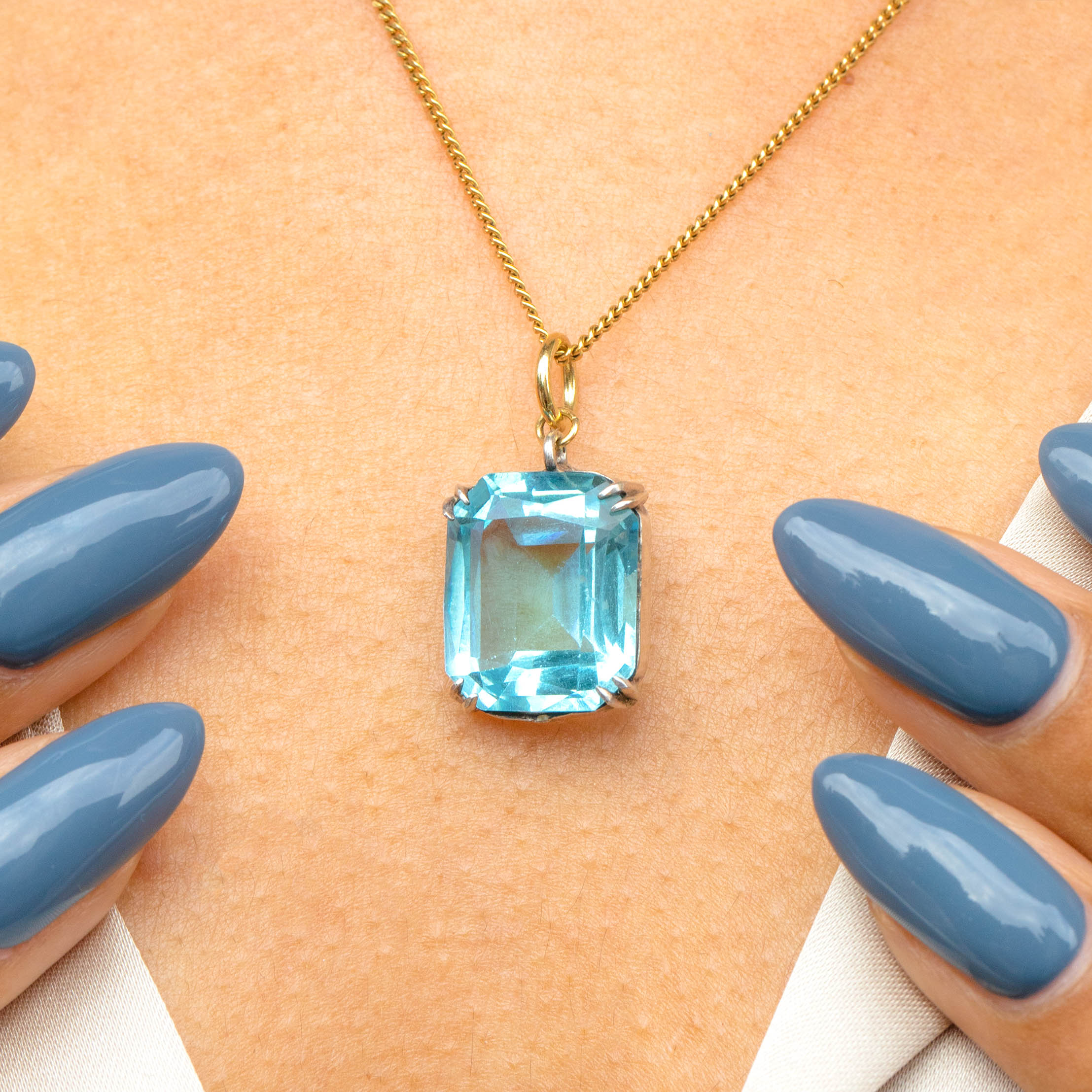 Add a refreshing pop of colour to your antique jewellery collection with this Art Deco blue Paste pendant! Vivacious sparkles emanate from the perfectly cut facets of her blue Paste with an arctic blue core.