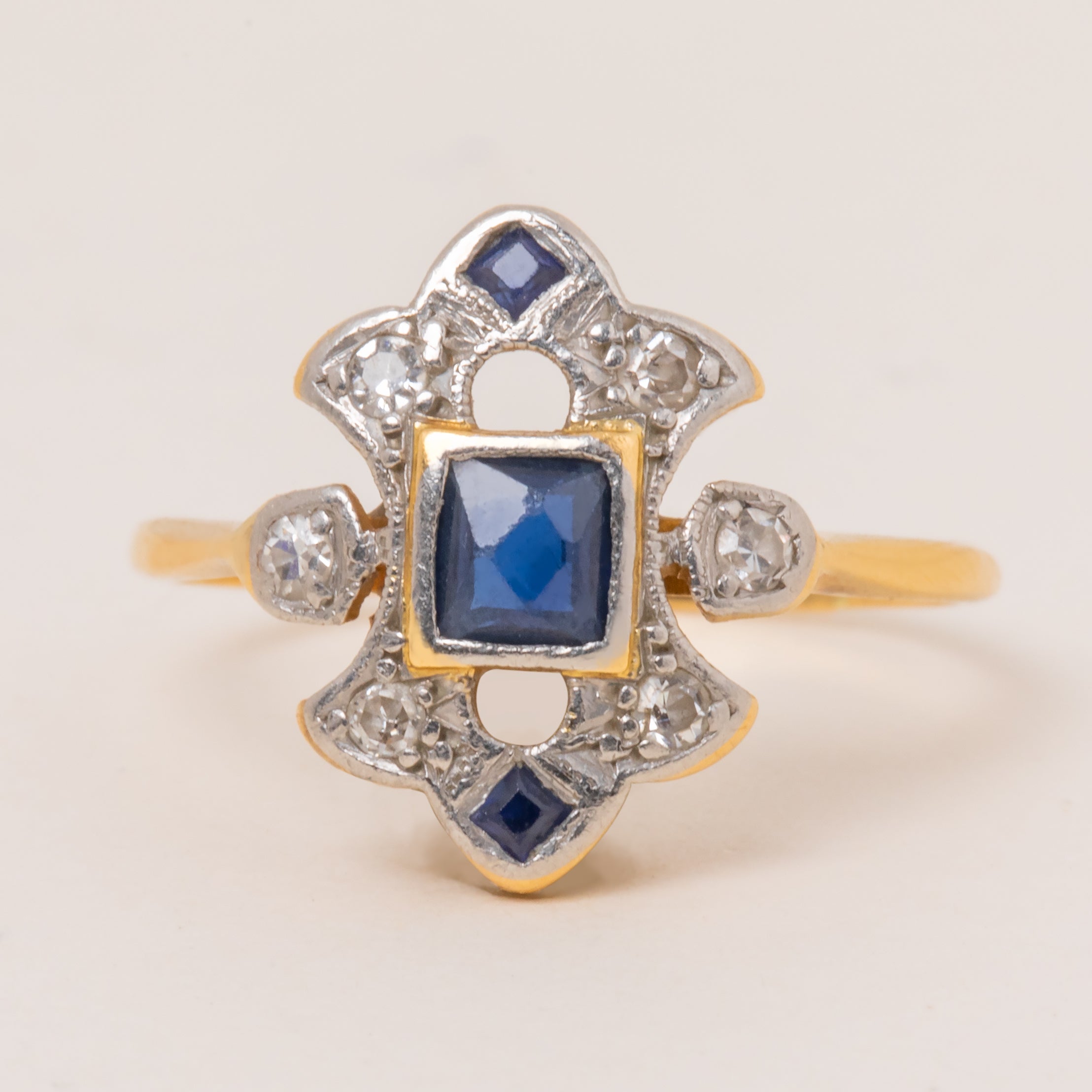 Art Deco French-Cut Sapphire & Diamond Ring, 18ct Gold