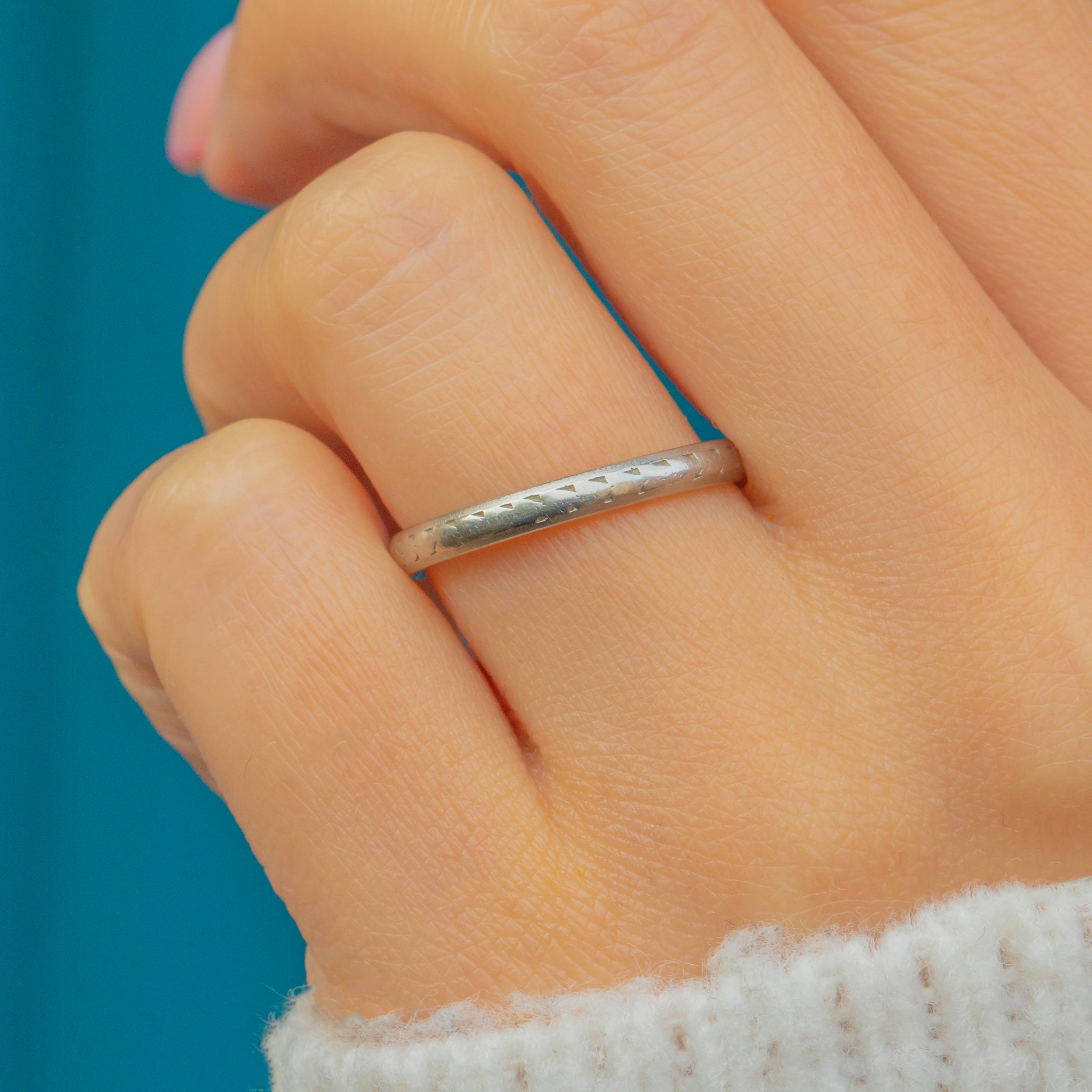 Art Deco Platinum Engraved Wedding Band, 3g