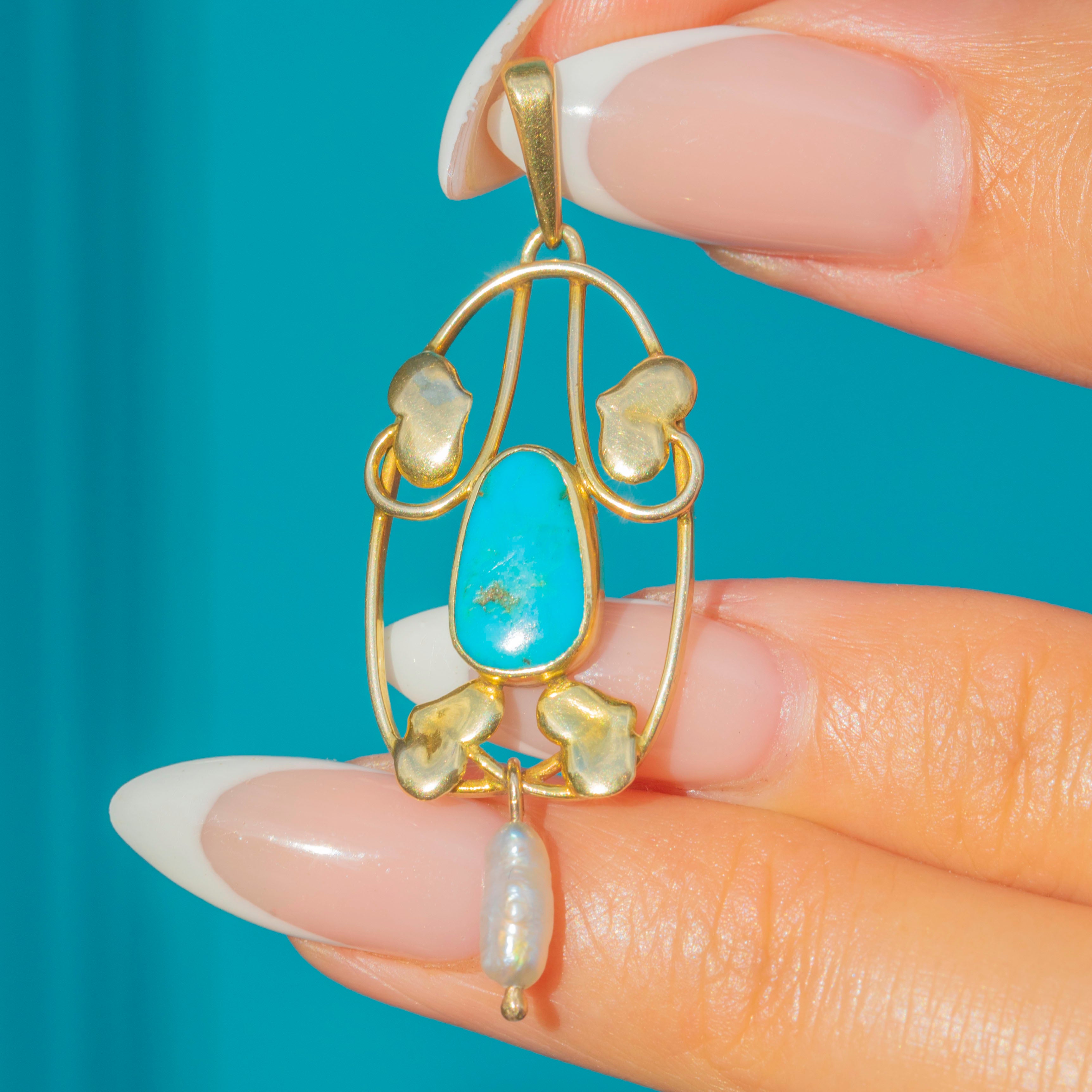 Art Nouveau 18ct Gold Turquoise Pearl Pendant  - Attributed to Murrle Bennett Item added