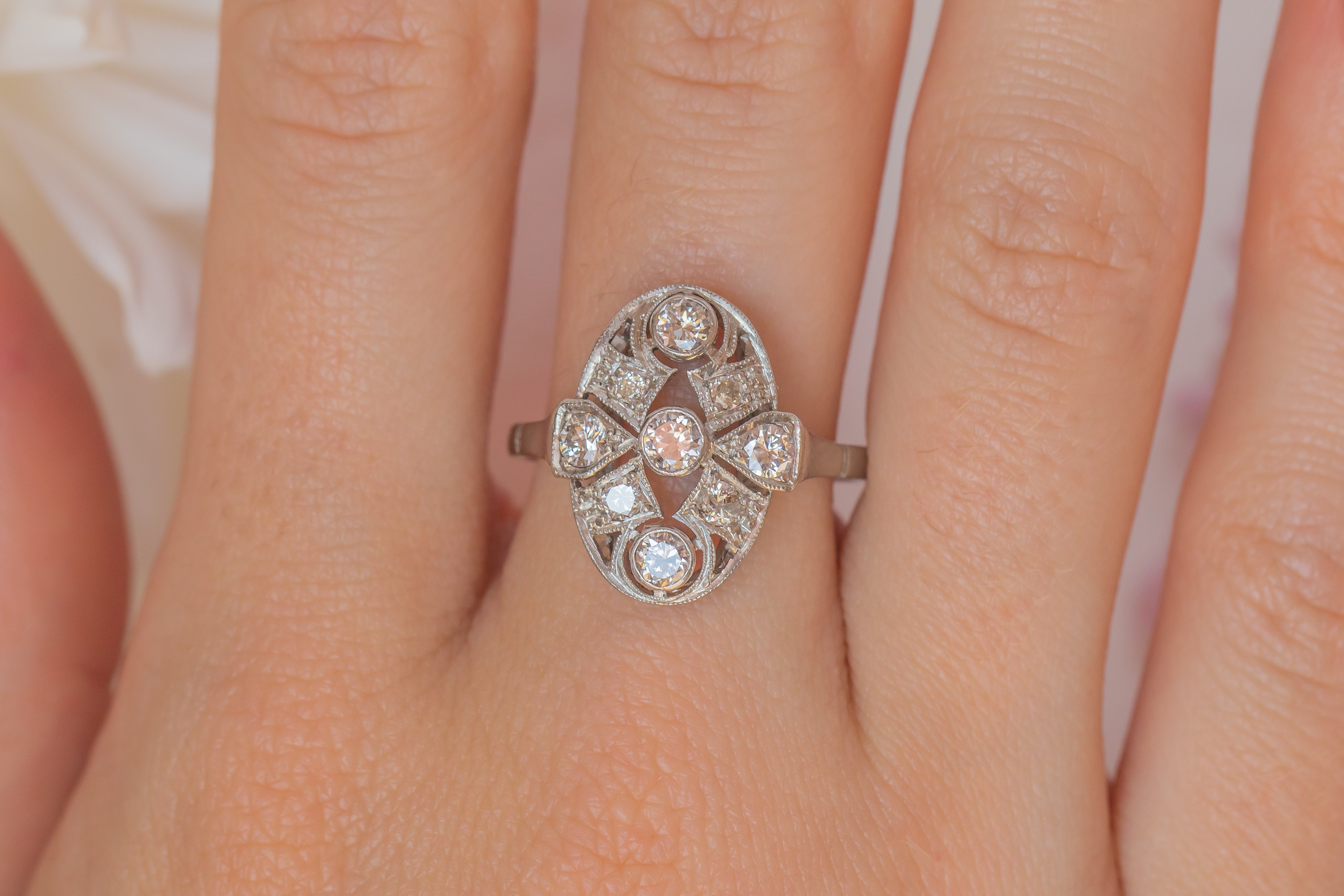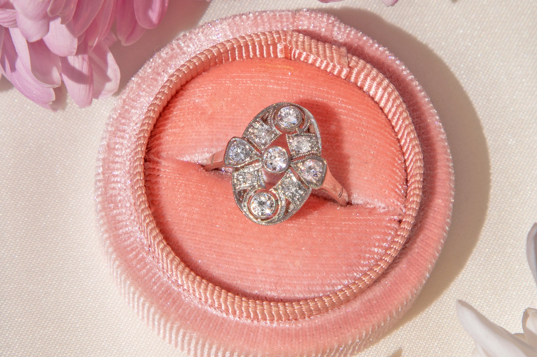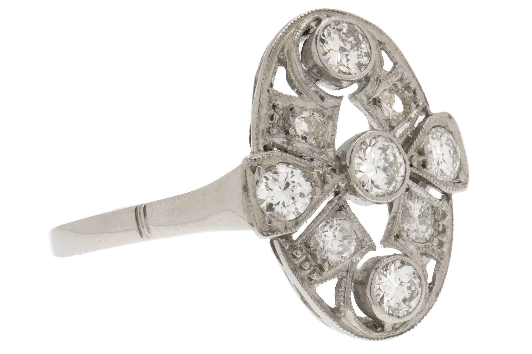 Art Deco Era Platinum Oval Diamond Cluster Ring - 0.36cts