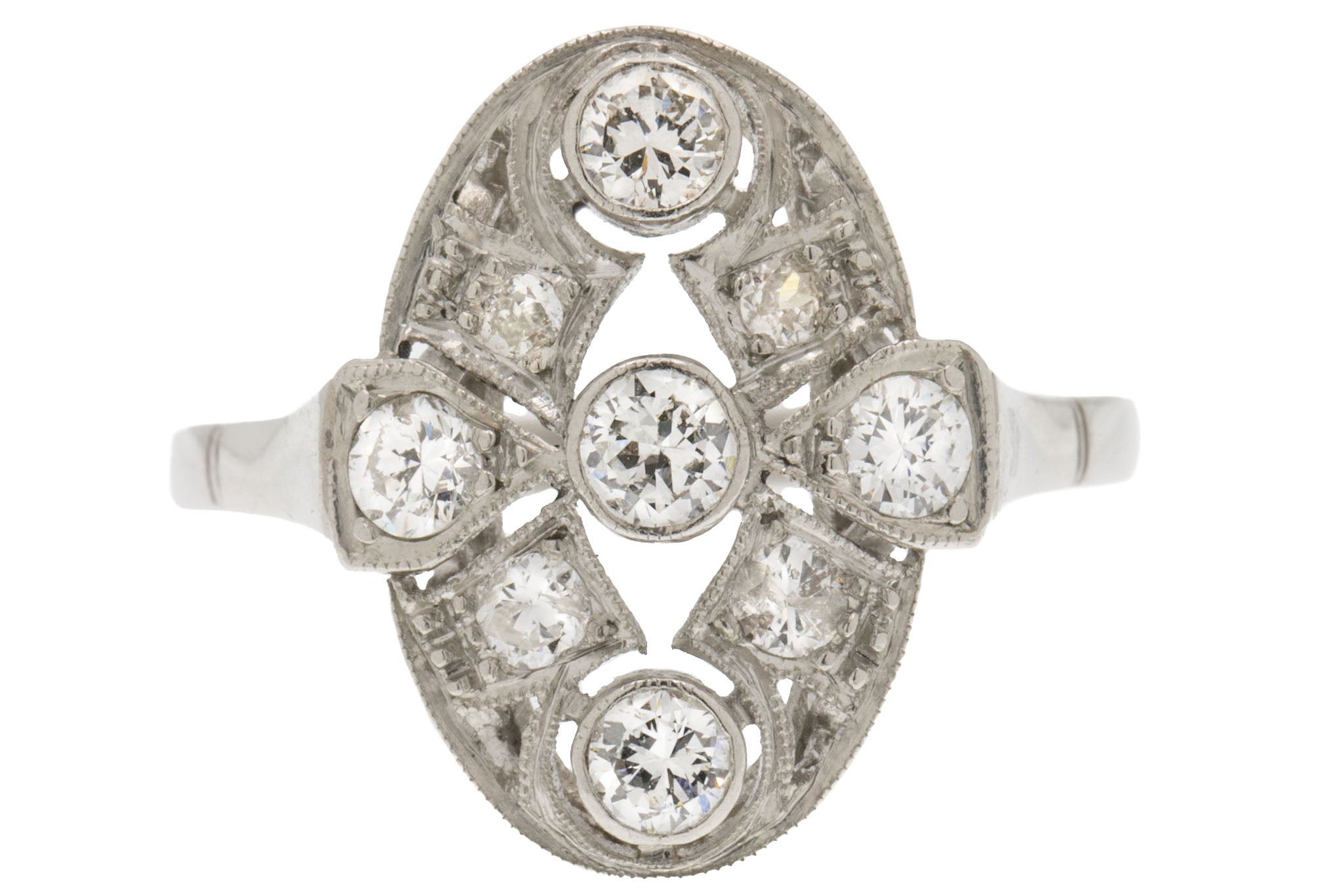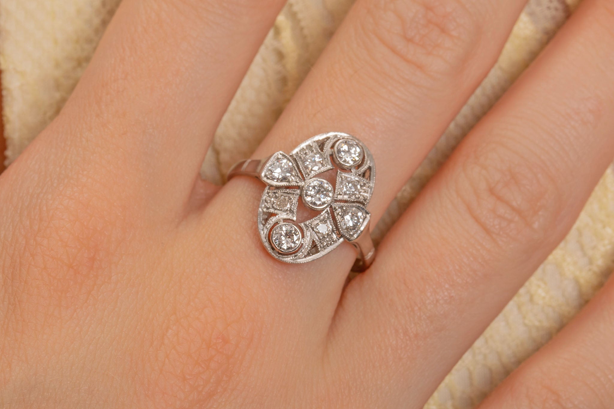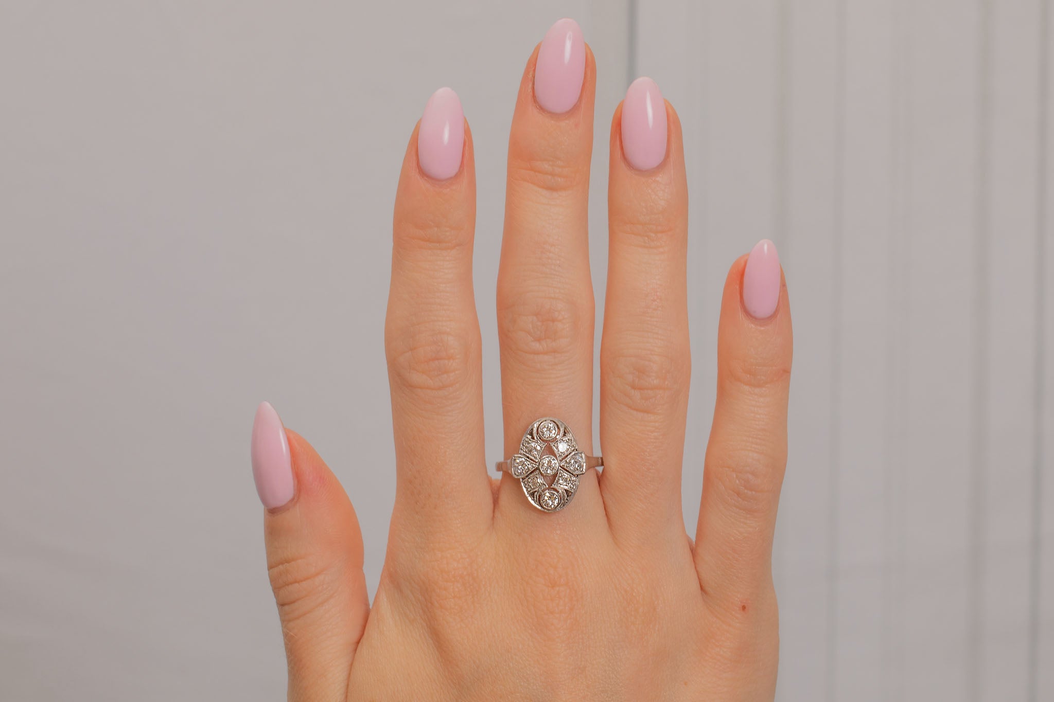 Art Deco Era Platinum Oval Diamond Cluster Ring - 0.36cts