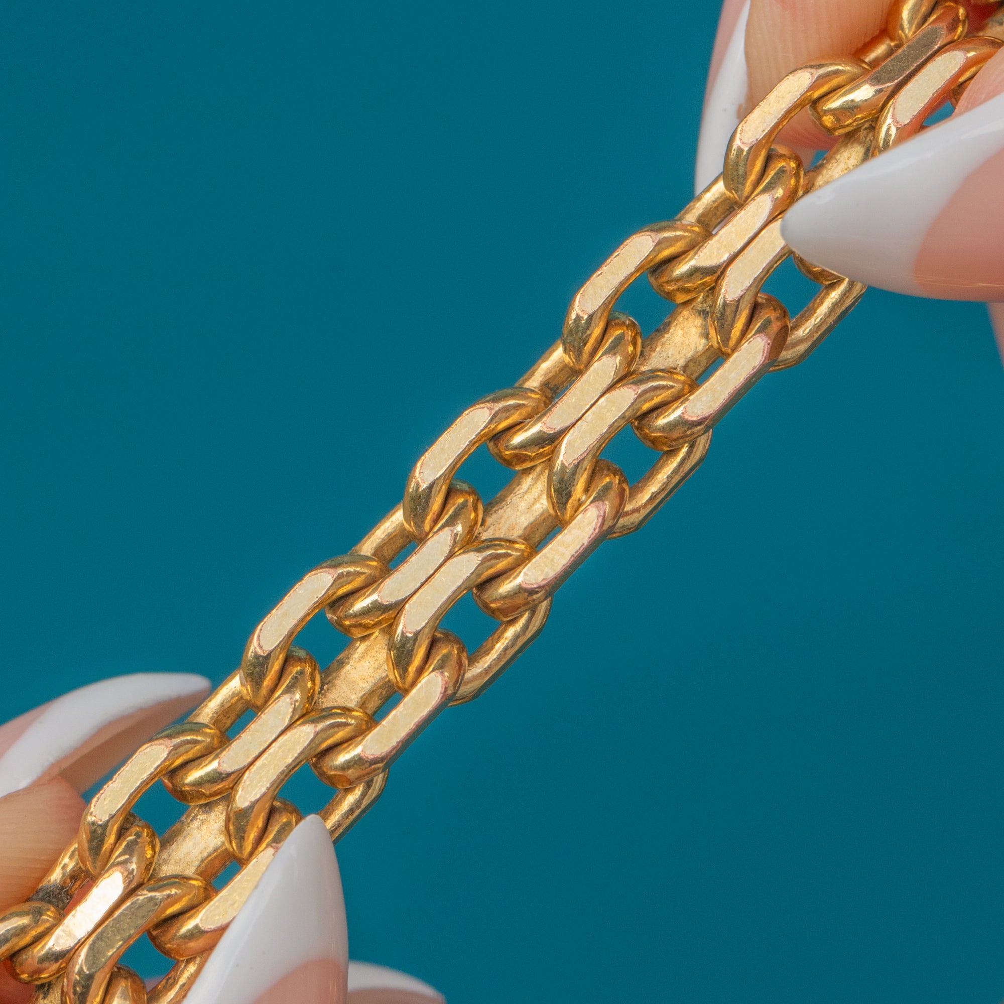 Heart padlock bracelets became popular in the early 20th century and continued to be a beloved jewellery style throughout the Mid-Century era. This example, with its solid curb links and large padlock, carries a timeless appeal that remains fashionable today.