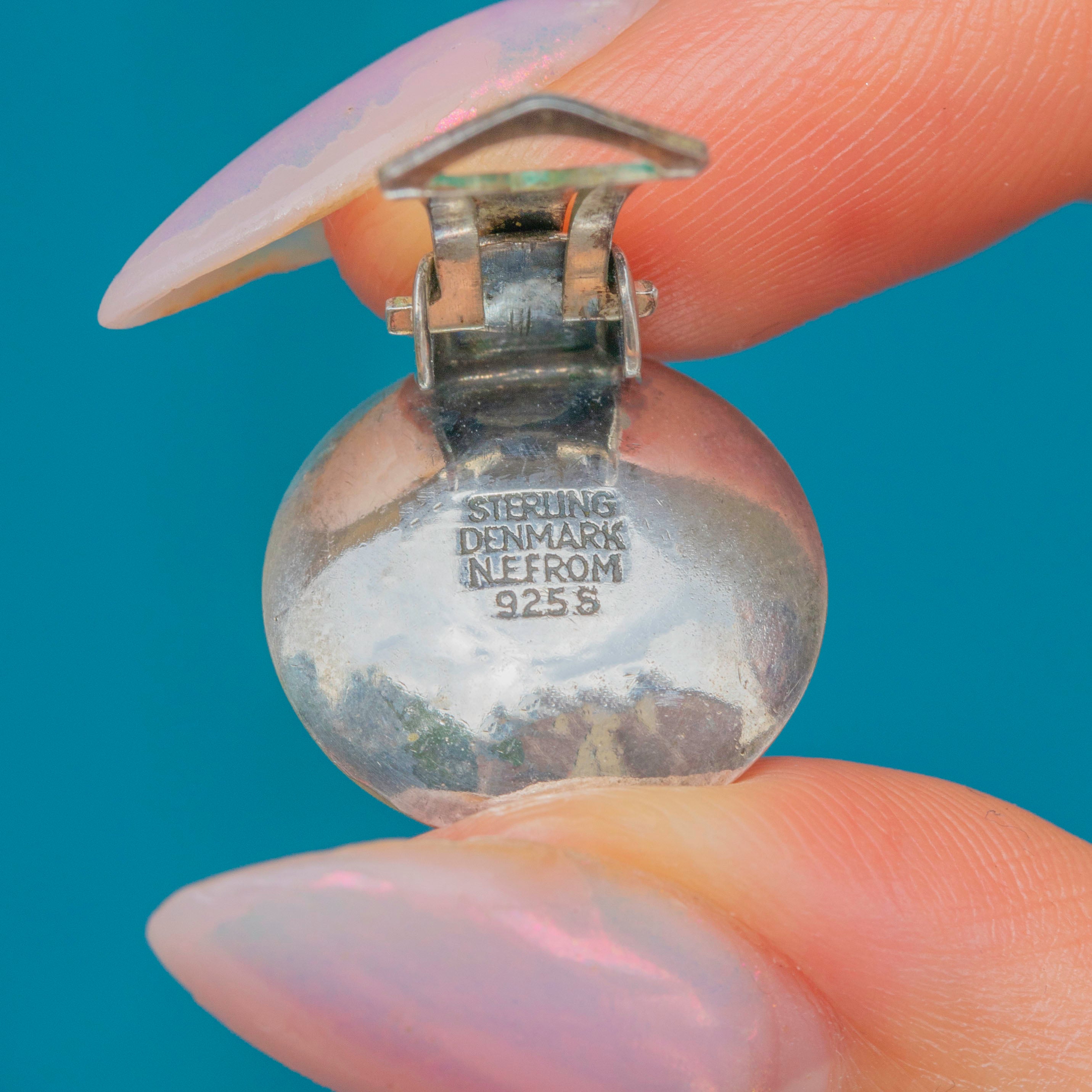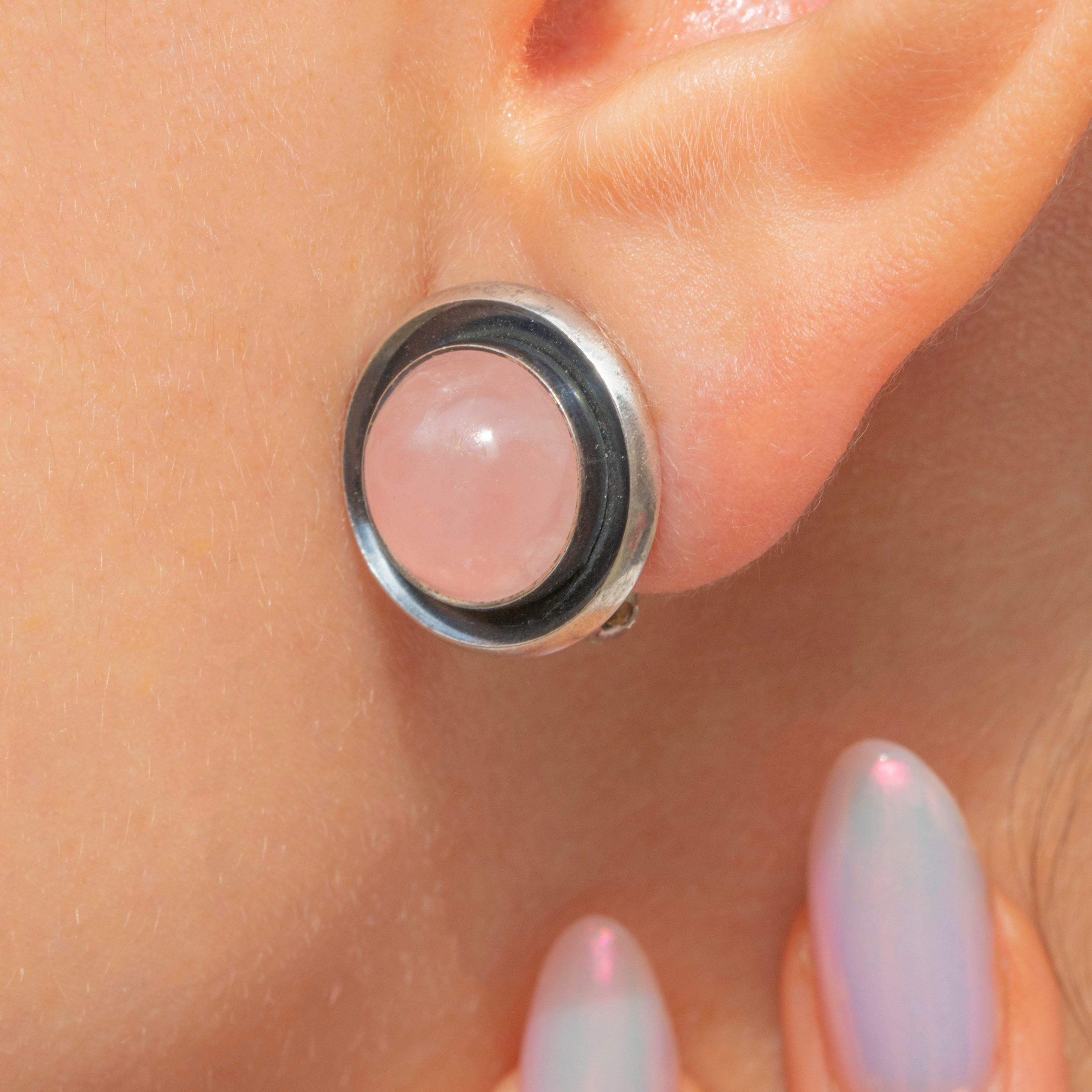 Danish Sterling Silver Rose Quartz Clip-On Earrings, Signed Niels Erik From