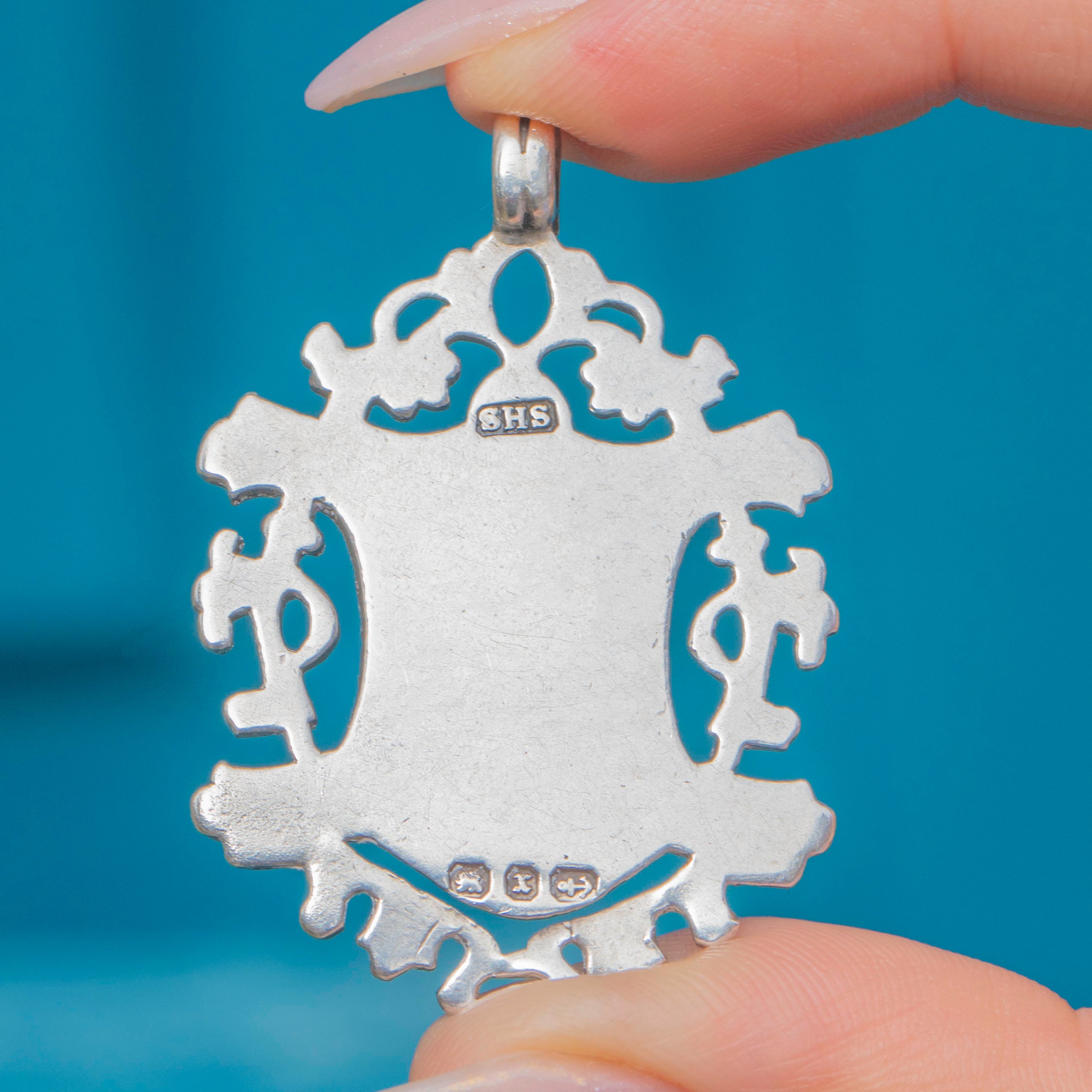 Decorative Antique Sterling Silver Medal Fob Pendant c.1897