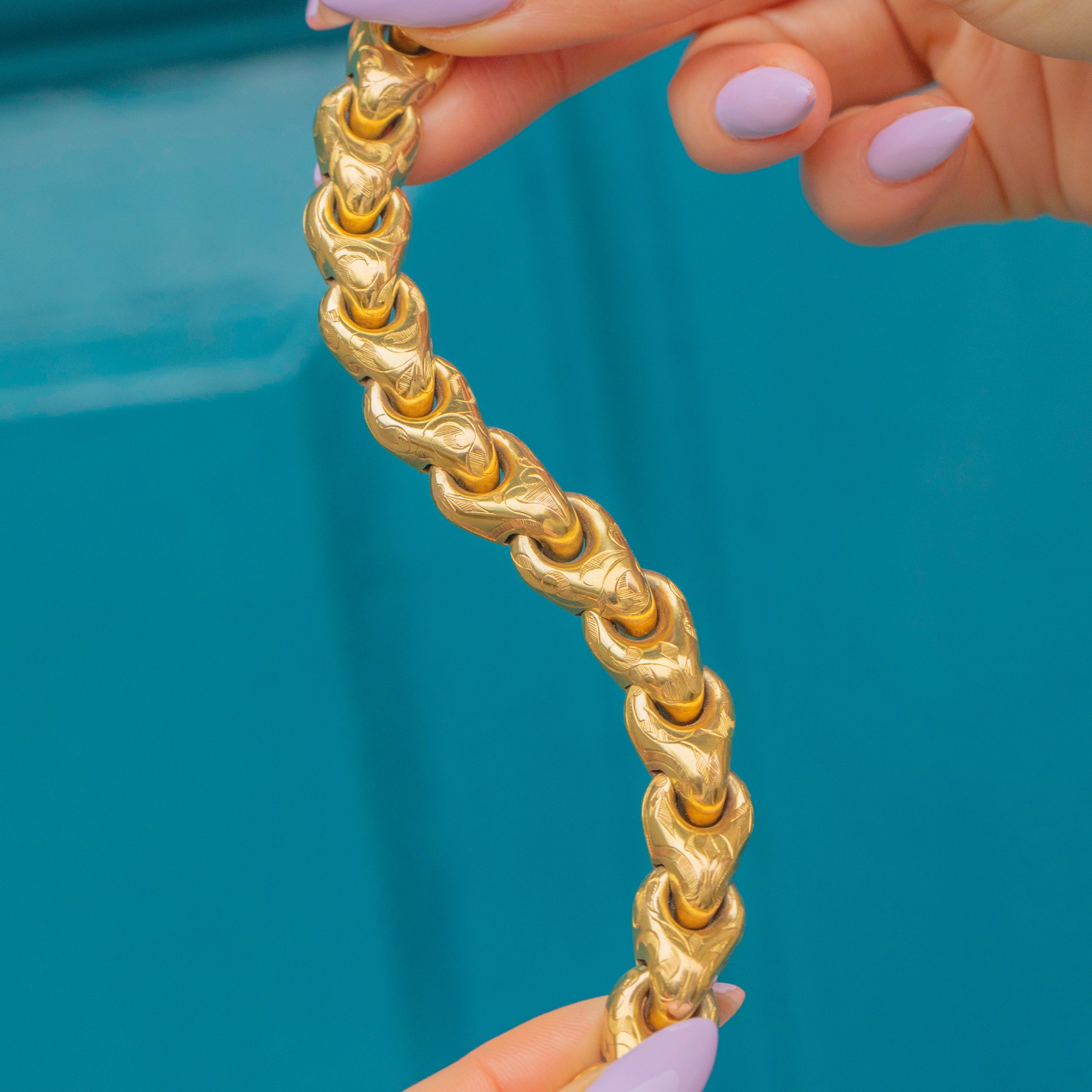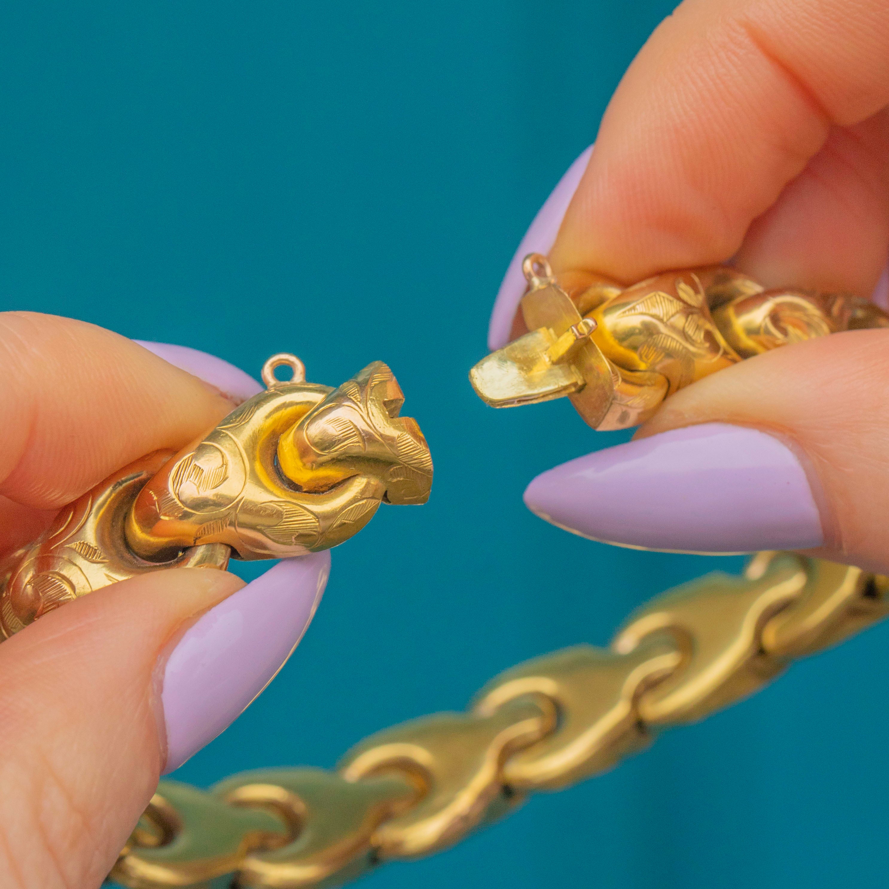 Not only are her engravings breathtaking, but the hue of her 18ct Gold boasts a rich buttery tone that exudes prestige. Her unique link style sets her apart from the crowd, rendering her a truly exceptional piece to add to your antique jewellery collection!