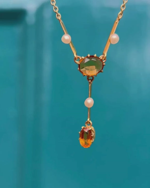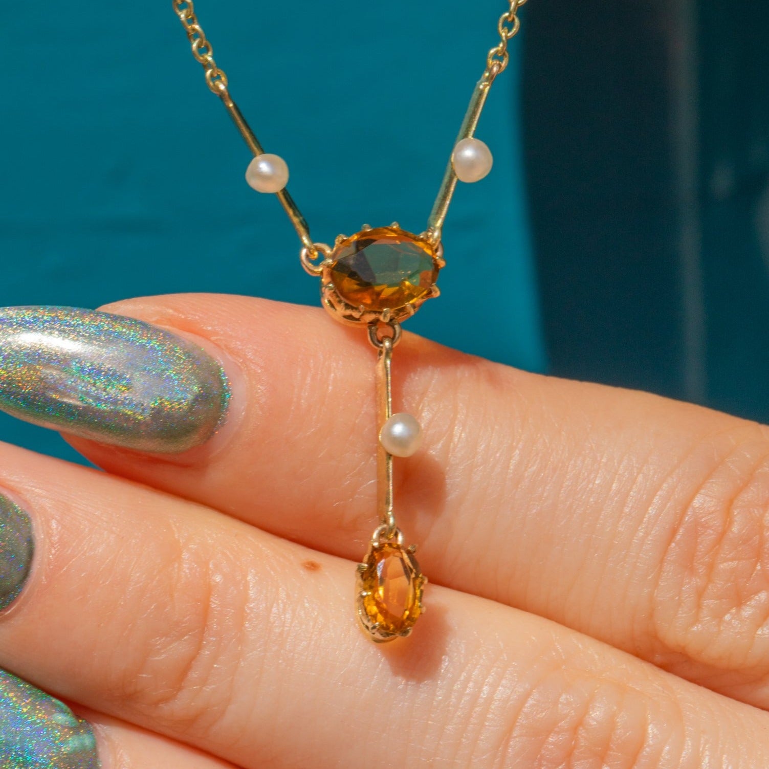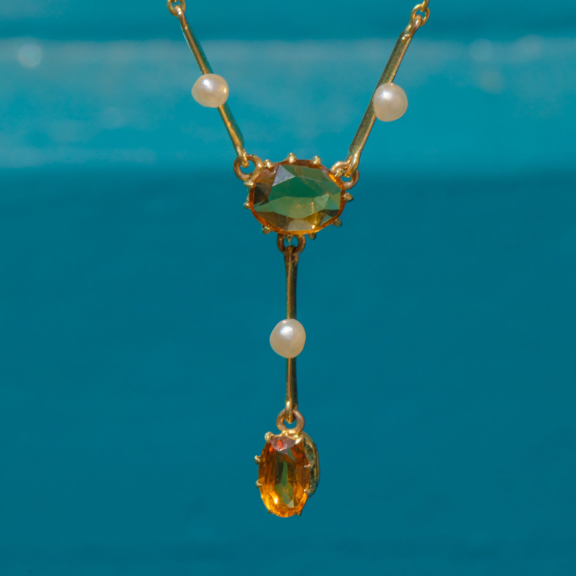 Edwardian 18ct Gold Citrine Pearl Drop Necklace