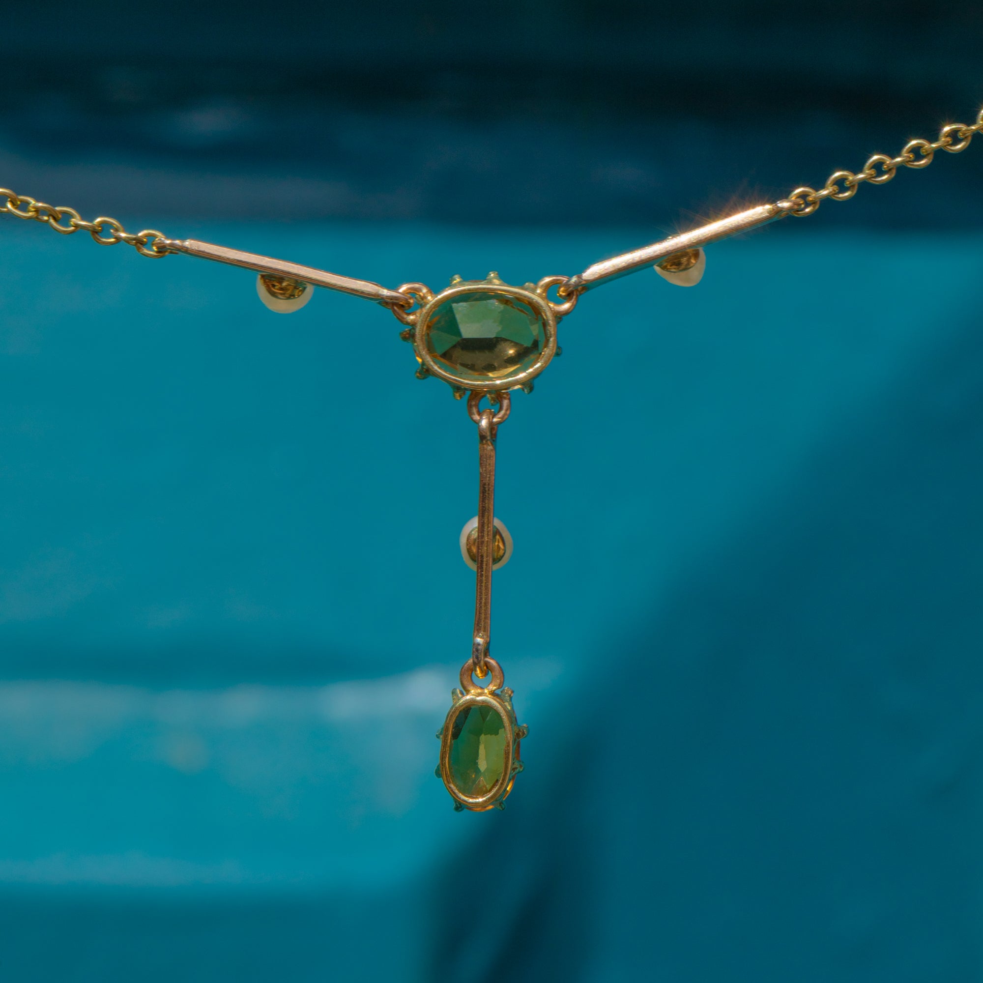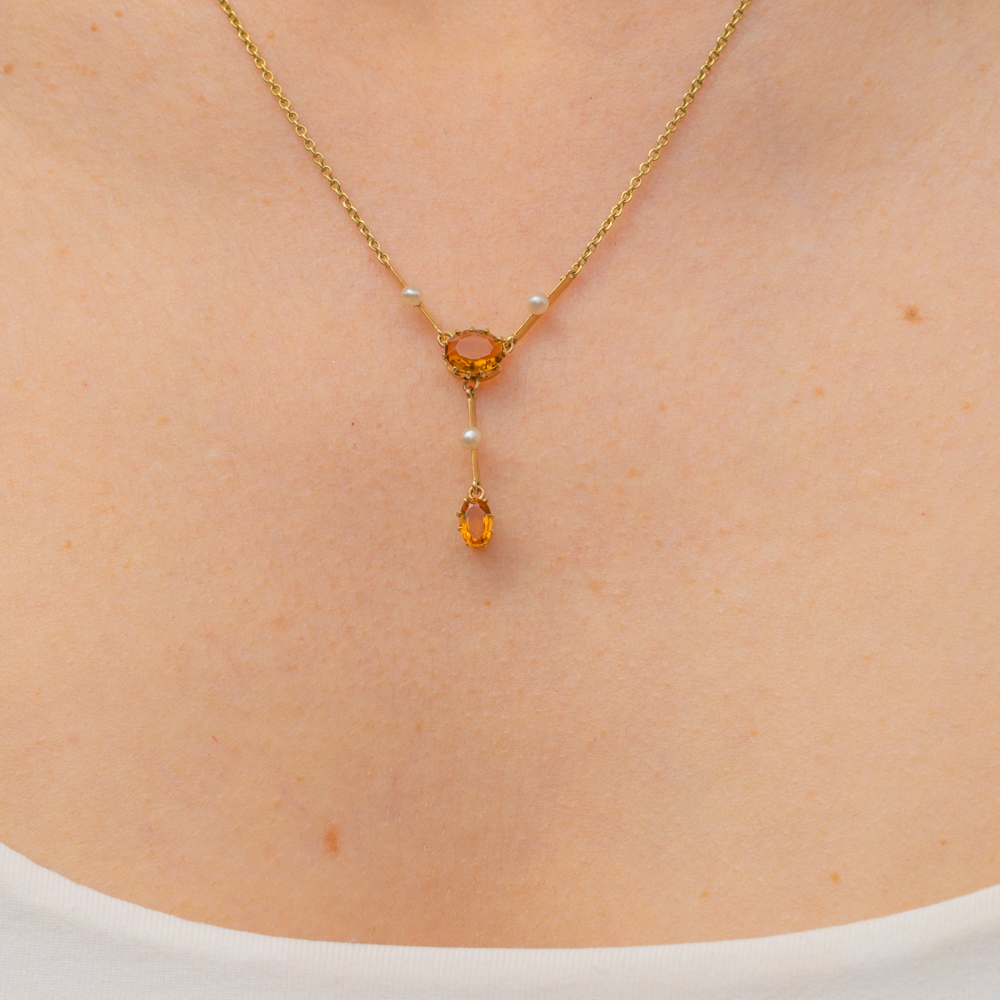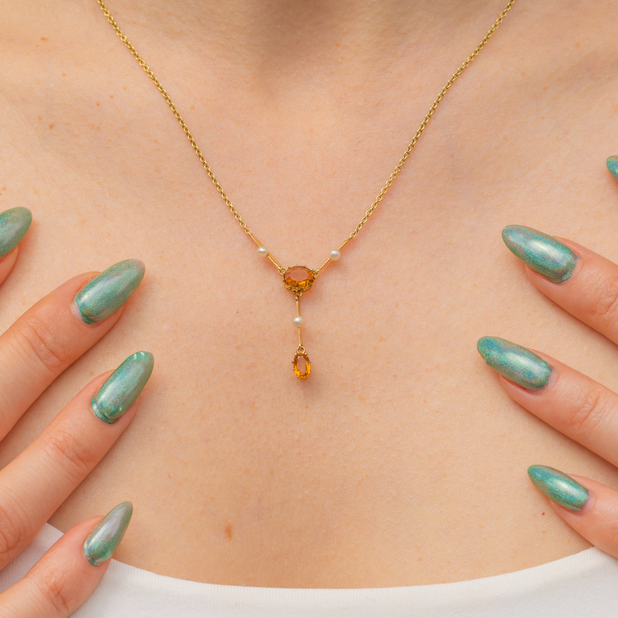 Edwardian 18ct Gold Citrine Pearl Drop Necklace