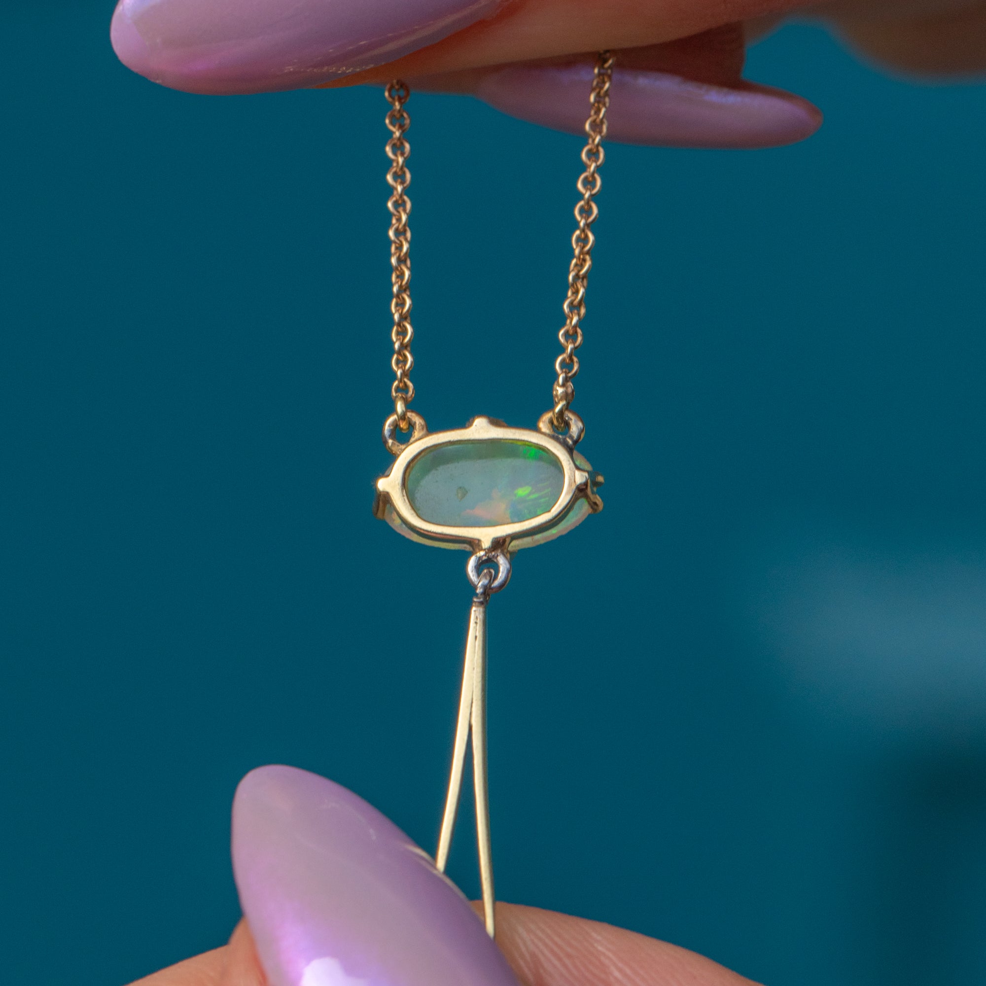 Edwardian 18ct Gold Opal Diamond Drop Necklace, 1.25ct Natural Solid Opal