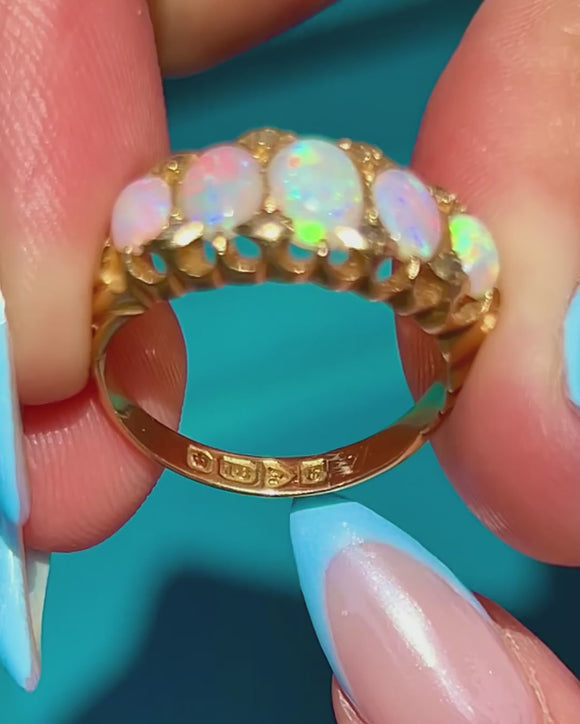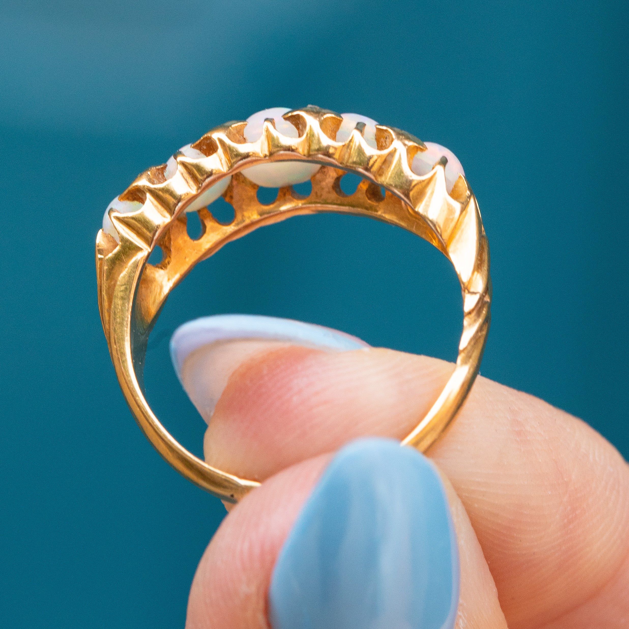 Edwardian 18ct Gold Opal Five Stone Ring, Diamond Spacers
