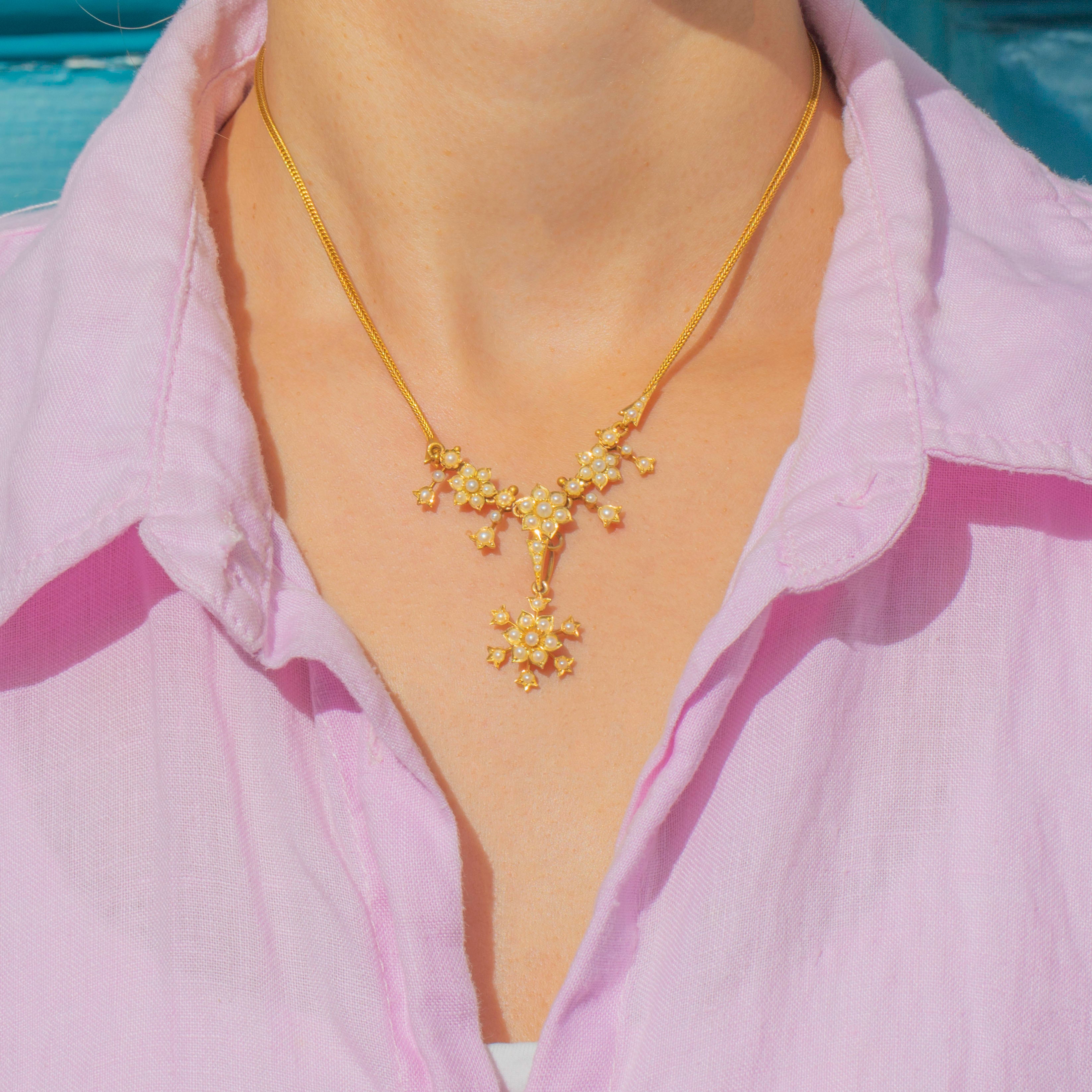 Edwardian 18ct Gold Pearl Flower Necklace with Detachable Pendant