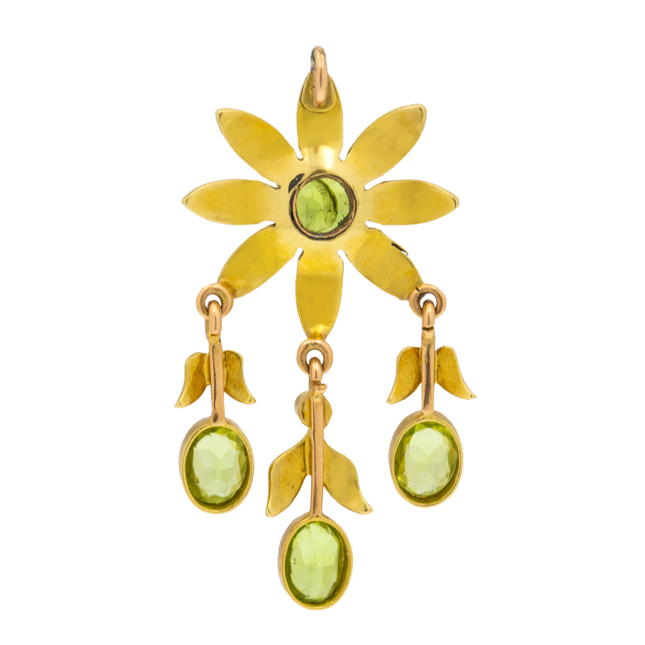 Edwardian 18ct Gold Peridot Pearl Flower Drop Pendant, 2.60ct