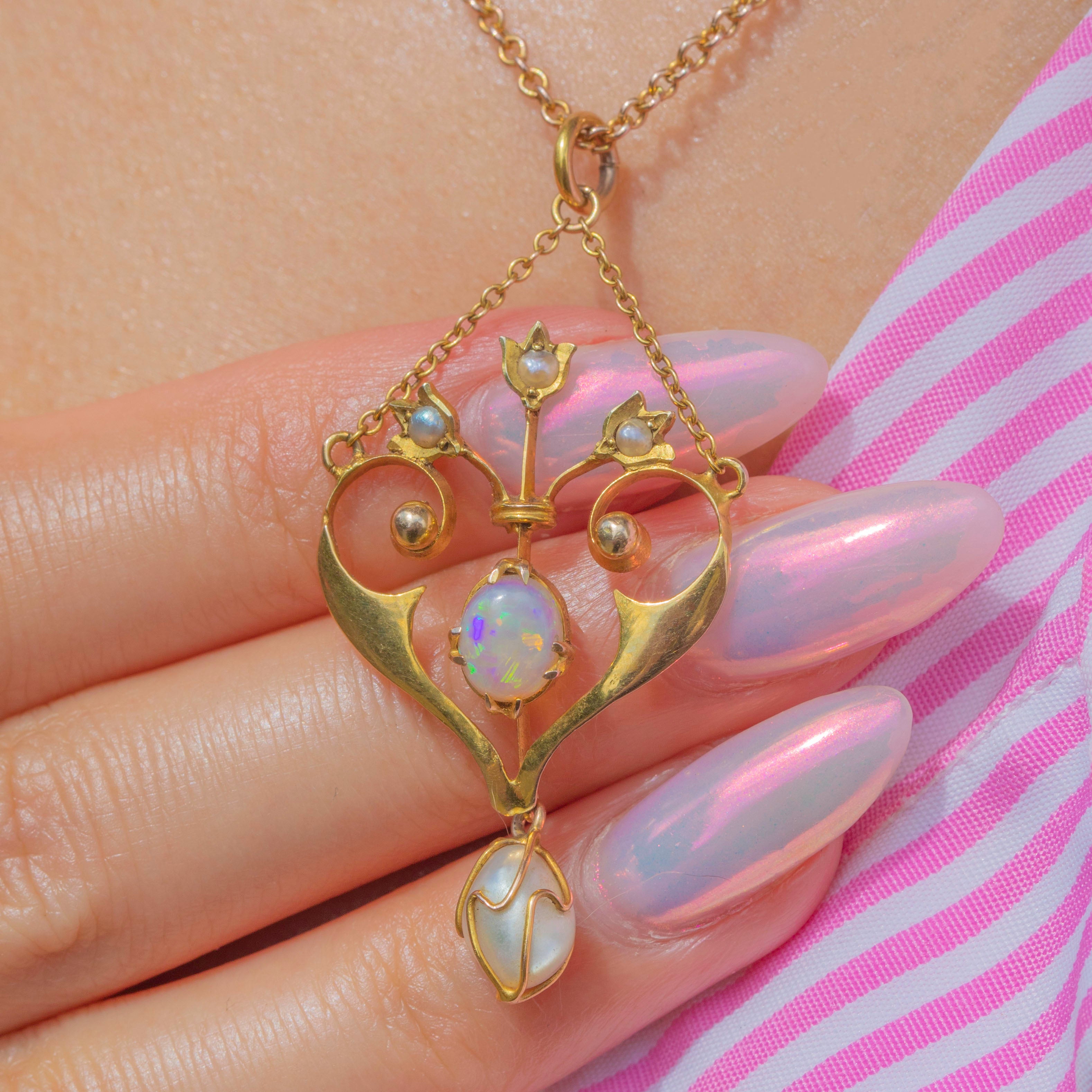 Edwardian 9ct Gold Opal Pearl Lavalier Pendant