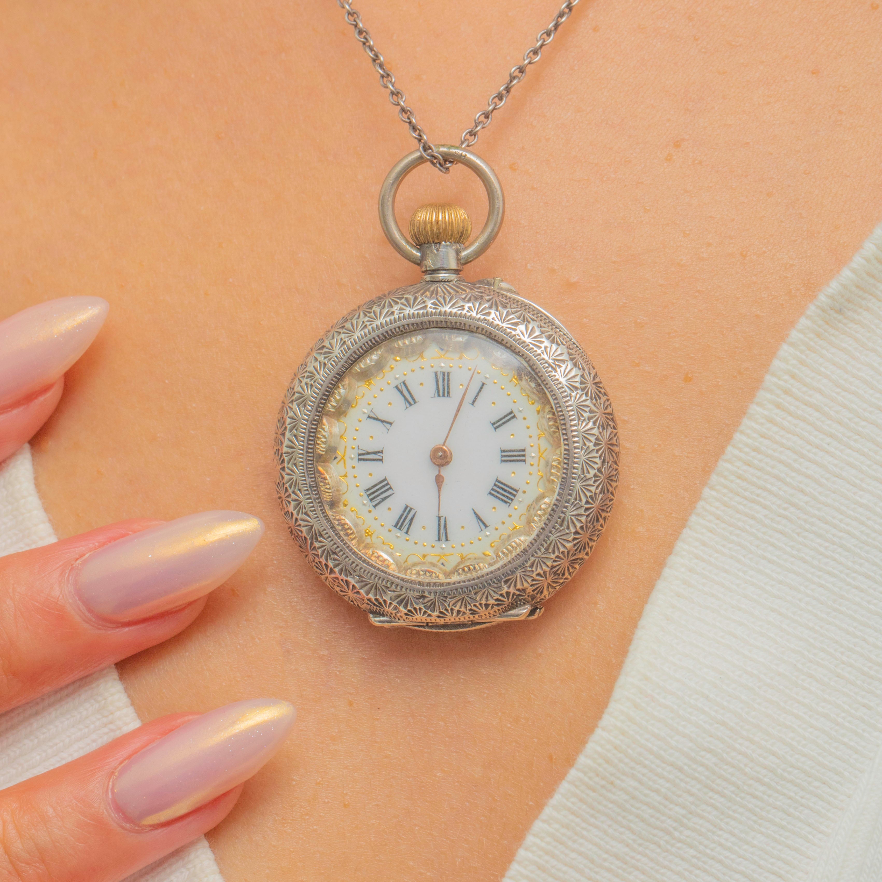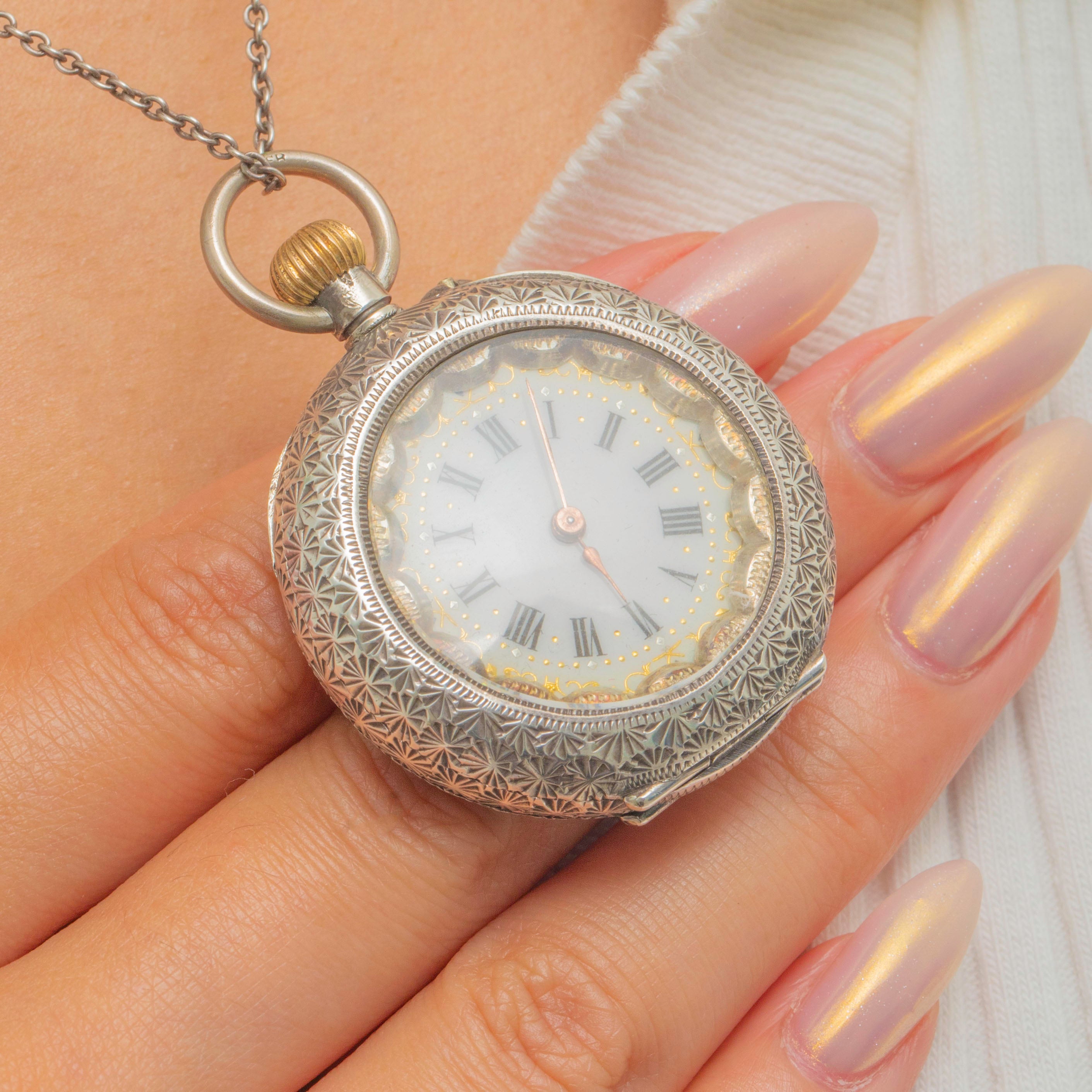 Compact and refined, this watch opens and closes smoothly, winds correctly, and ticks as it should — a beautiful antique timepiece with both style and functionality.