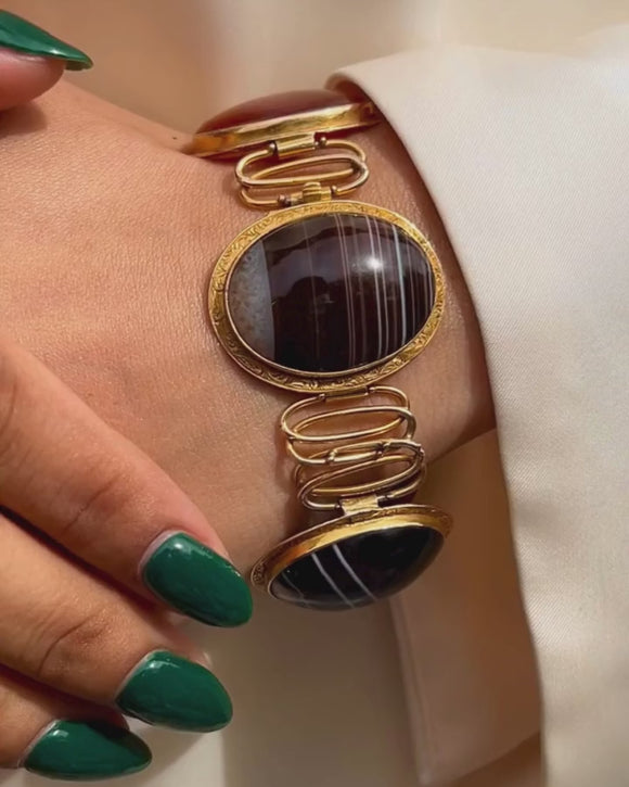 With chunky links that effortlessly caress the shape of your wrist, this antique Gold bracelet was made to bring drama. This Georgian Agate bracelet is a timeless treasure that will be cherished for generations to come.