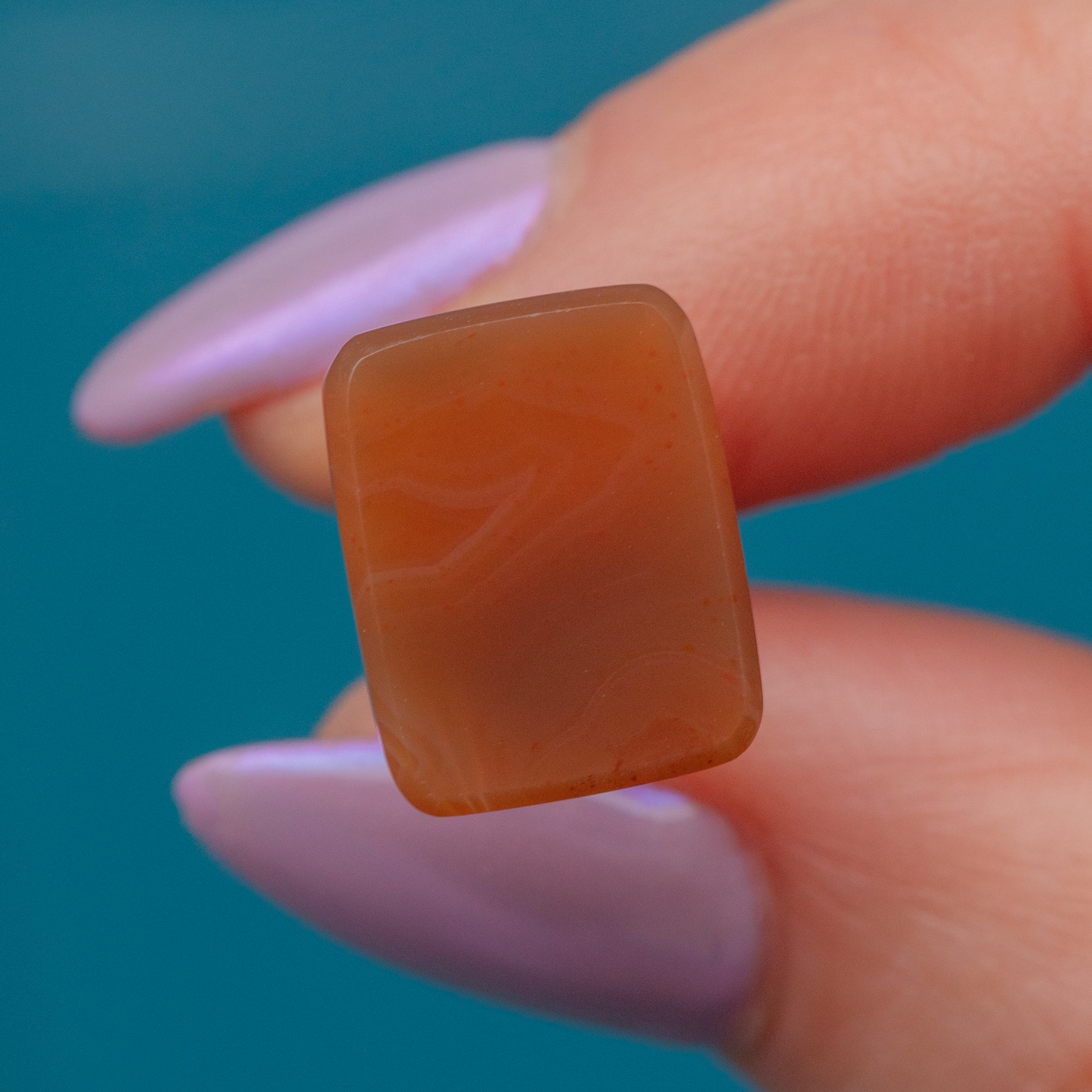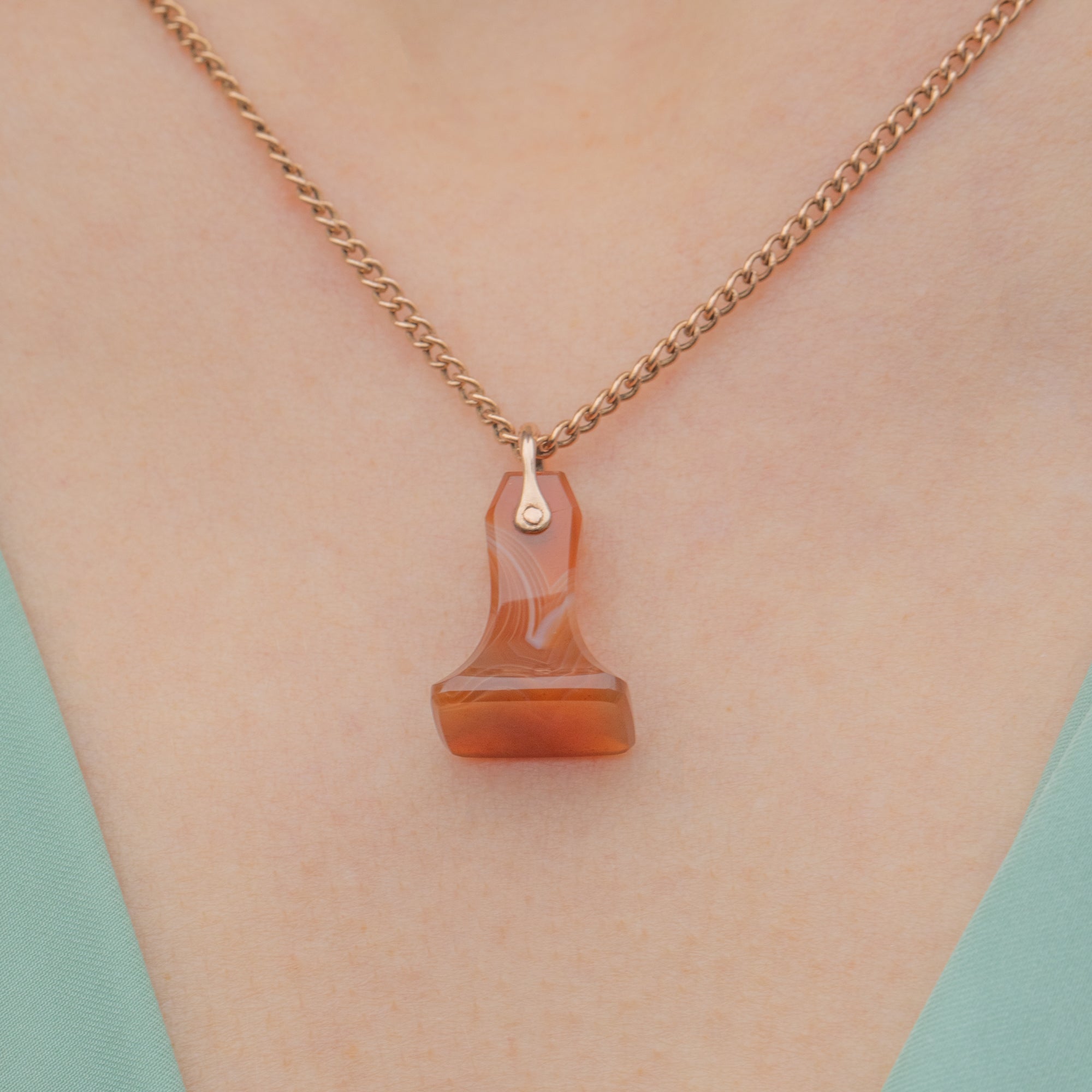 The exquisitely hand-cut Agate has a gorgeous, rich burnt amber hue with wonderful bands running throughout the stone, akin to the marbled surface of Jupiter.
