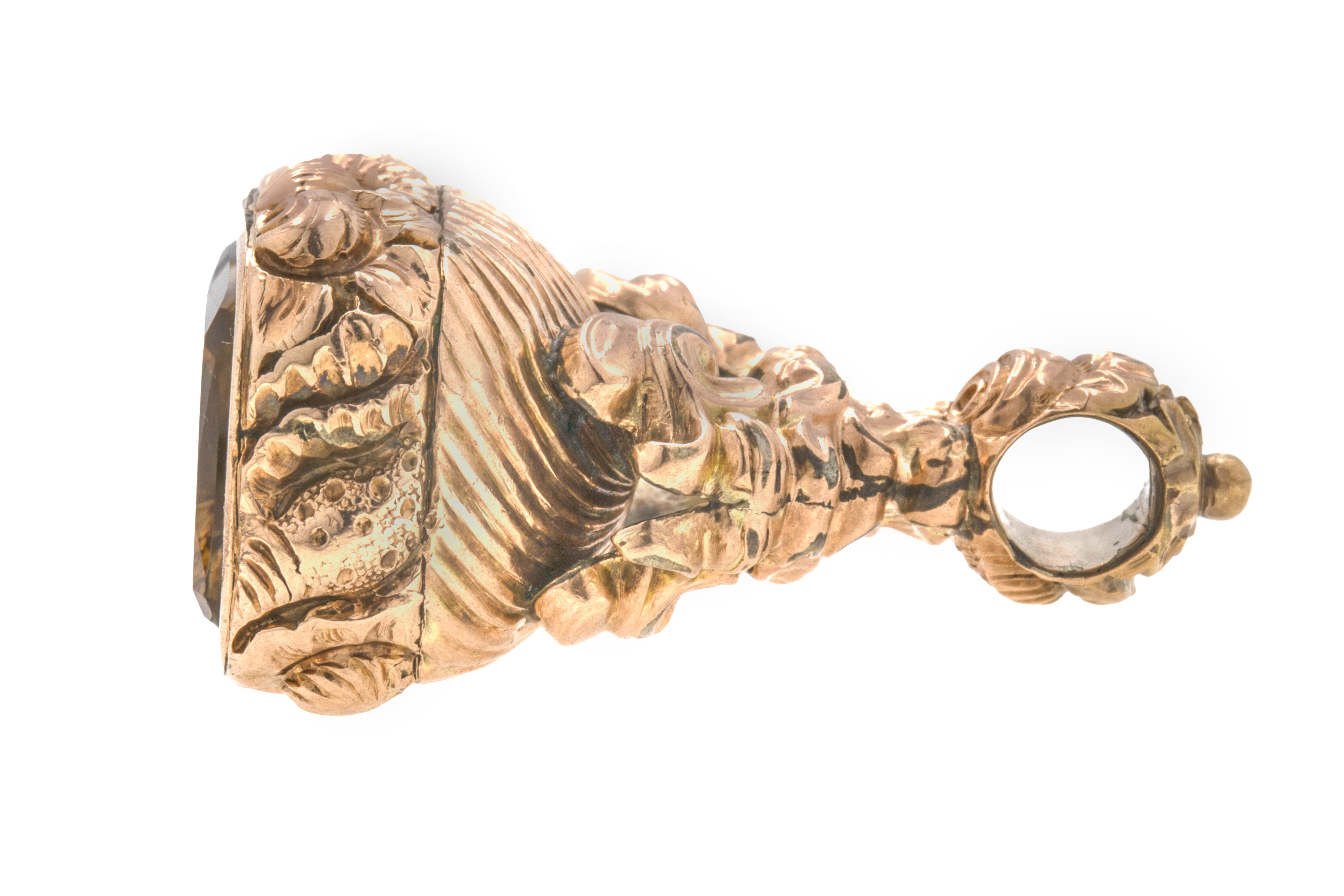 Georgian 9ct Gold Cased Citrine Fob Pendant, "MD" Intaglio