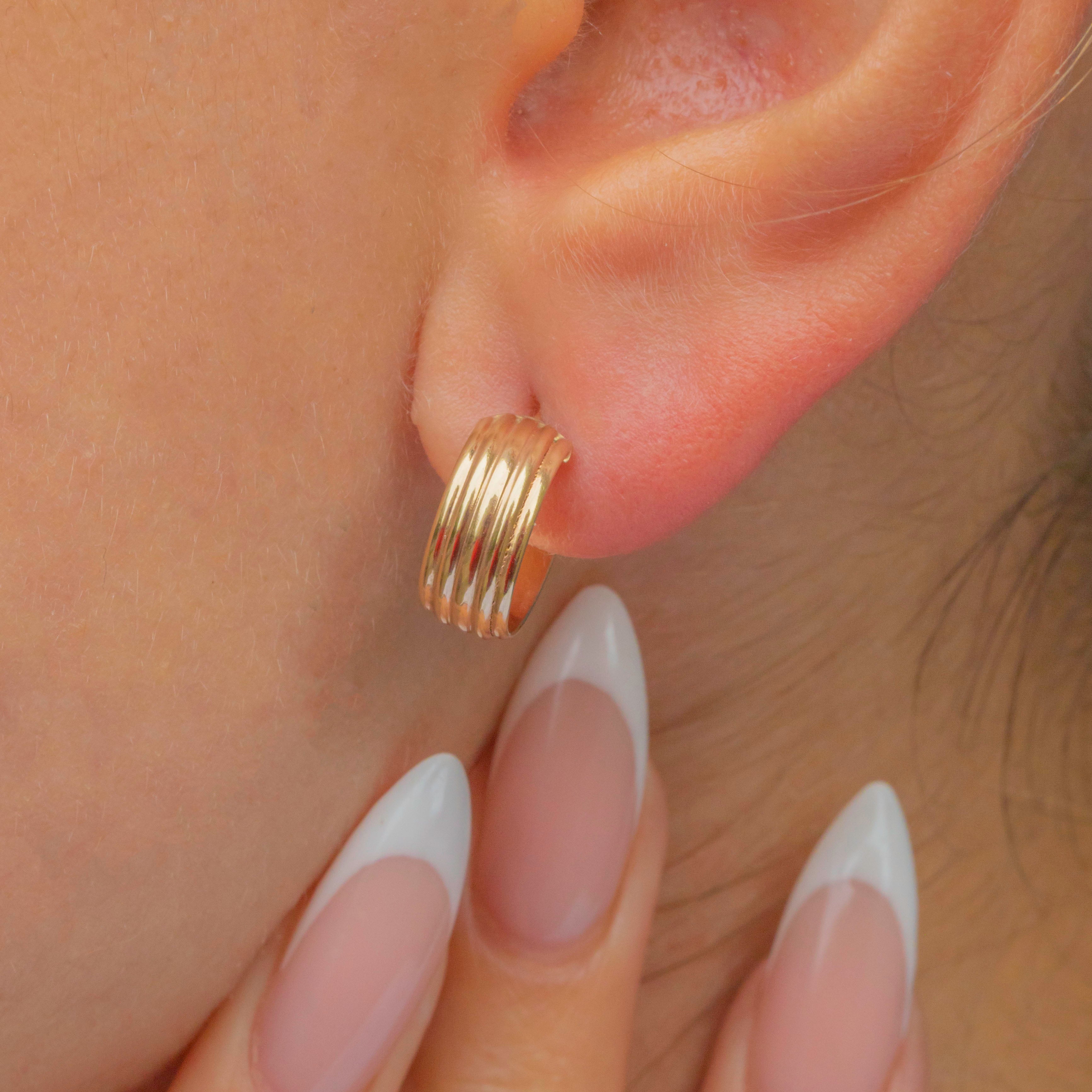 These stylish Mid-Century hoop earrings are crafted in 9ct Gold, bringing a warm and timeless elegance to your jewellery collection. Their bold ribbed design gives them a striking texture, while their petite proportions make them versatile for both everyday wear and more formal occasions. A true vintage treasure, these earrings embody the sleek minimalism of the mid-20th century.
