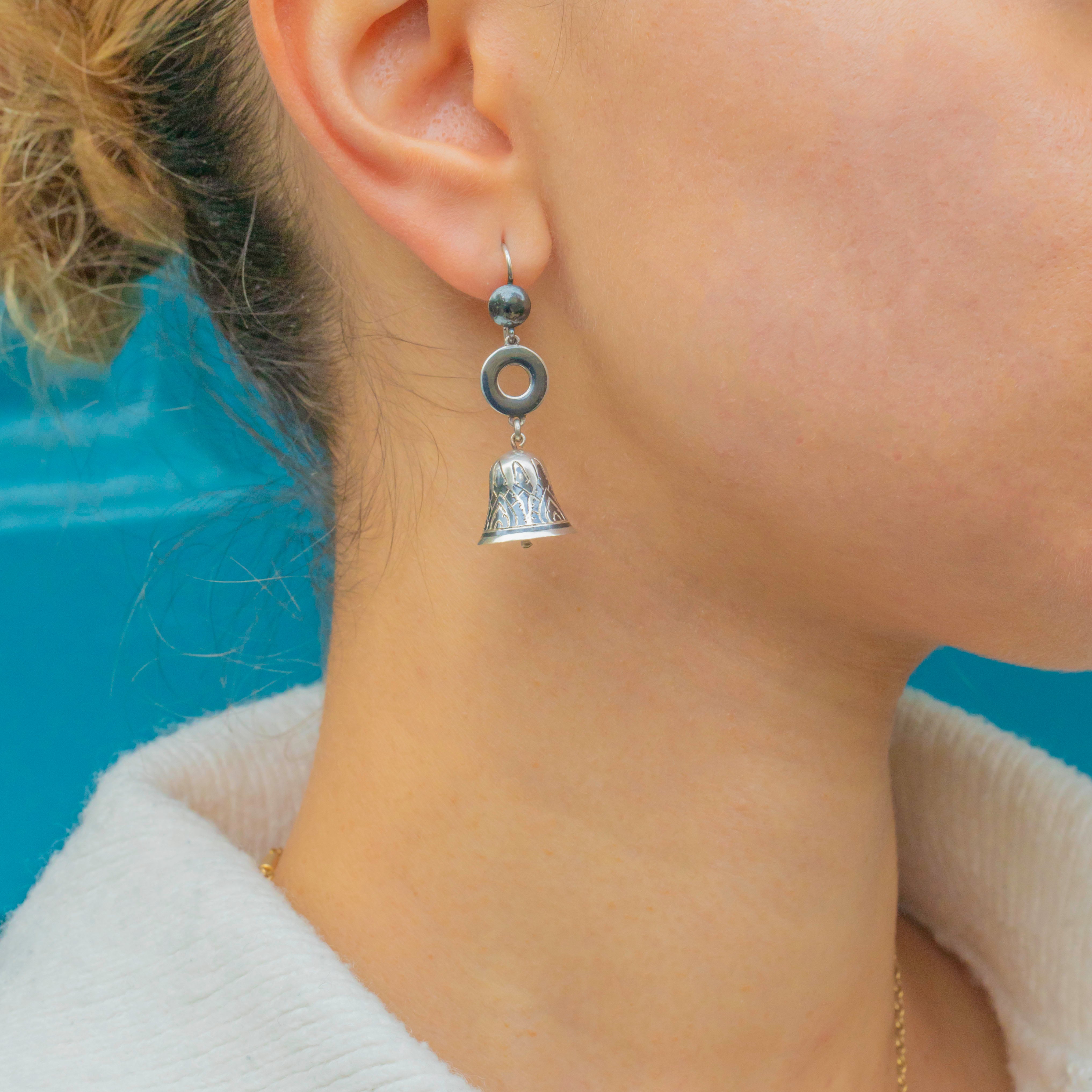 Sterling Silver Niello Bell Earrings