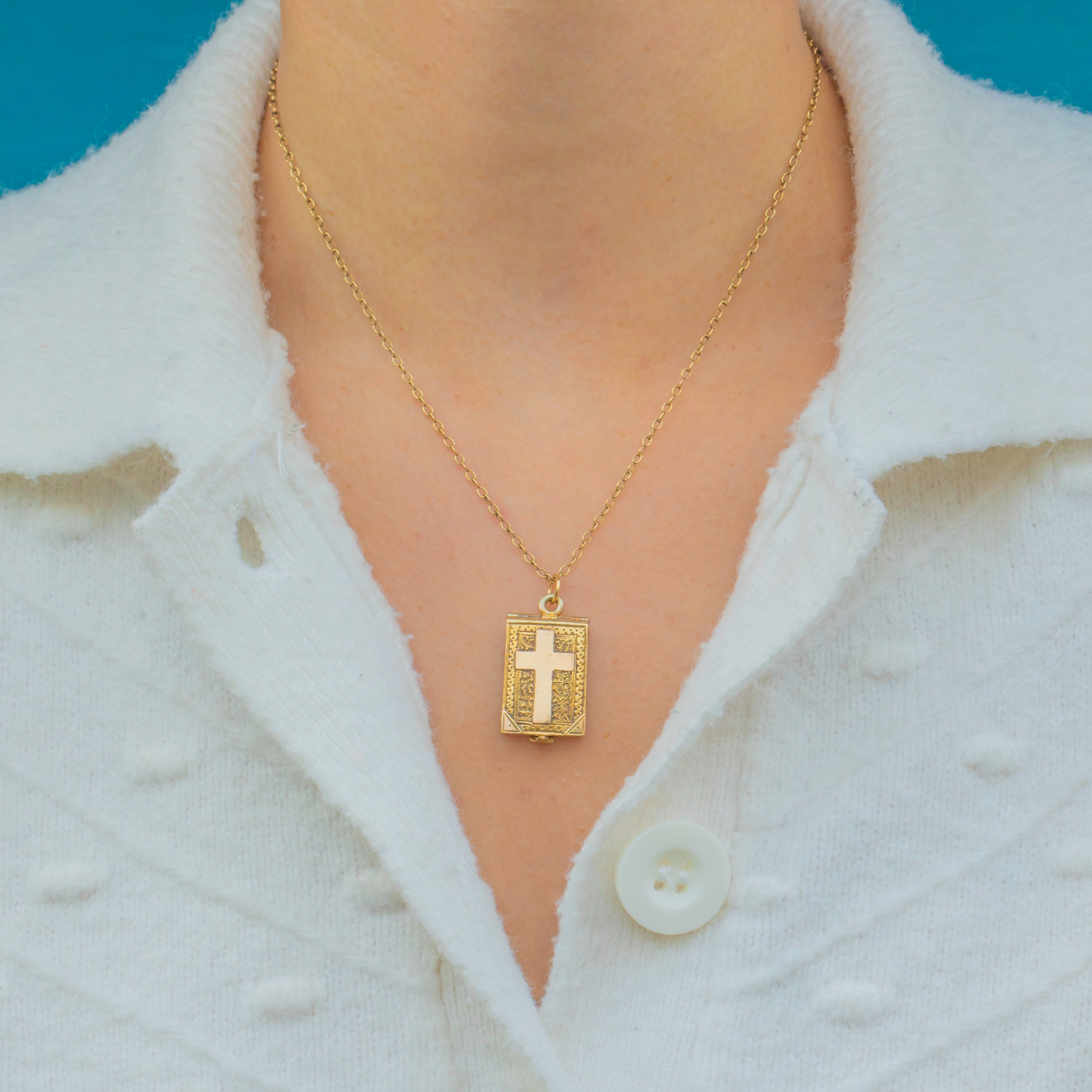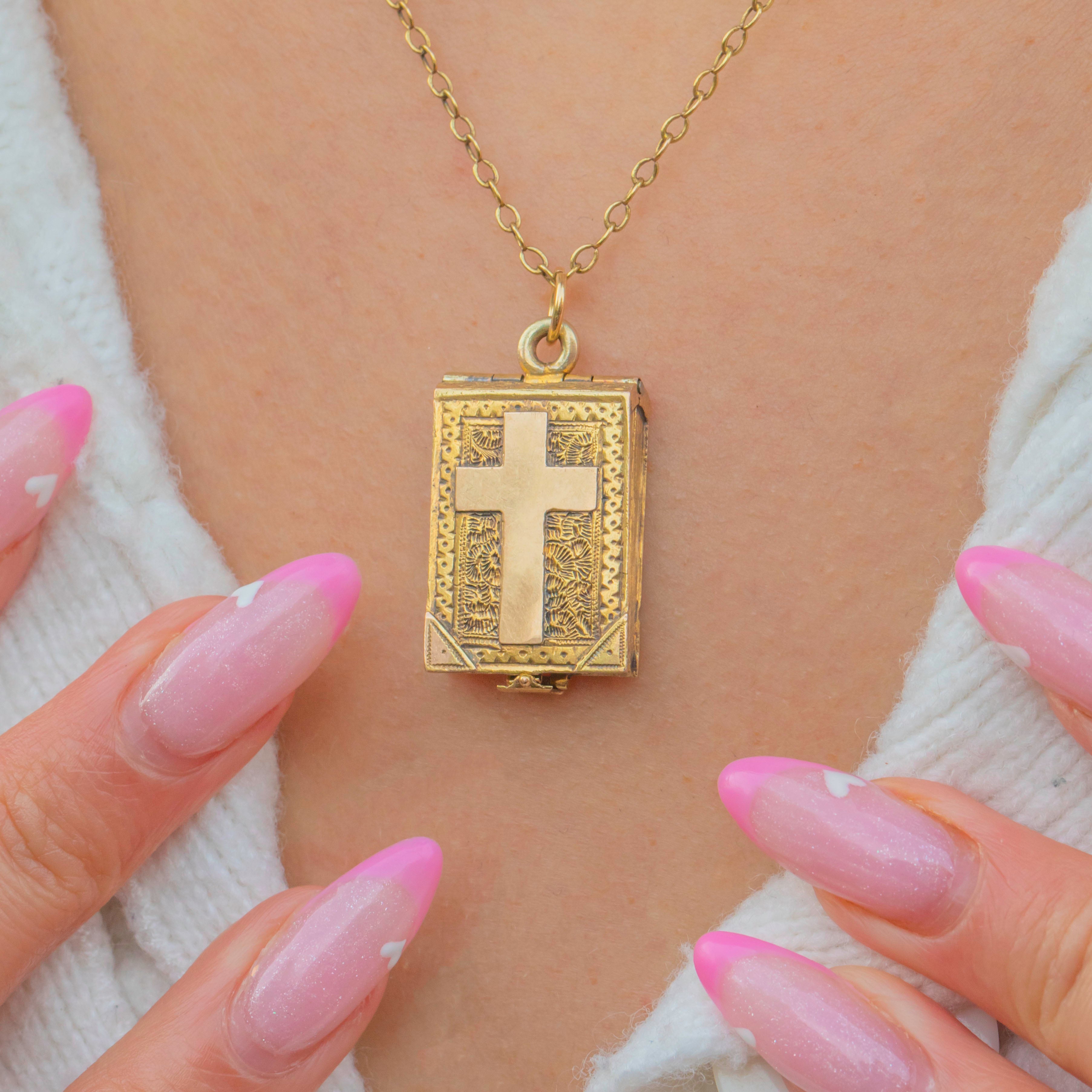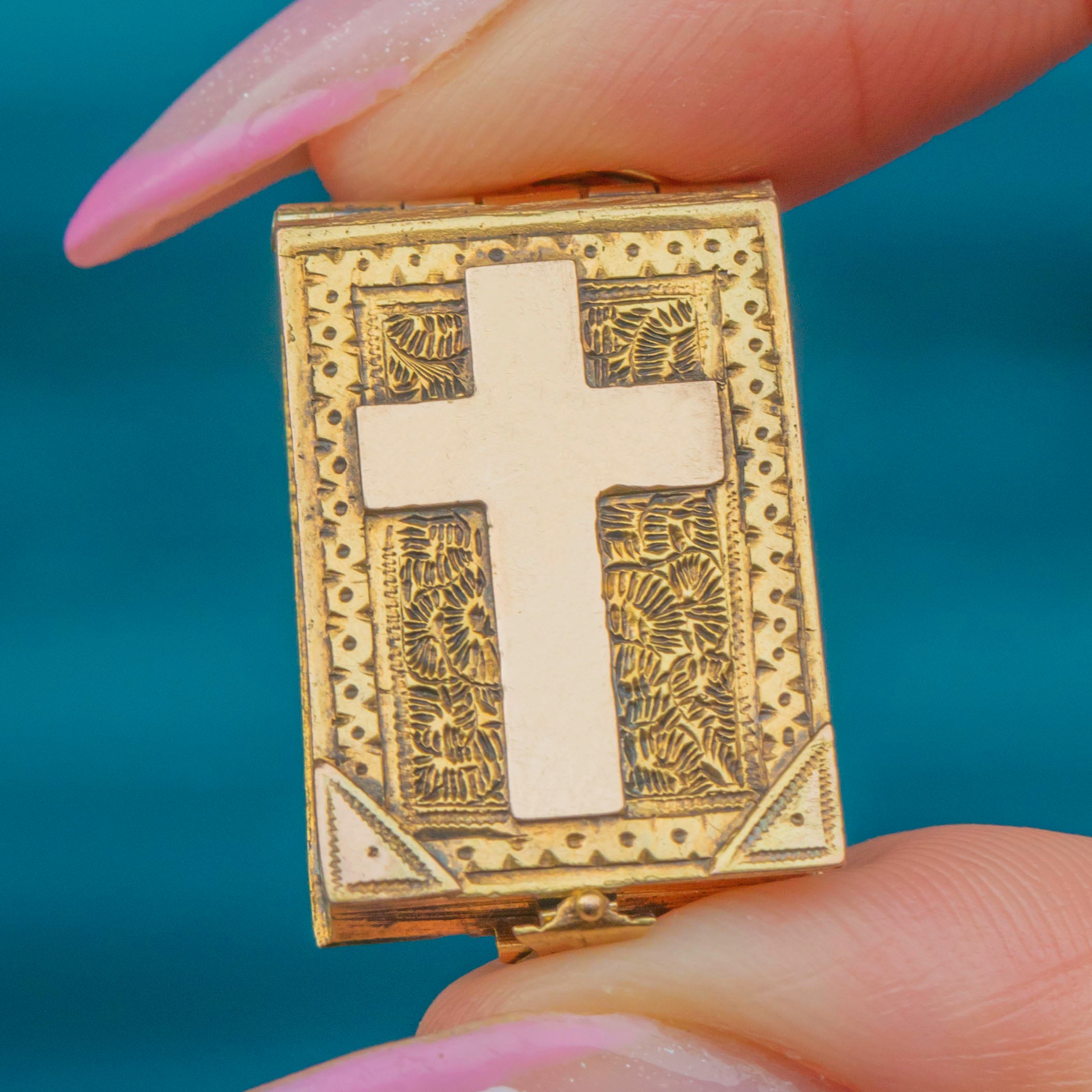 For any bookworms out there, this Victorian 15ct Gold "book" locket is the dream piece for you! Featuring intricate engravings throughout, she has a sleek cross motif in her centre and enough texture to keep you intrigued for a lifetime.