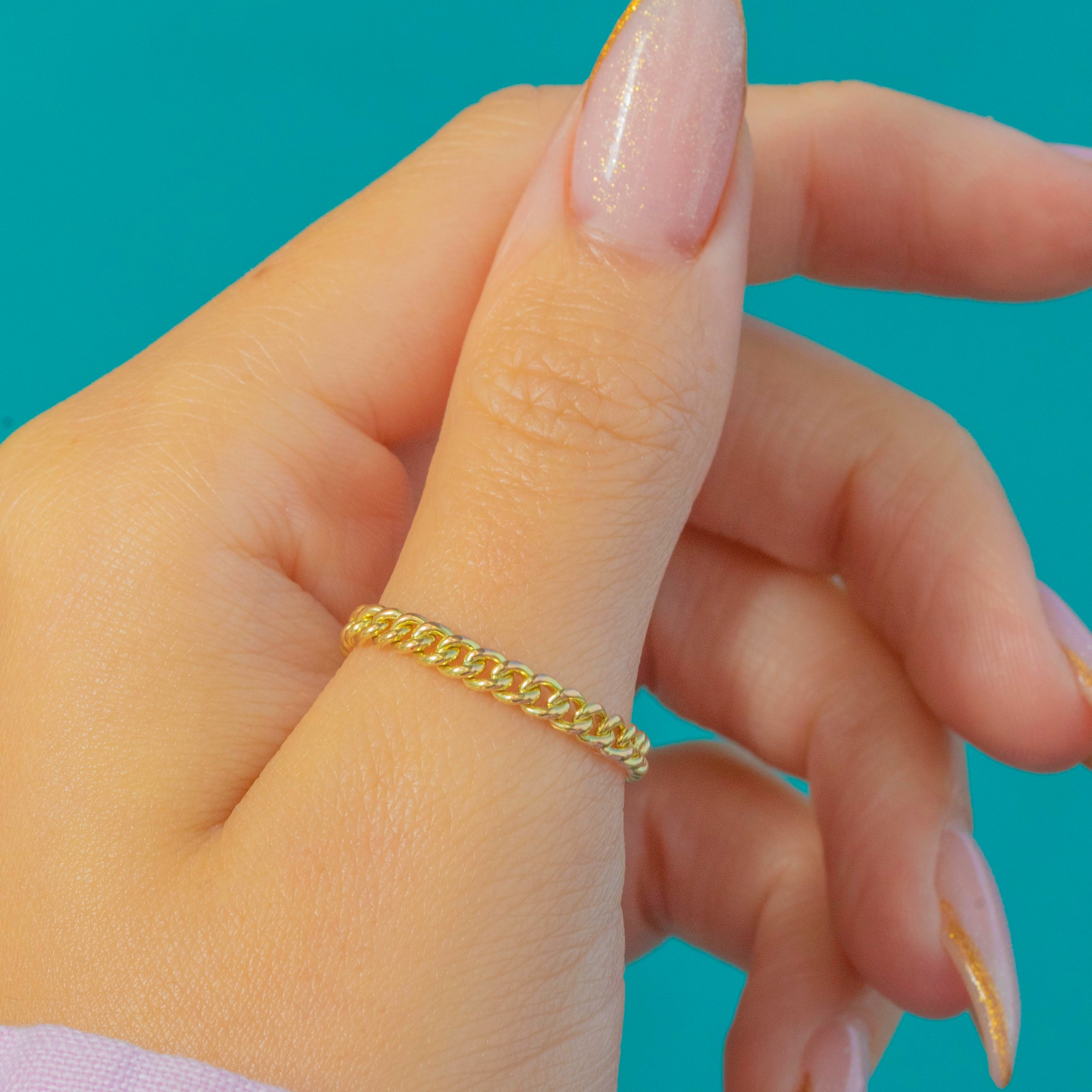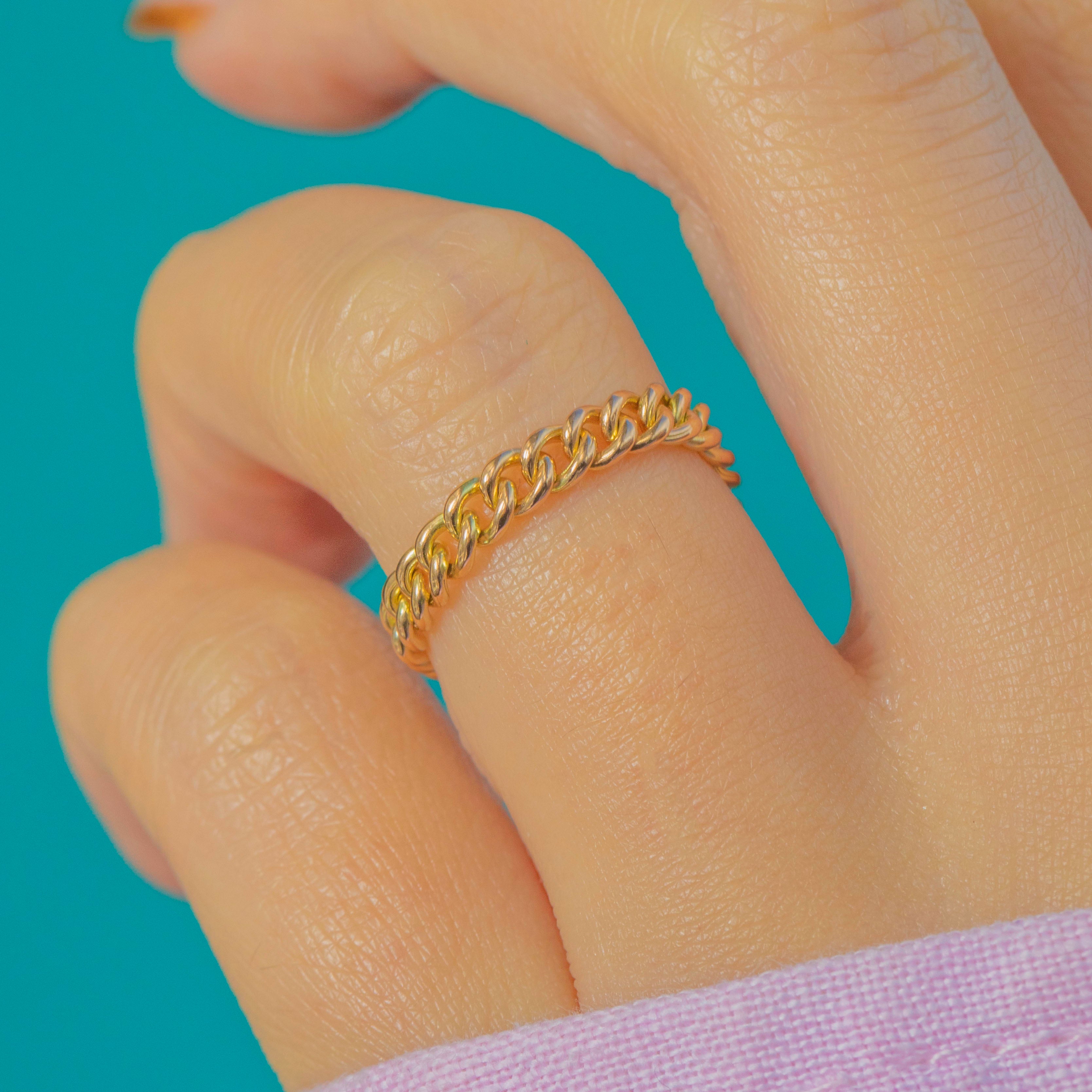 A wonderfully tactile Victorian 15ct Gold curb-chain ring, crafted from rich antique Gold with classic 3mm rounded links.