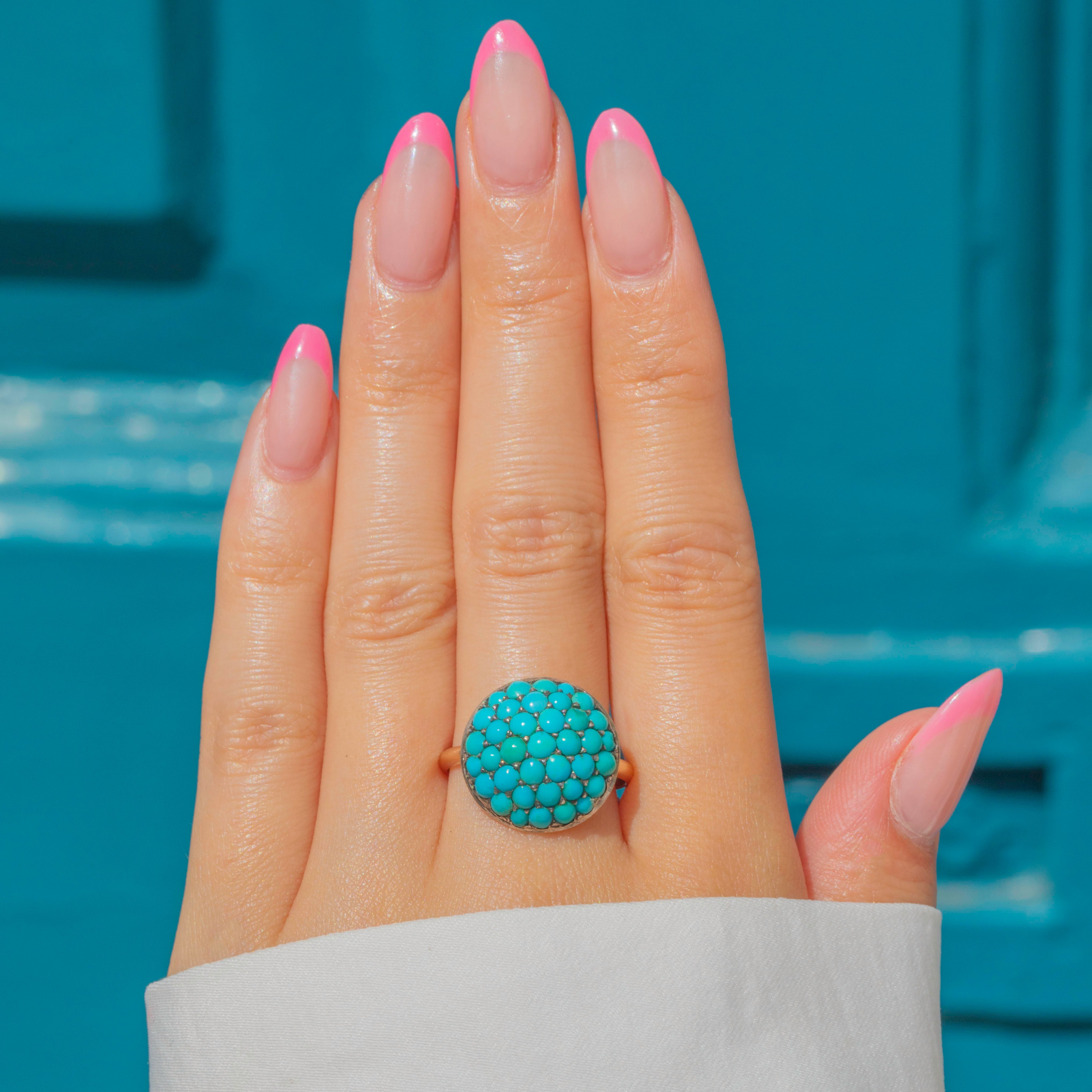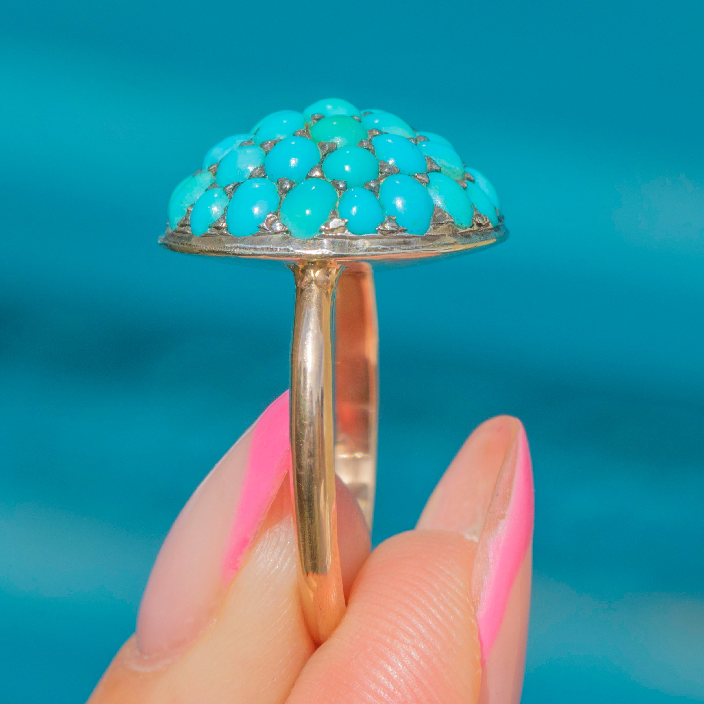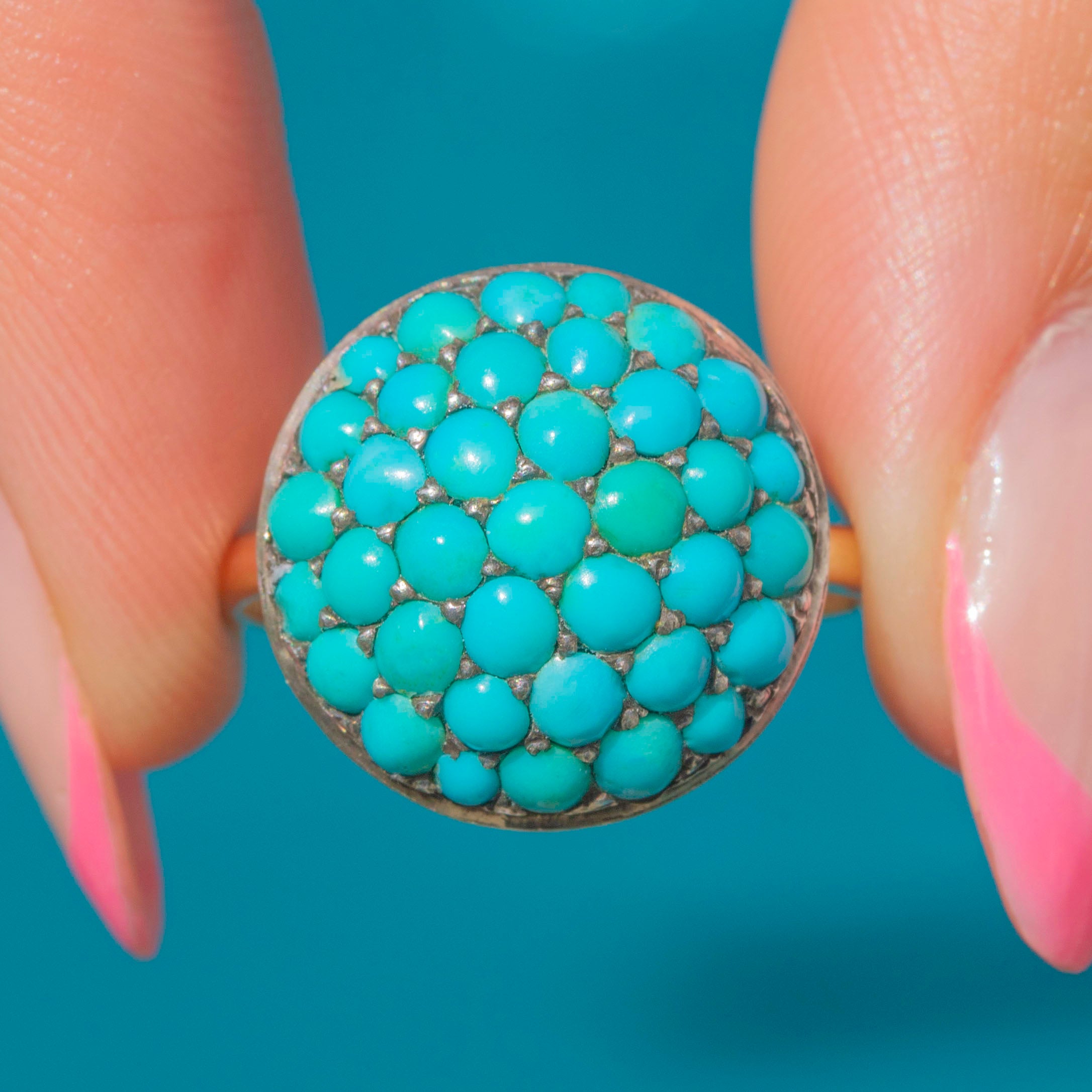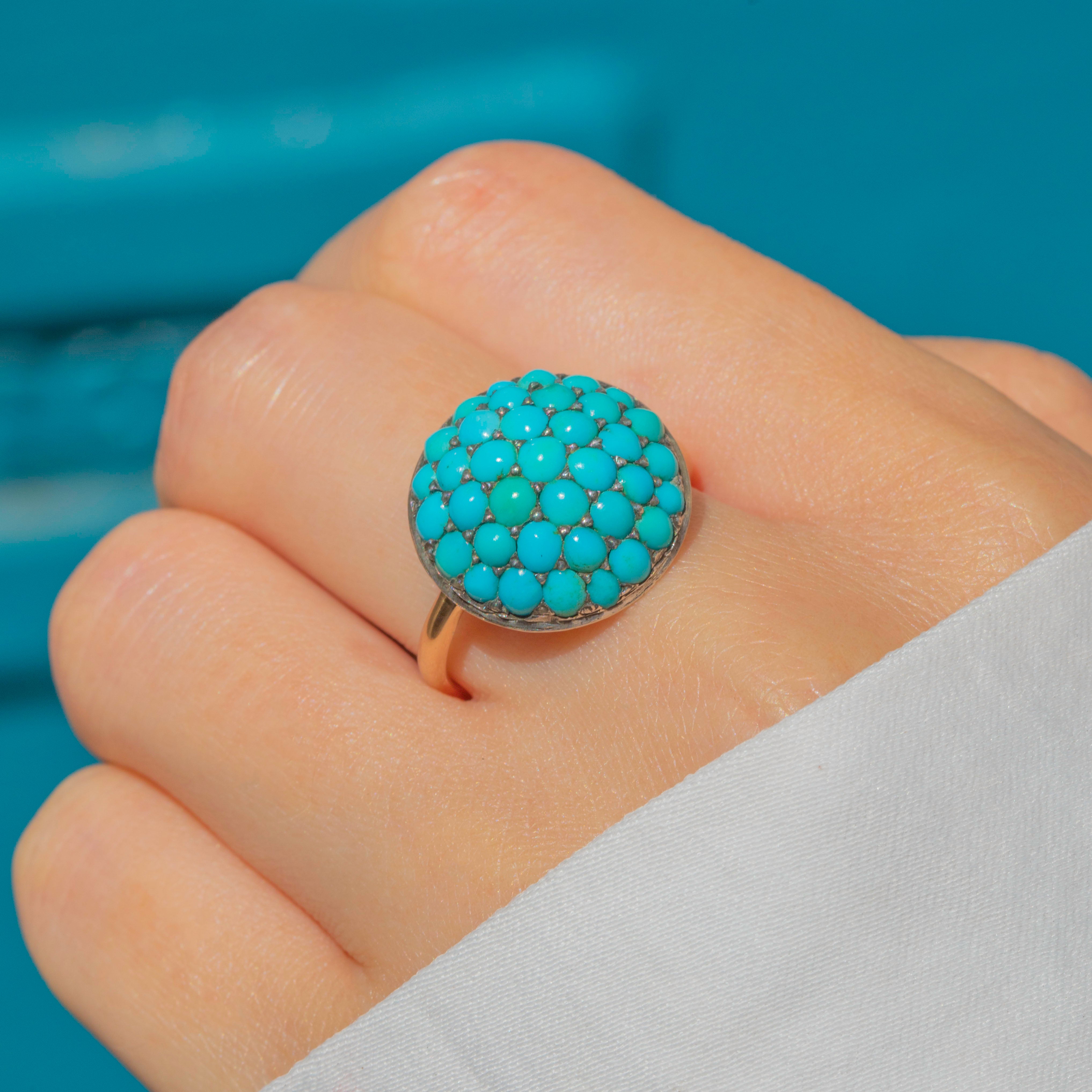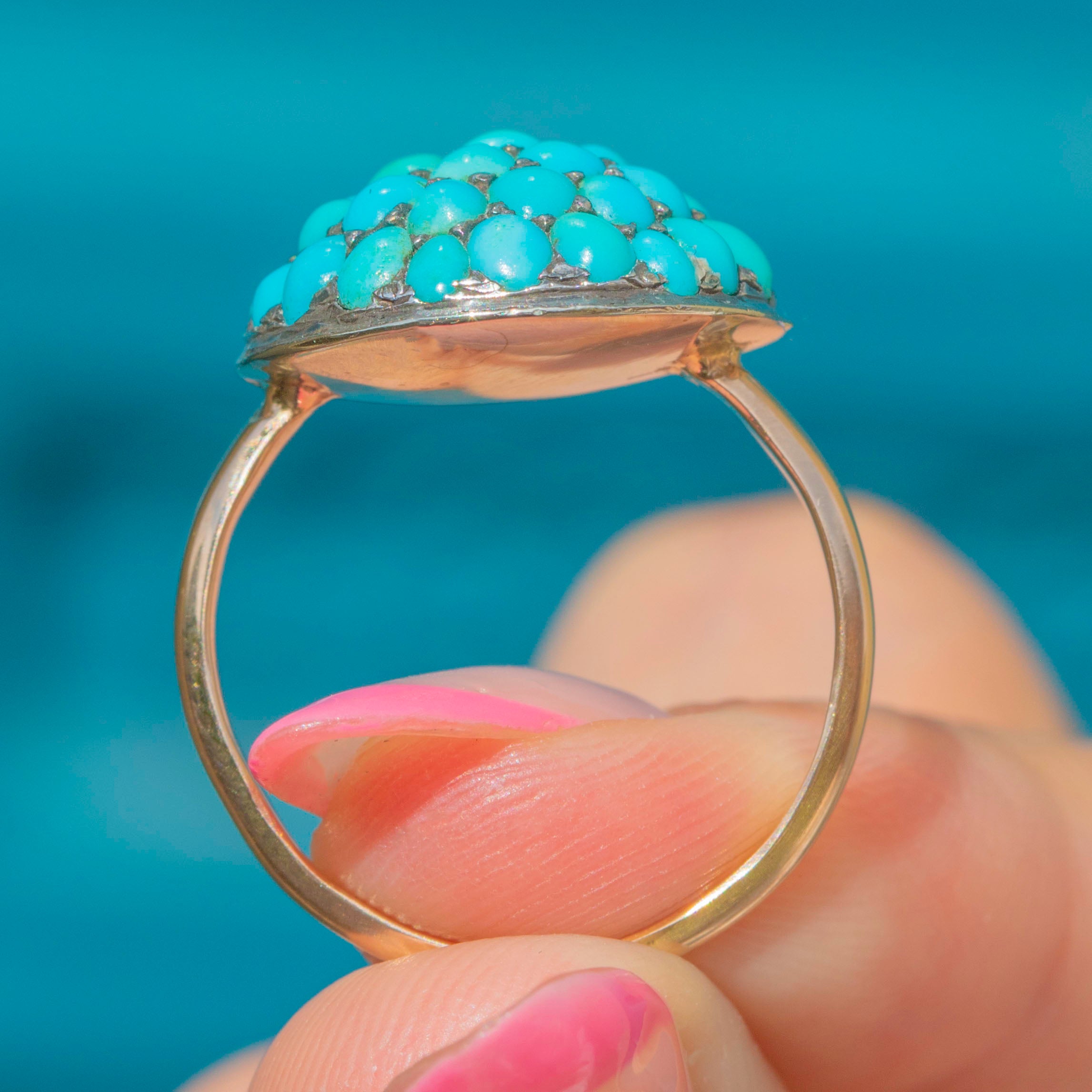 A striking Victorian 15ct Gold Turquoise bombé ring, perfect for adding a splash of colour and a touch of antique charm to any outfit!