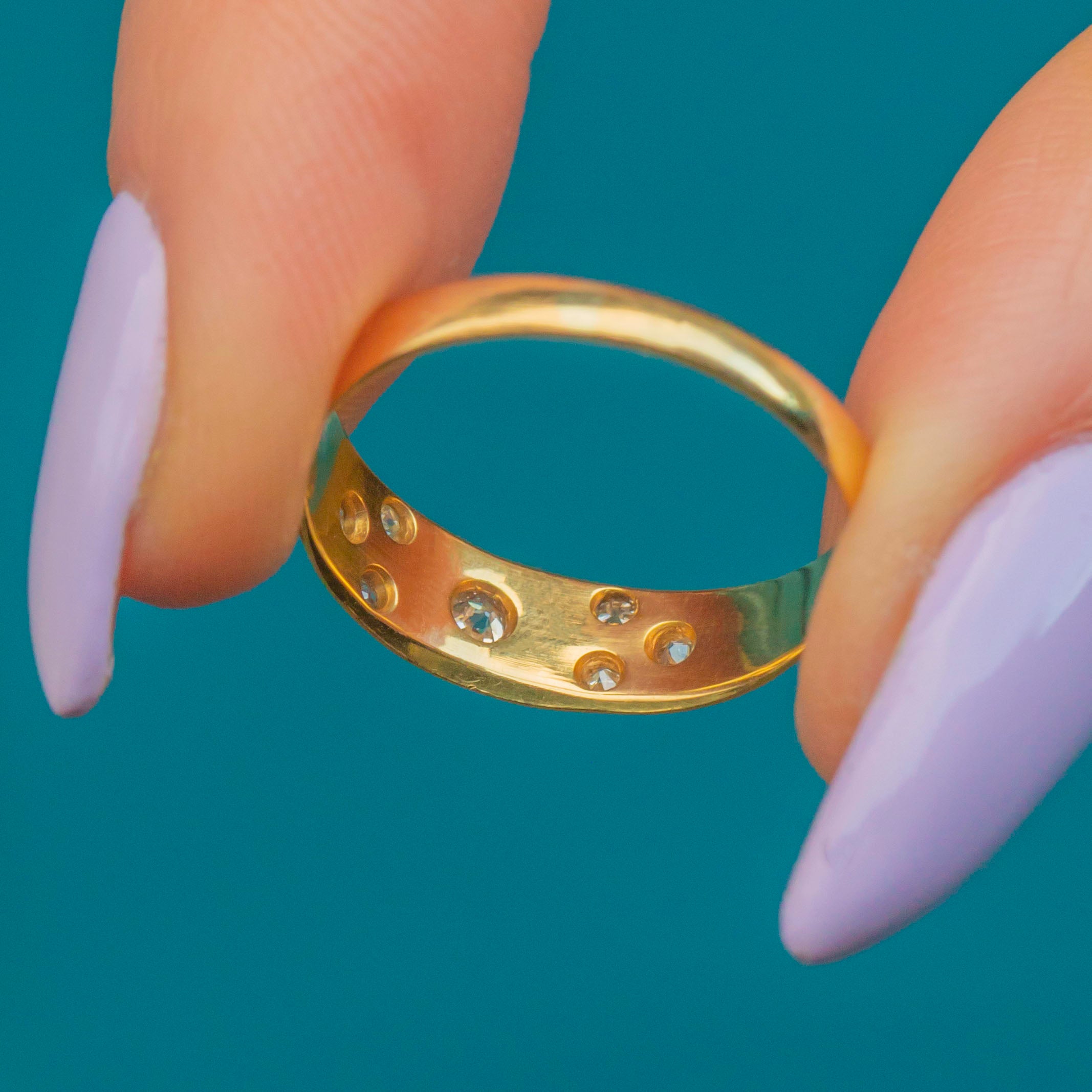 This Victorian 18ct Gold Diamond gypsy ring is simply stunning. Crafted from sumptuous, buttery 18ct Gold, you will feel ever so regal with this ring caressing your finger!